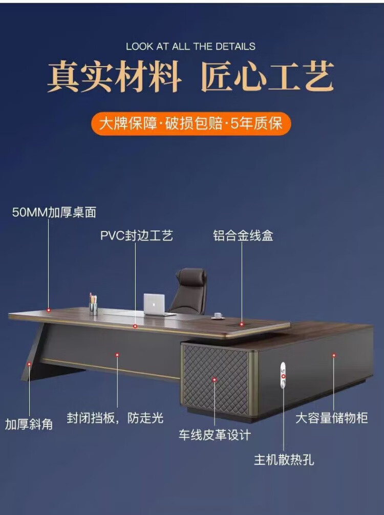 Light luxury boss desk simple modern office desk and chair combination manager president desk executive desk design desk 1.6 meters boss desk