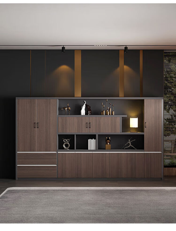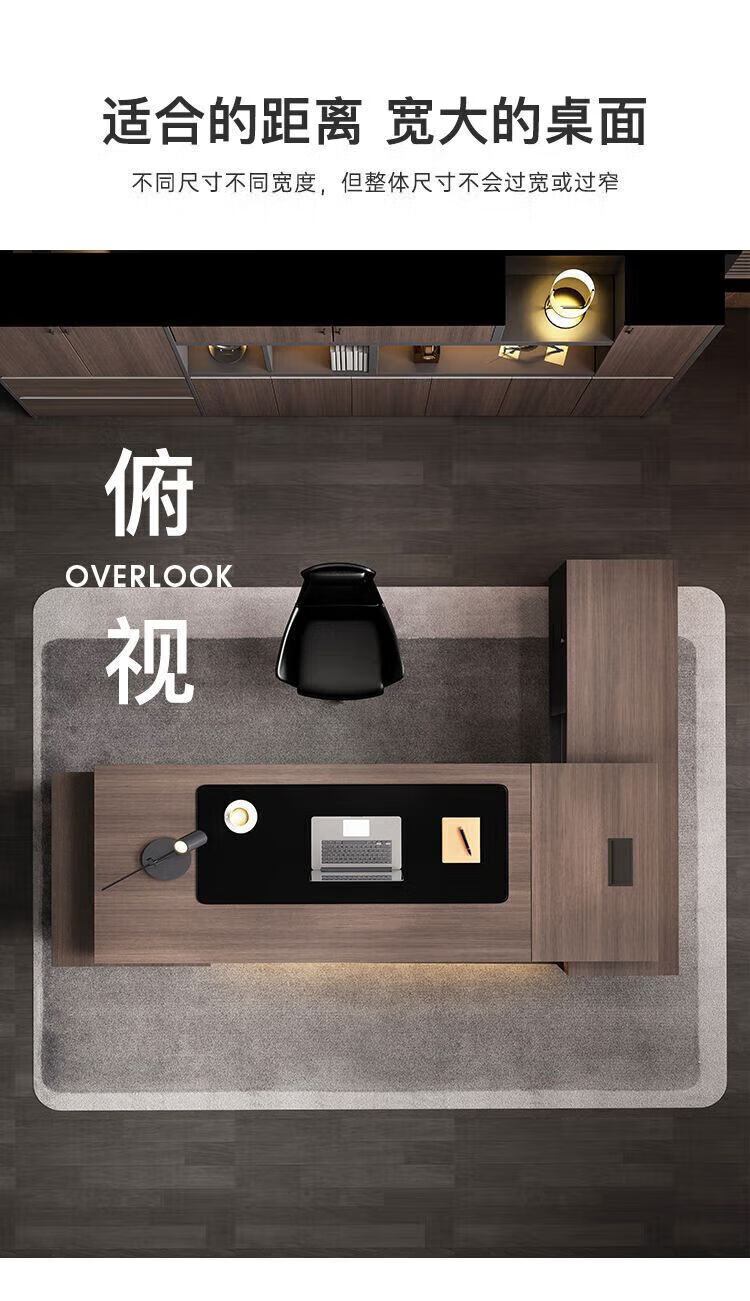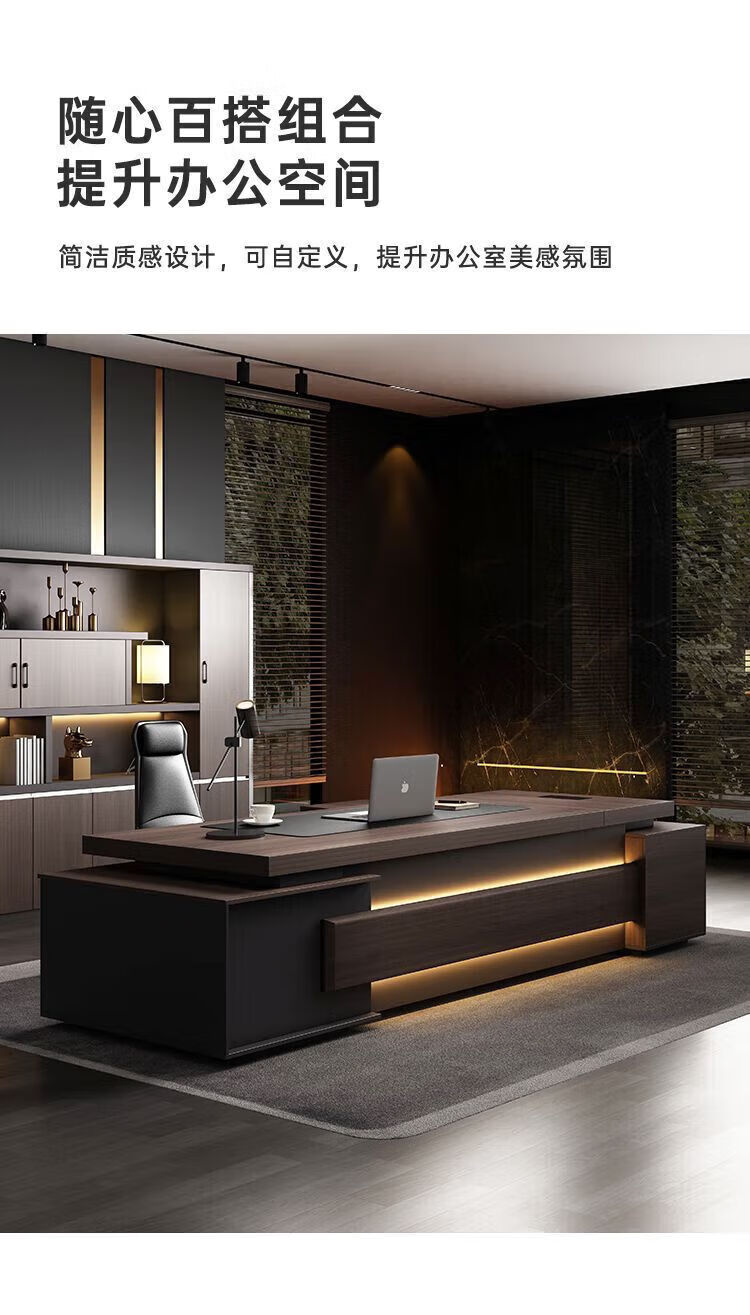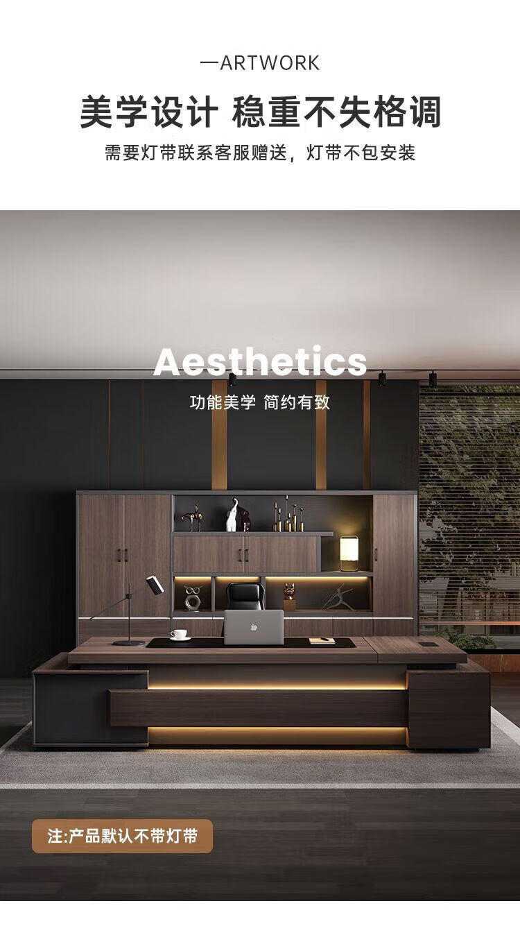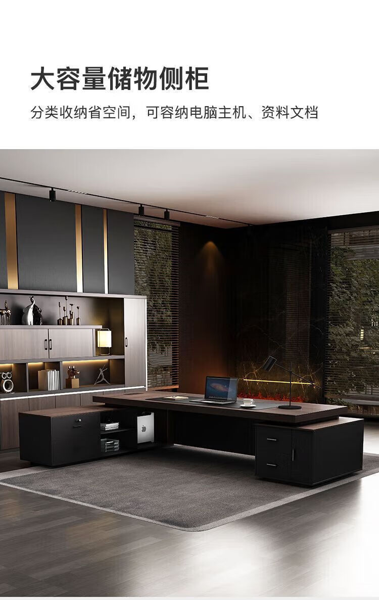 Boss desk office chair combination simple modern president desk executive desk supervisor manager desk office furniture new Chinese style business solemn style single cabinet 1.8 meters boss desk + chair + 6 door bookcase
