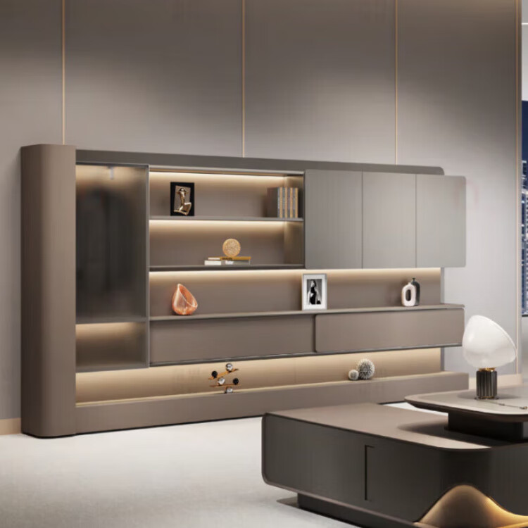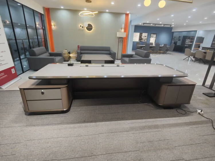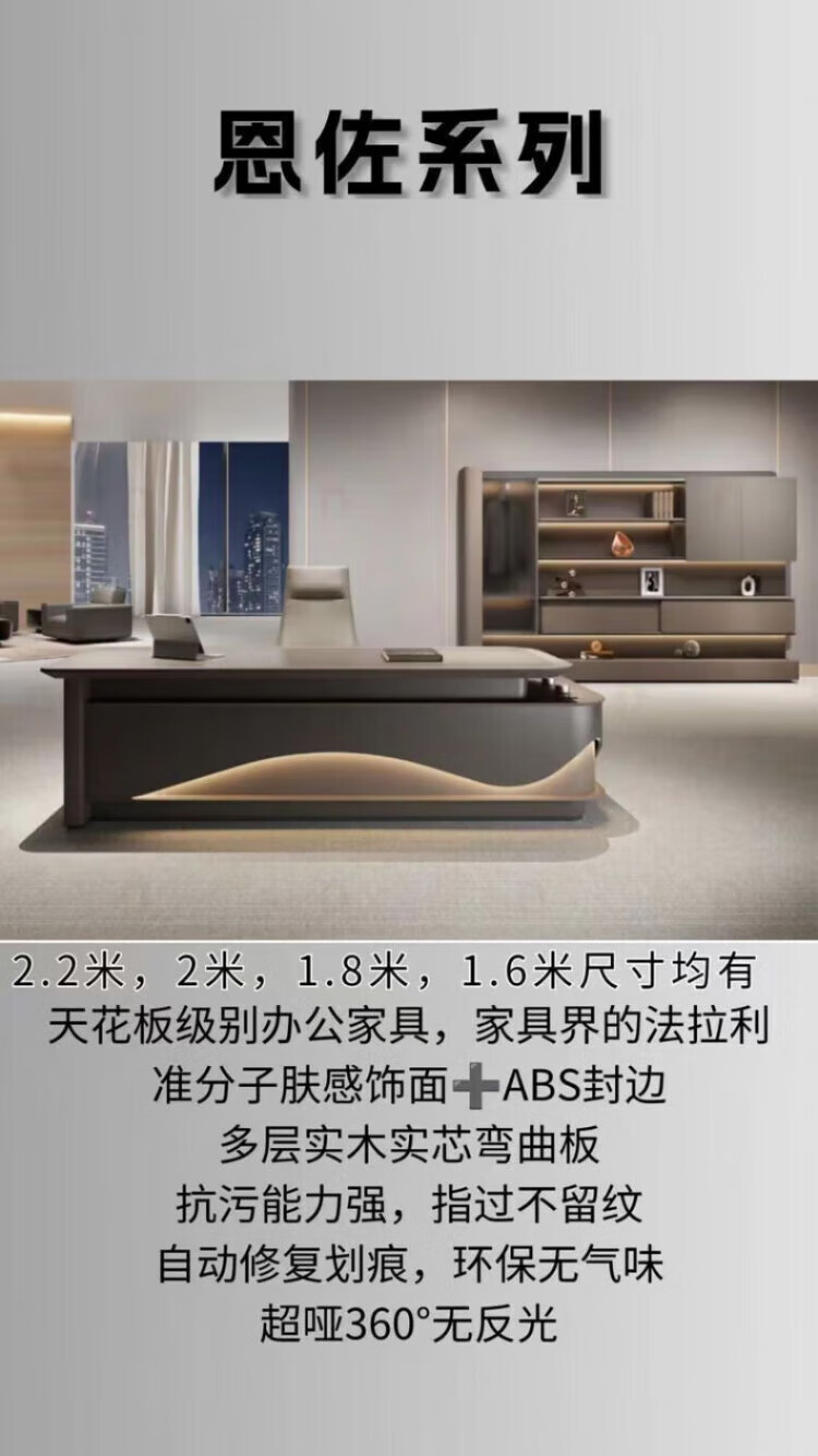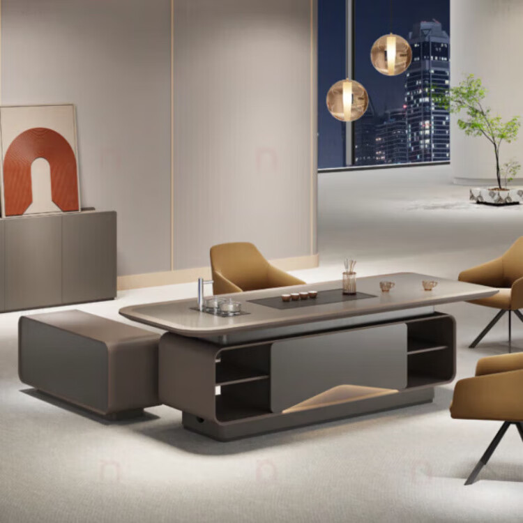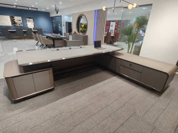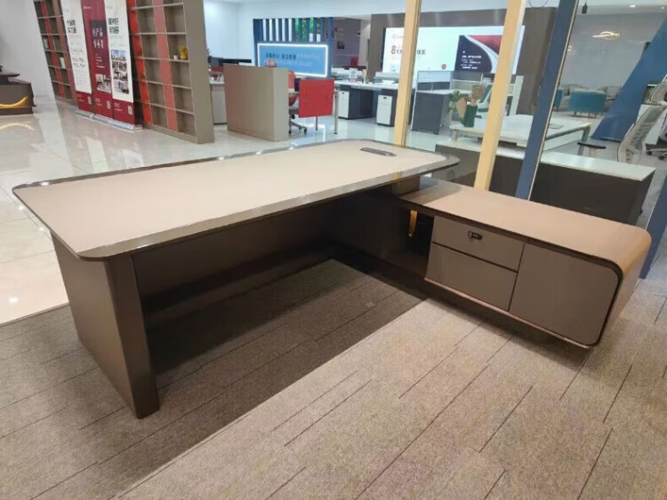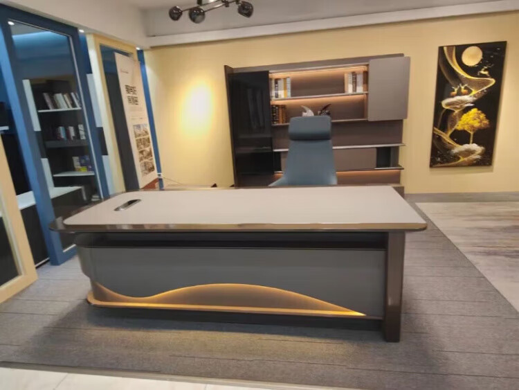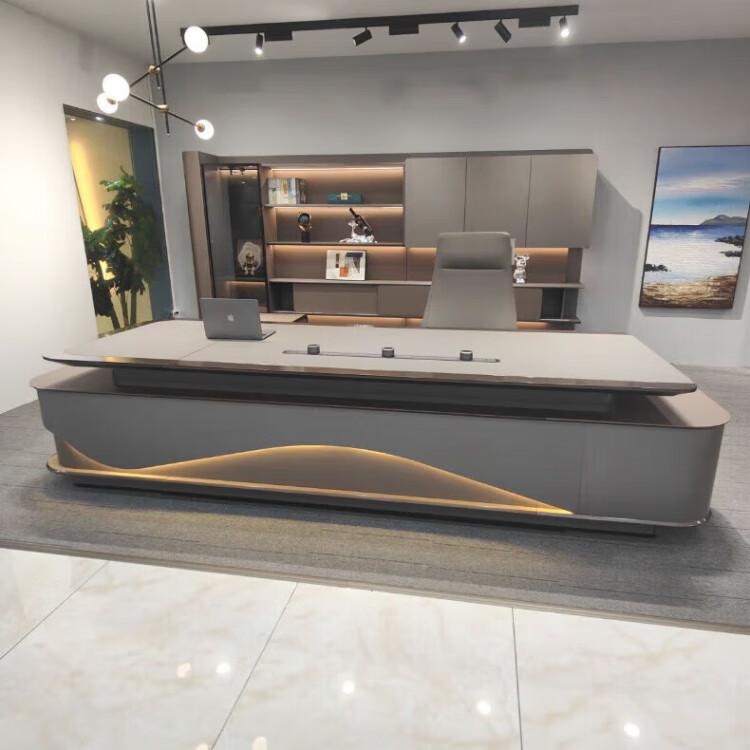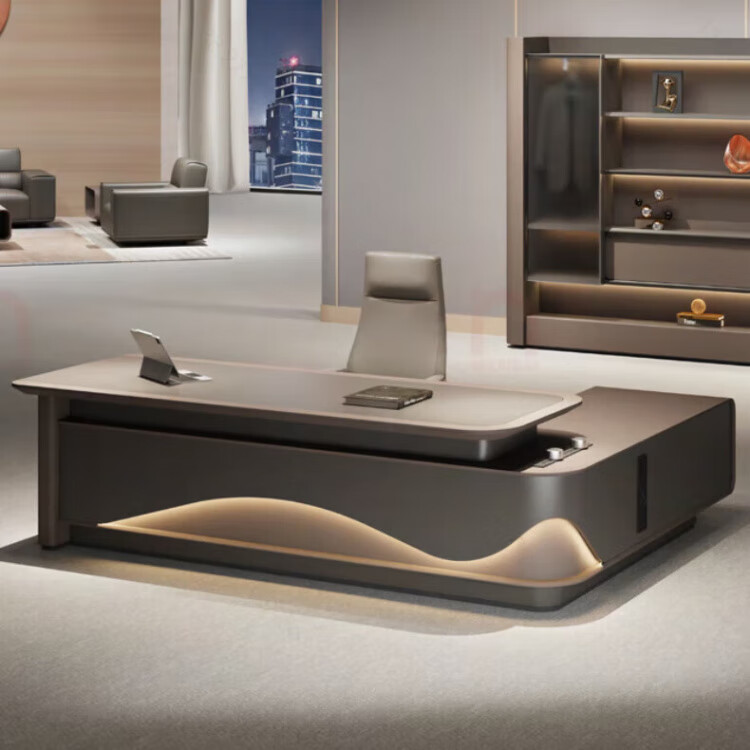 Arc-shaped Italian light luxury boss desk office desk simple modern table president desk and chair chairman executive desk 1.6 meters desk (single cabinet without lights)