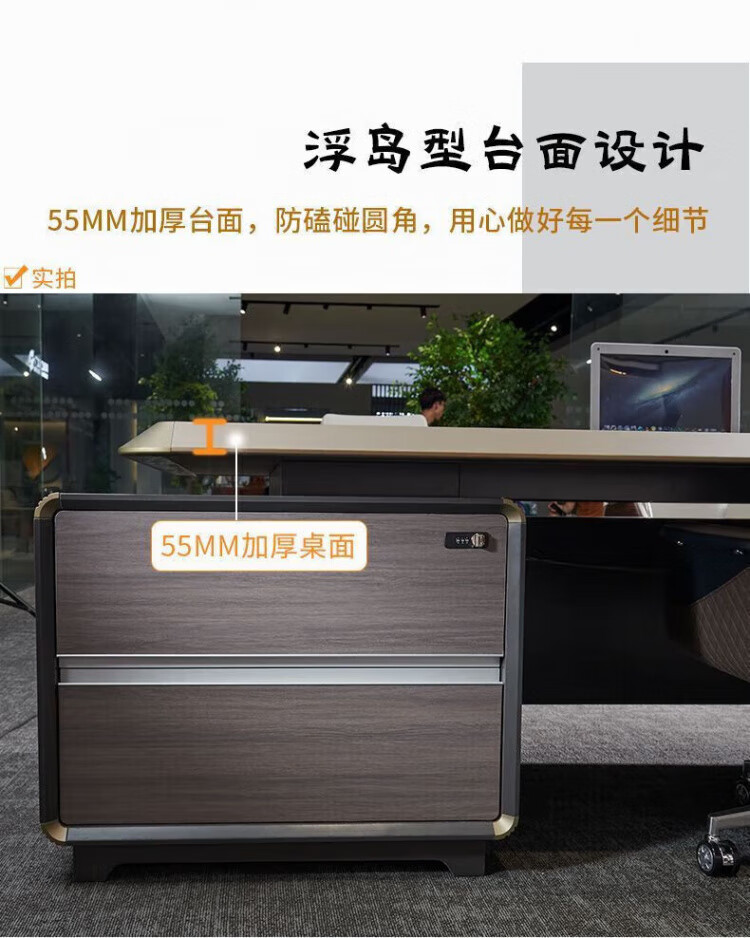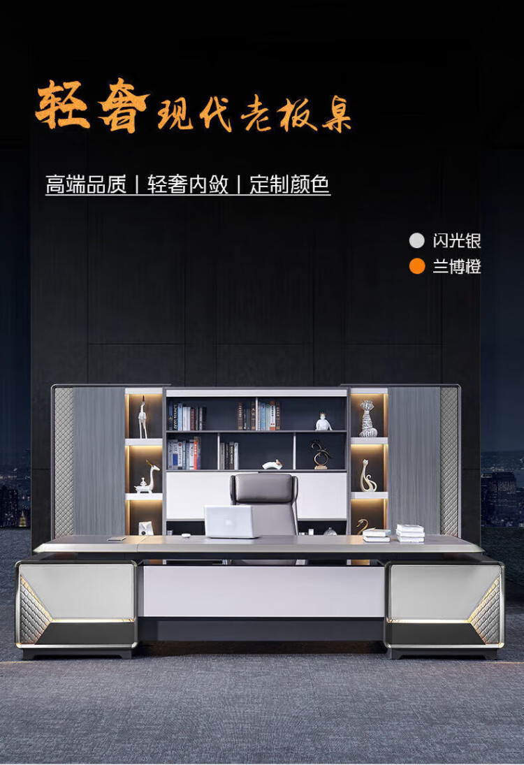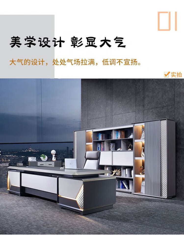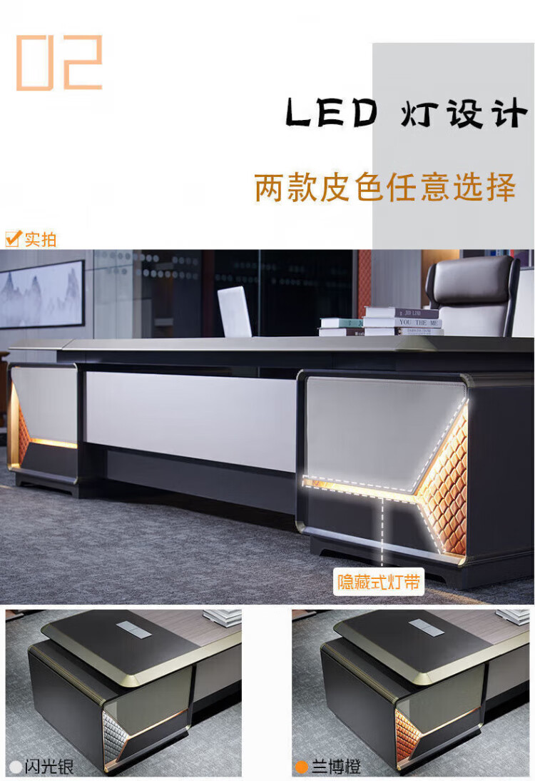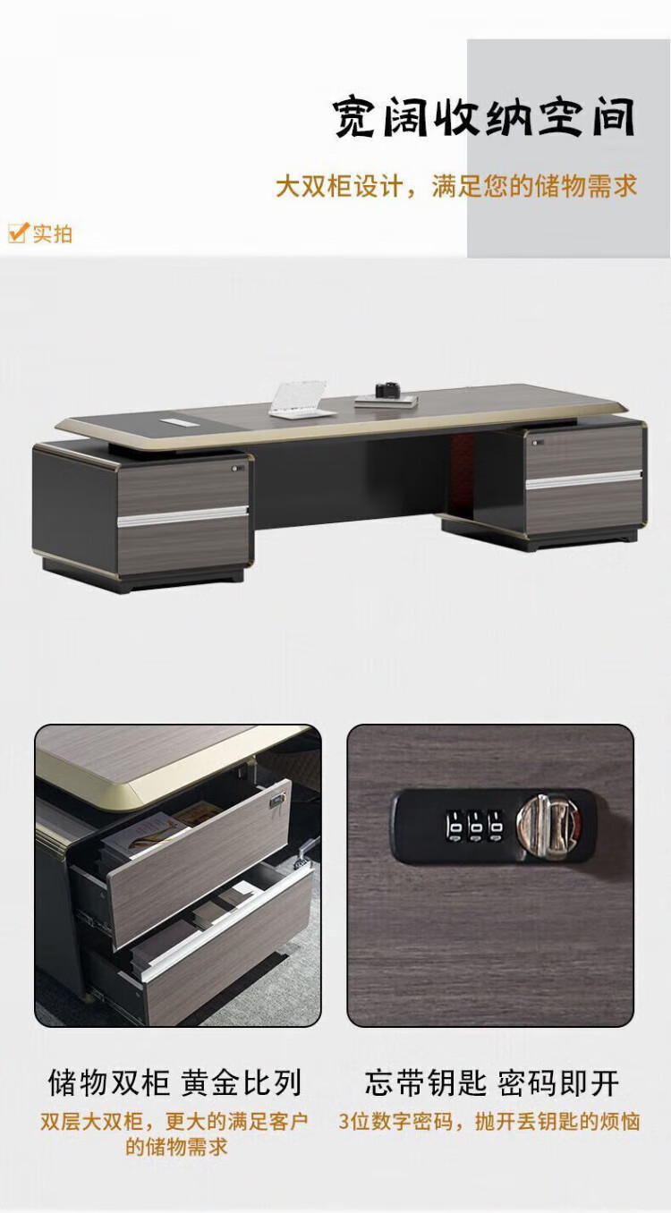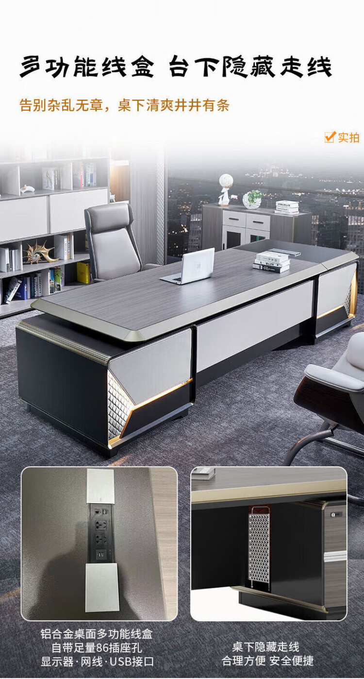 Boss table, president table, simple, modern, light luxury, fashionable office desk and chair combination, office furniture, executive desk, 2.4 meters boss table, short side cabinet