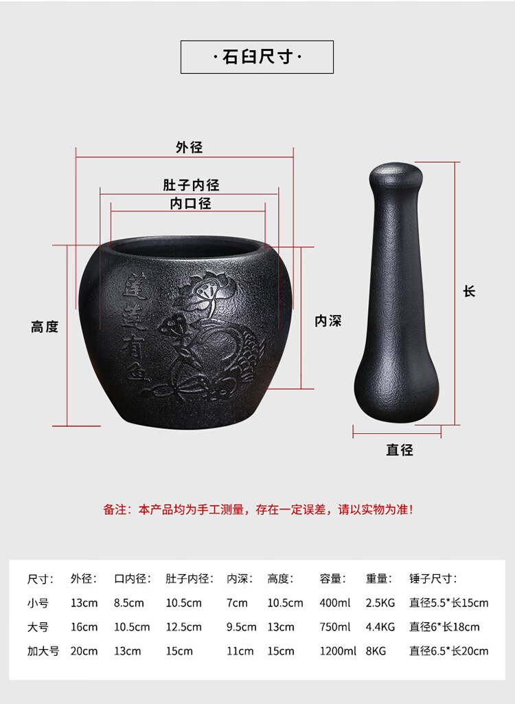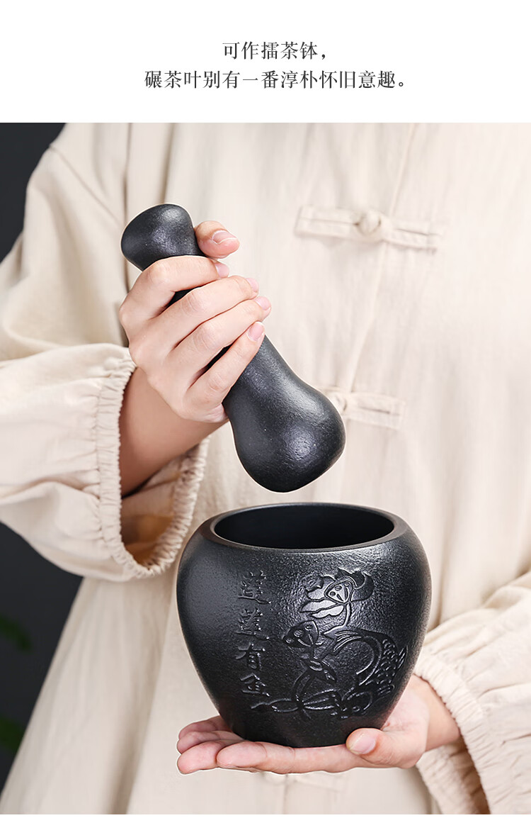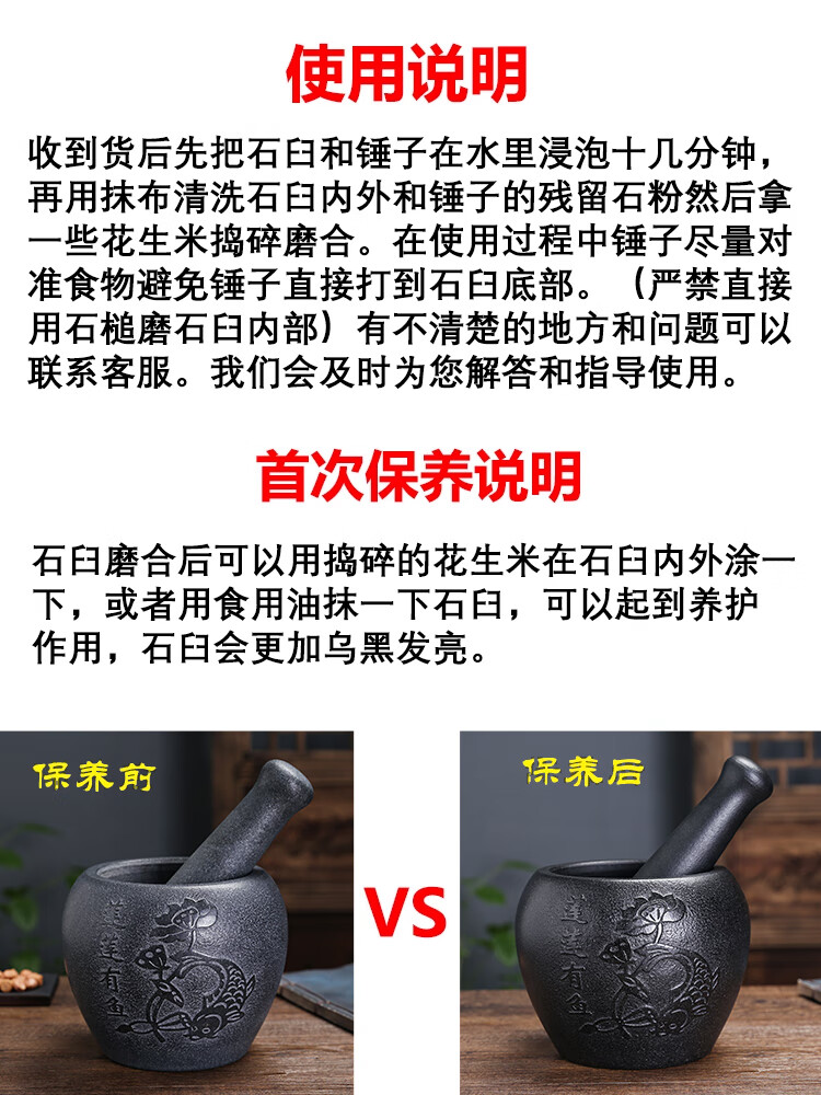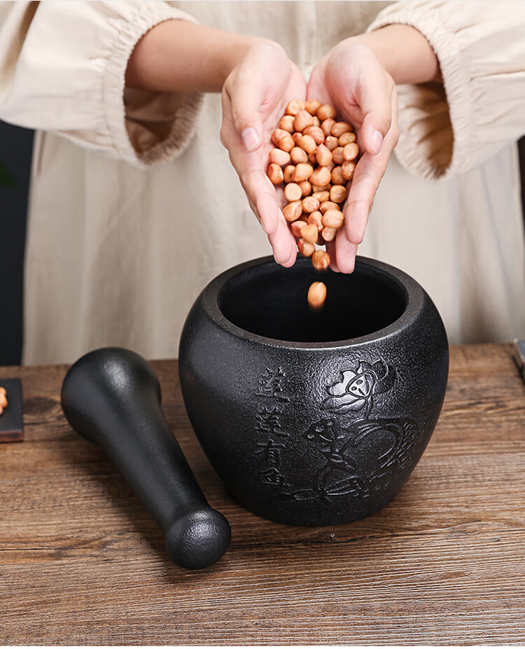 Yiyuanxuan household natural black gold garlic mortar, stone mortar, medicine jar, stone cup, garlic pounder, mashing Wo Leibo pepper, Lianlian fish outer diameter 13CM