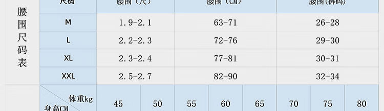 USA(inch) 28-30 30-32 32-34 34-38 38-42