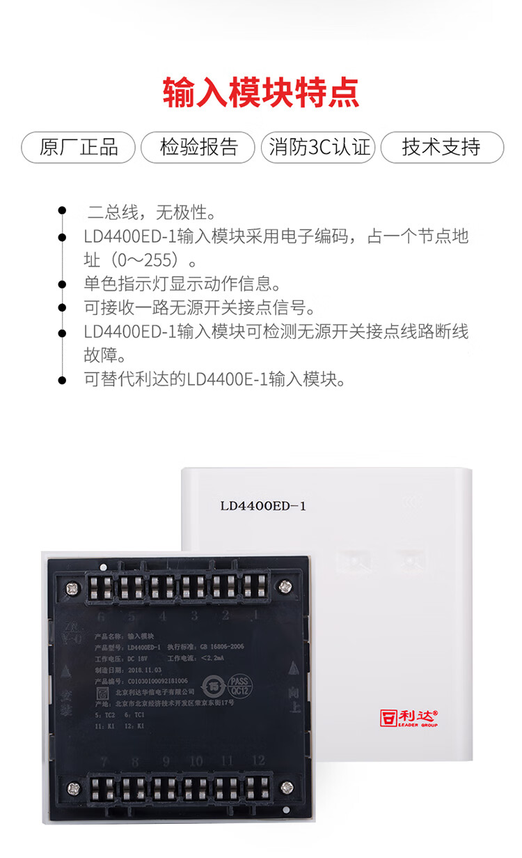 Beijing Lida Huaxin input LD4400ED/E-1 fire alarm monitoring module Lida input module input LD4400E-1 with base