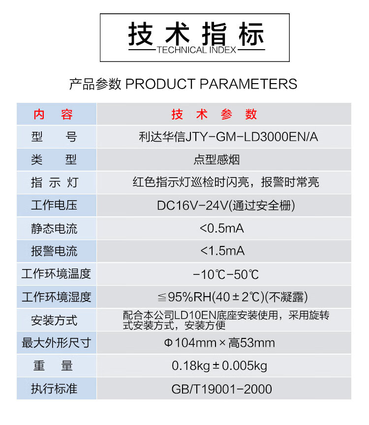 Beijing Lida Smoke Detector Point Type Photoelectric Smoke Fire Detector Lida Smoke Detector Module Smoke Detector LD3000EN/C with Base
