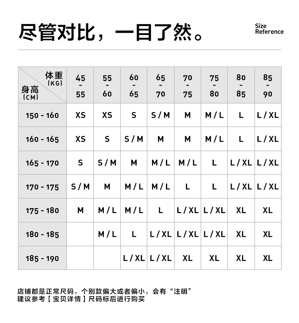 China (cm) 165 / 88-90 170 / 96-98 175 / 108-110 180 / 118-122 185 / 126-130