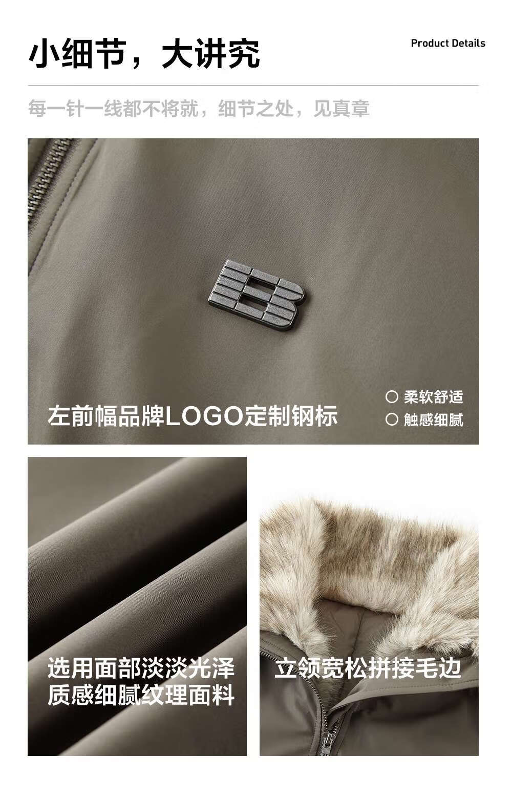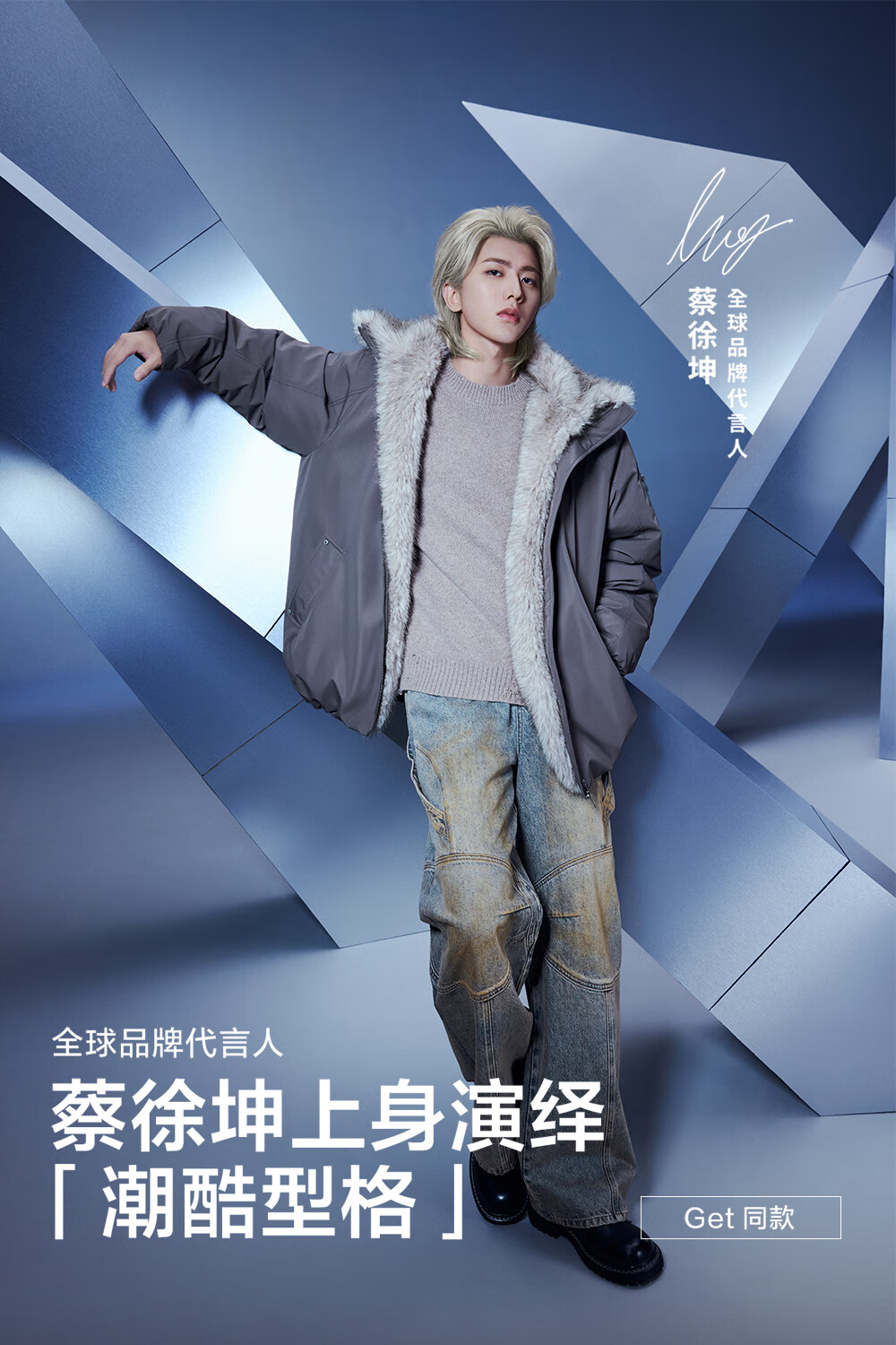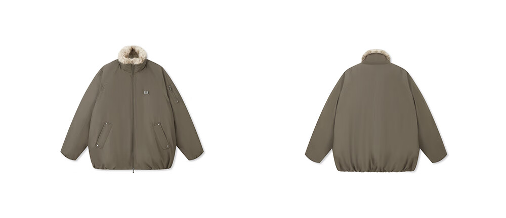 BONELESS Cai Xukun's same style spliced raw edge stand-up collar parka cotton coat loose winter warm cotton coat brown L