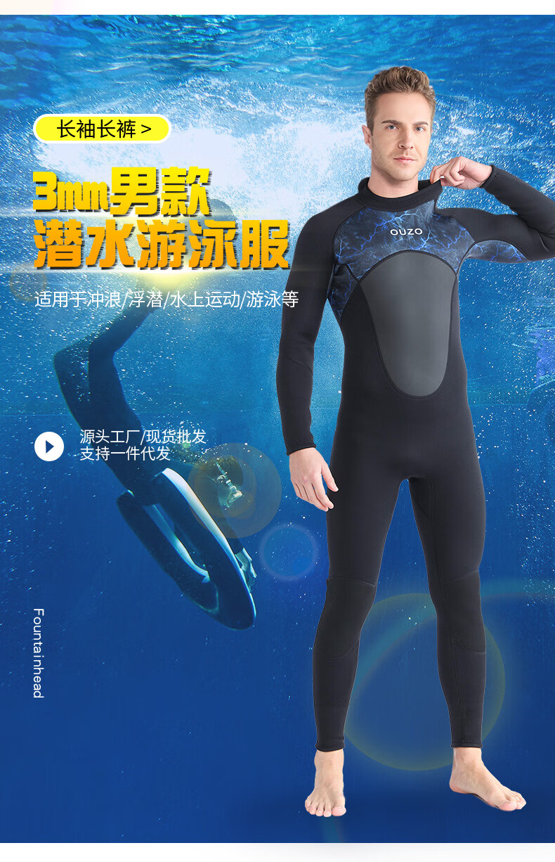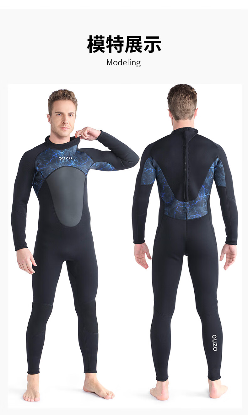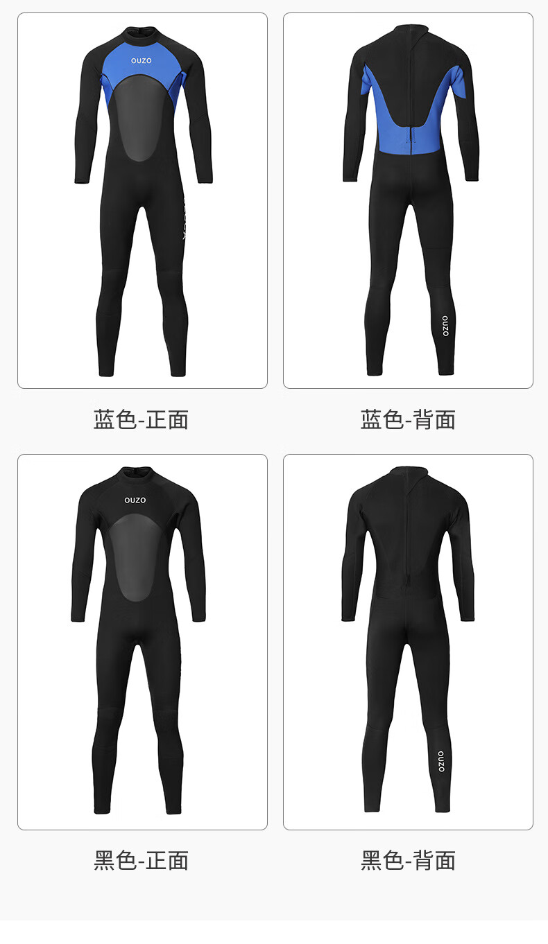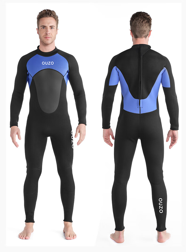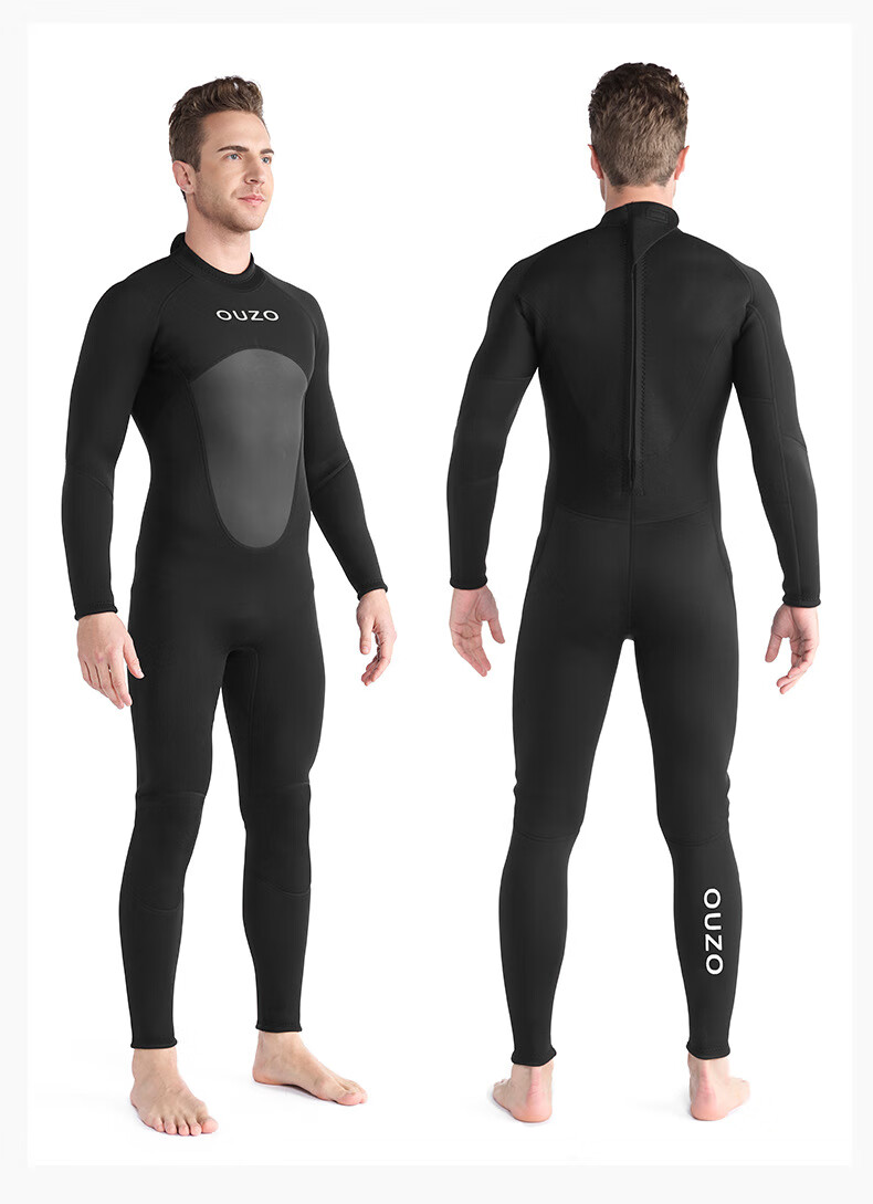 OUZO 3mm wetsuit thickened warm winter swimsuit snorkeling suit surfing suit men's long-sleeved long pants one-piece black BCM3002-B S