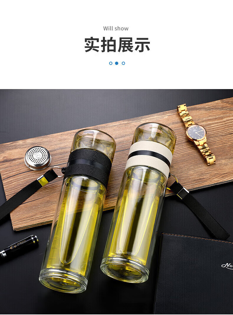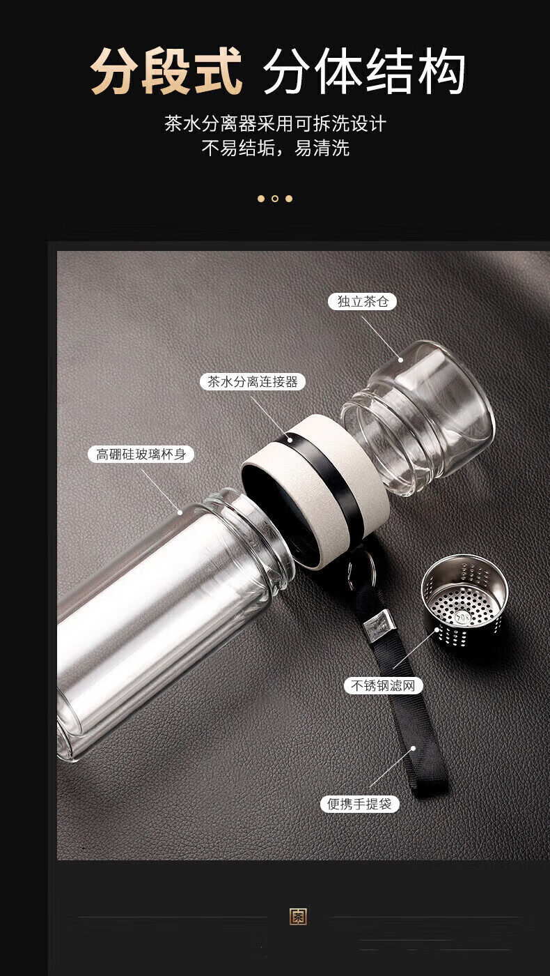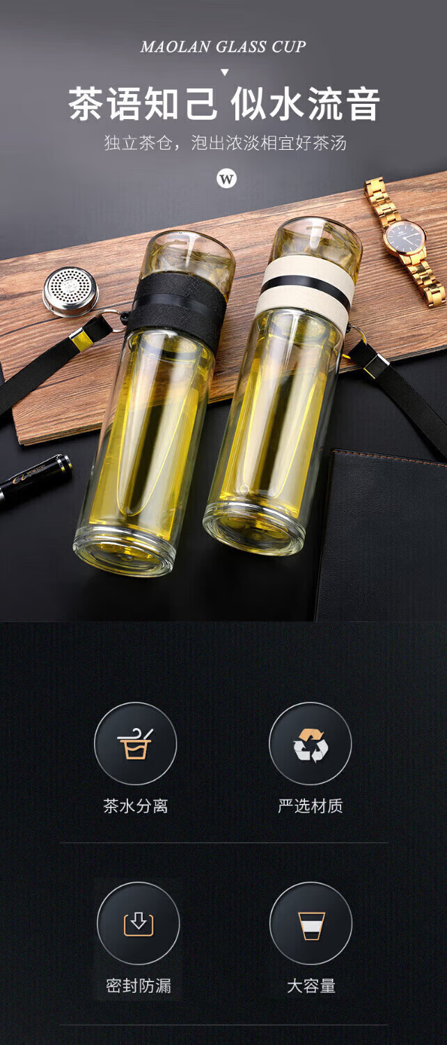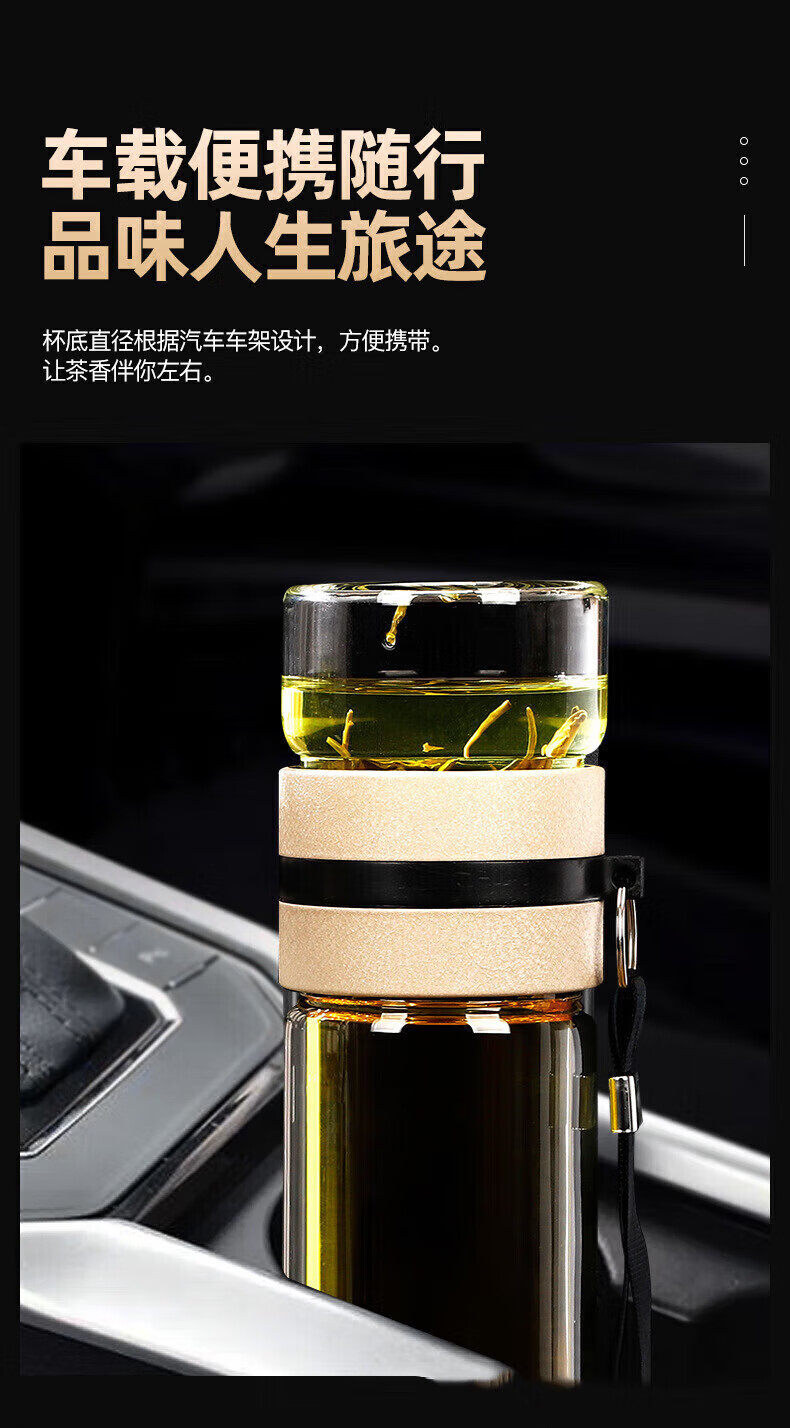 Jidaocook Tea and Water Separating Glass Thickened Large Capacity Men's Portable Water Cup Car Office Tea Cup High Temperature Anti-scalding Tea and Water Separating Glass 450ml Increased Tea Storage