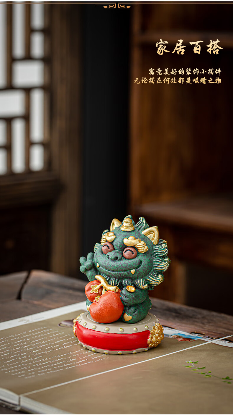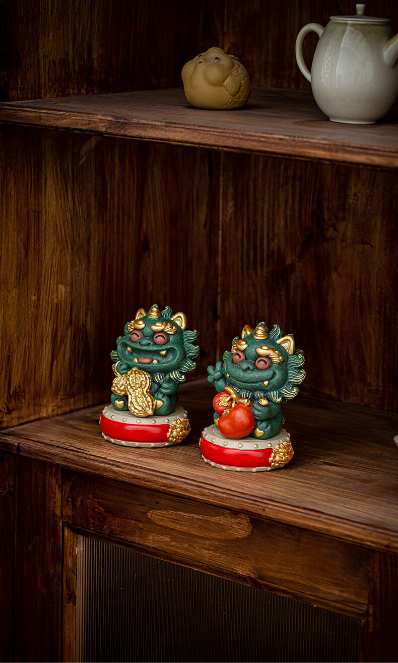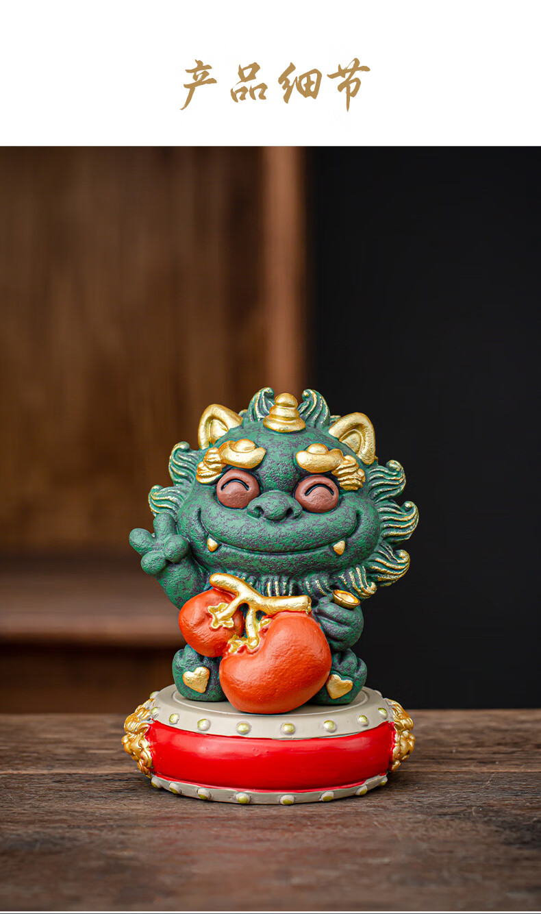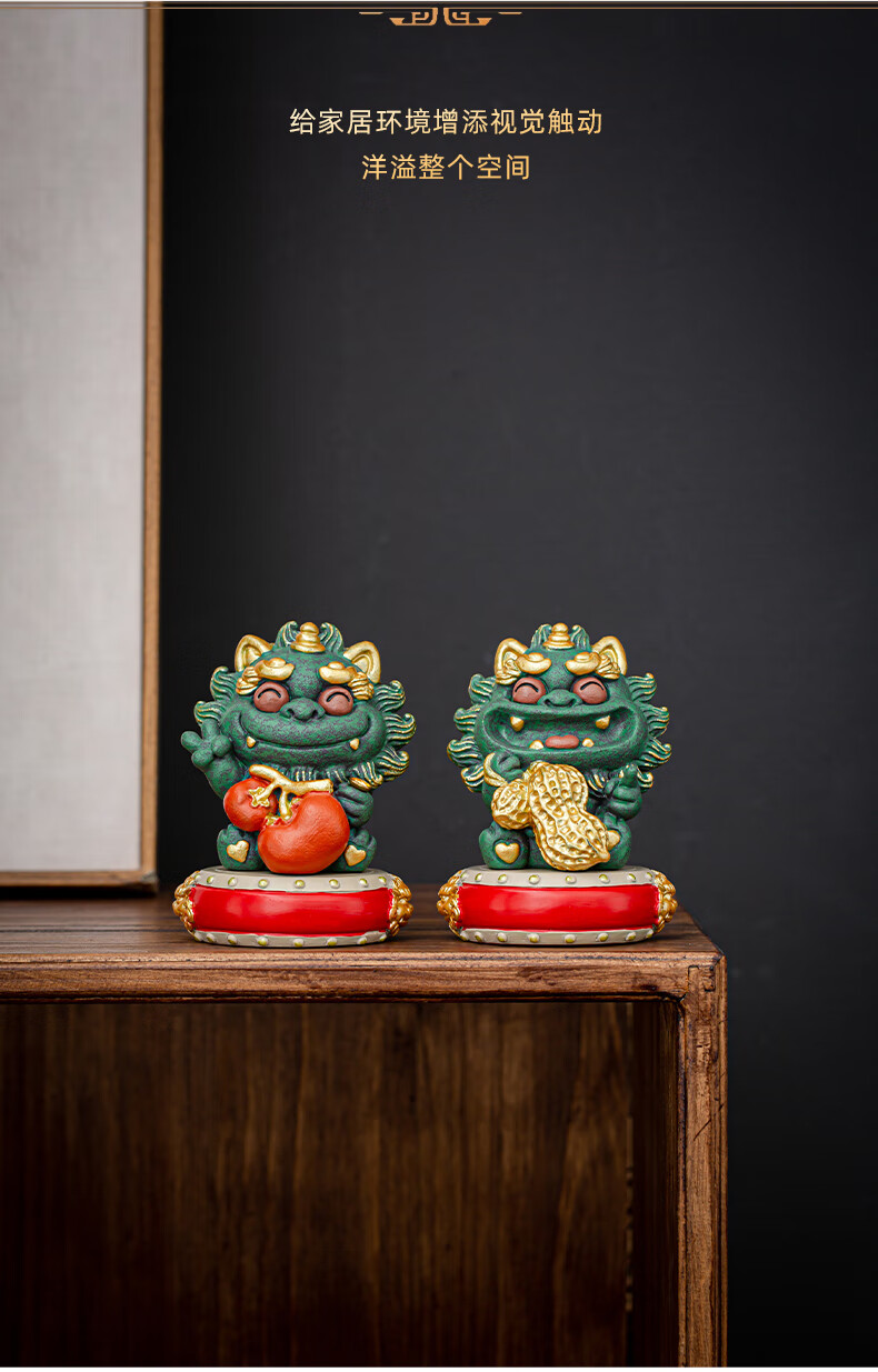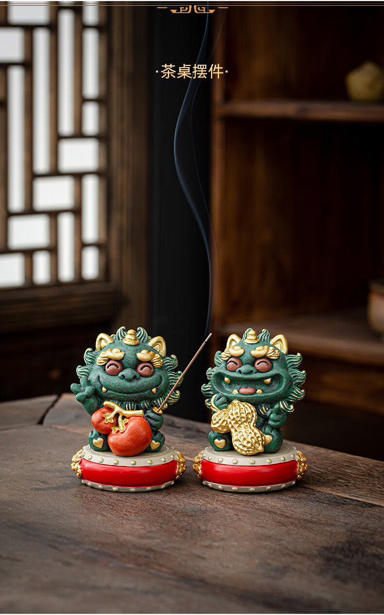 BOSSY Forbidden City Style Cultural Creation Lucky Stone Lion Good Things Happen Ornament Tea Pet Housewarming Wedding Birthday Company New Year Gift Brand New Upgraded Good Things Happen Pair + Base High-end Gift Box