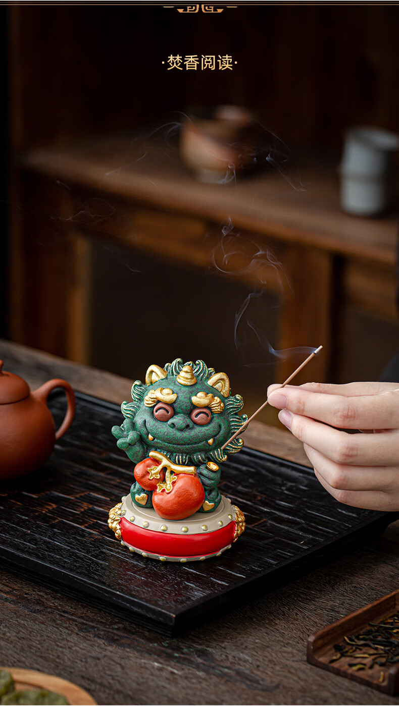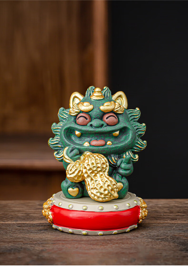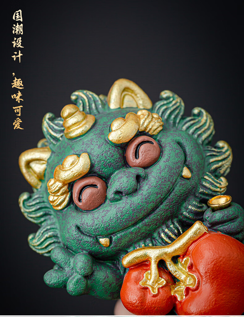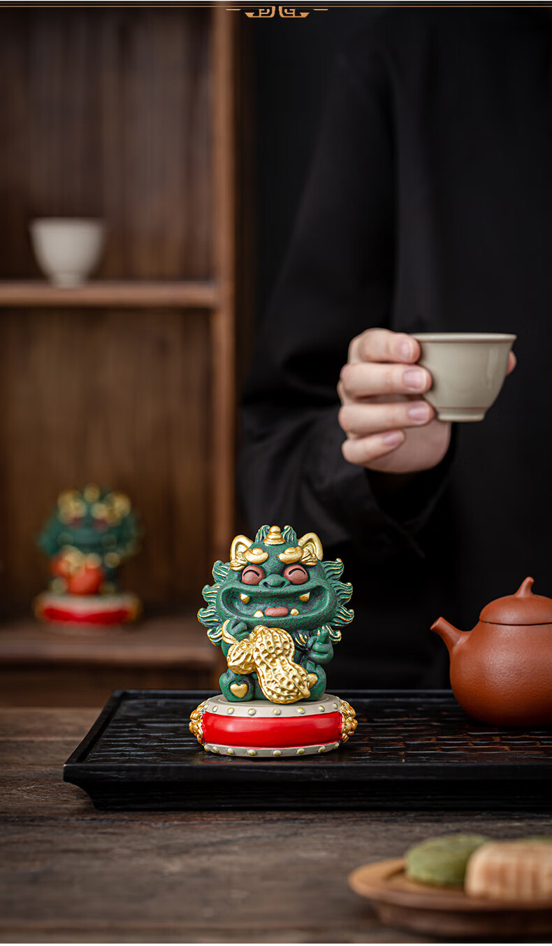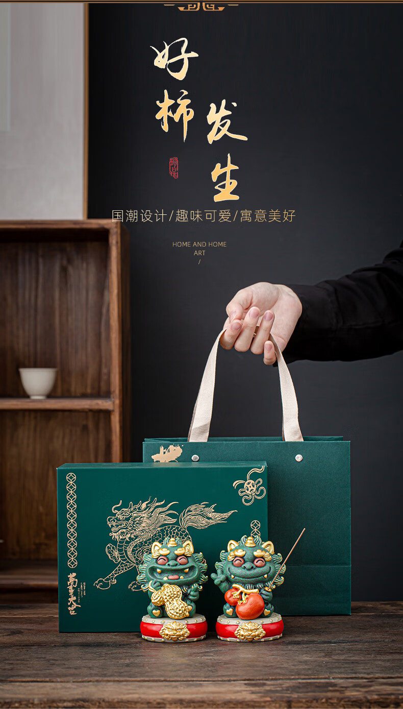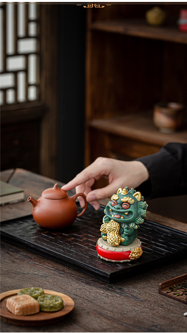 BOSSY Forbidden City Style Cultural Creation Lucky Stone Lion Good Things Happen Ornament Tea Pet Housewarming Wedding Birthday Company New Year Gift Brand New Upgraded Good Things Happen Pair + Base High-end Gift Box