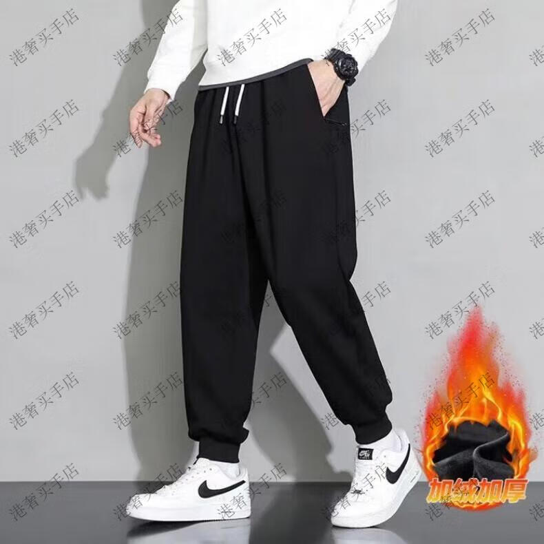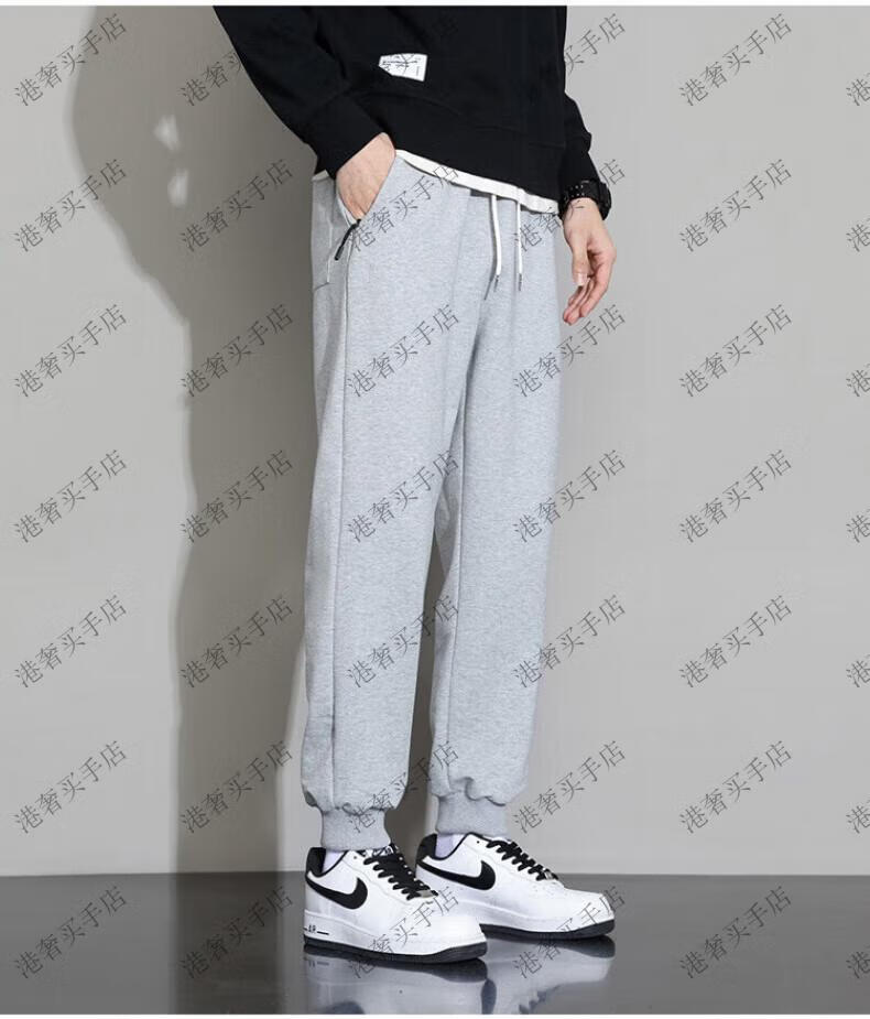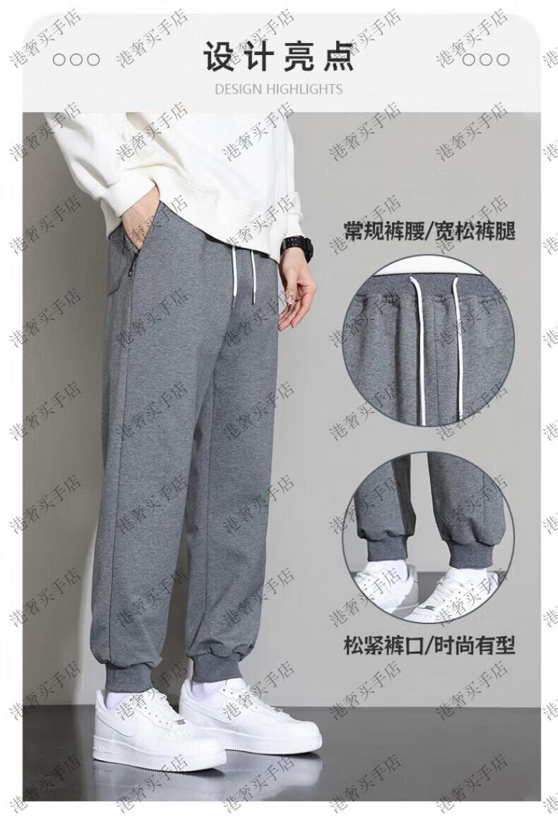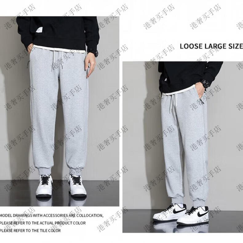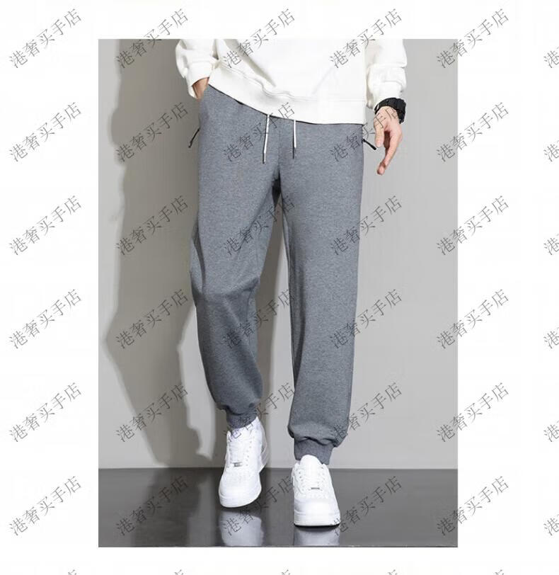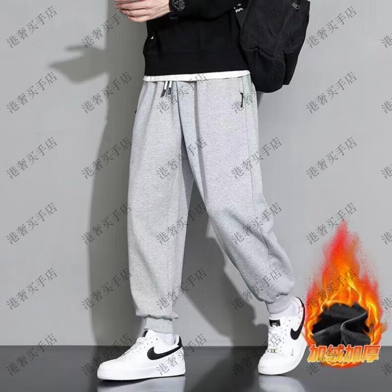 SUSTYLE pants men's spring and autumn trendy gray leggings sweatpants men's loose sports trousers winter pure cotton men's casual pants dark gray plus velvet L