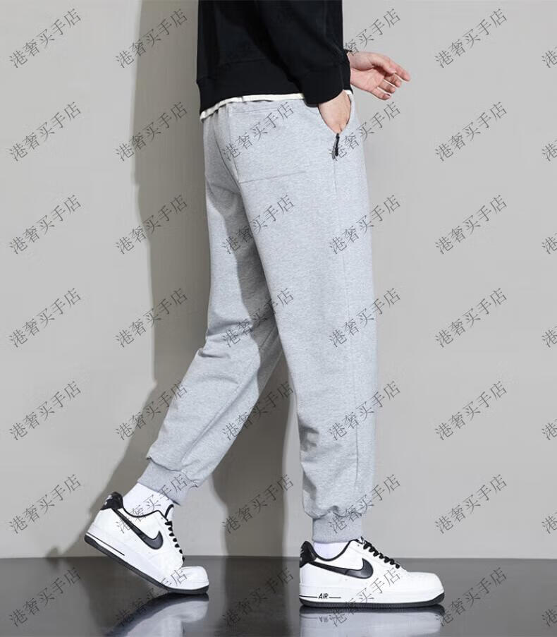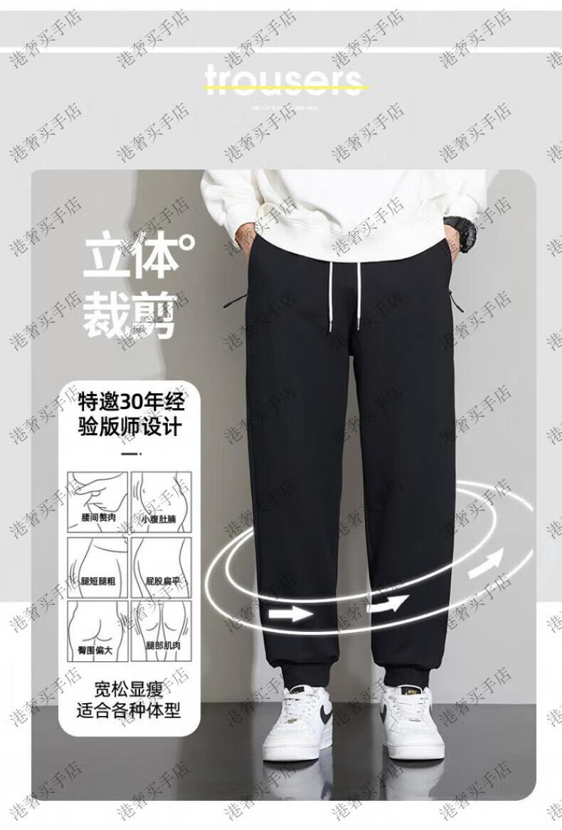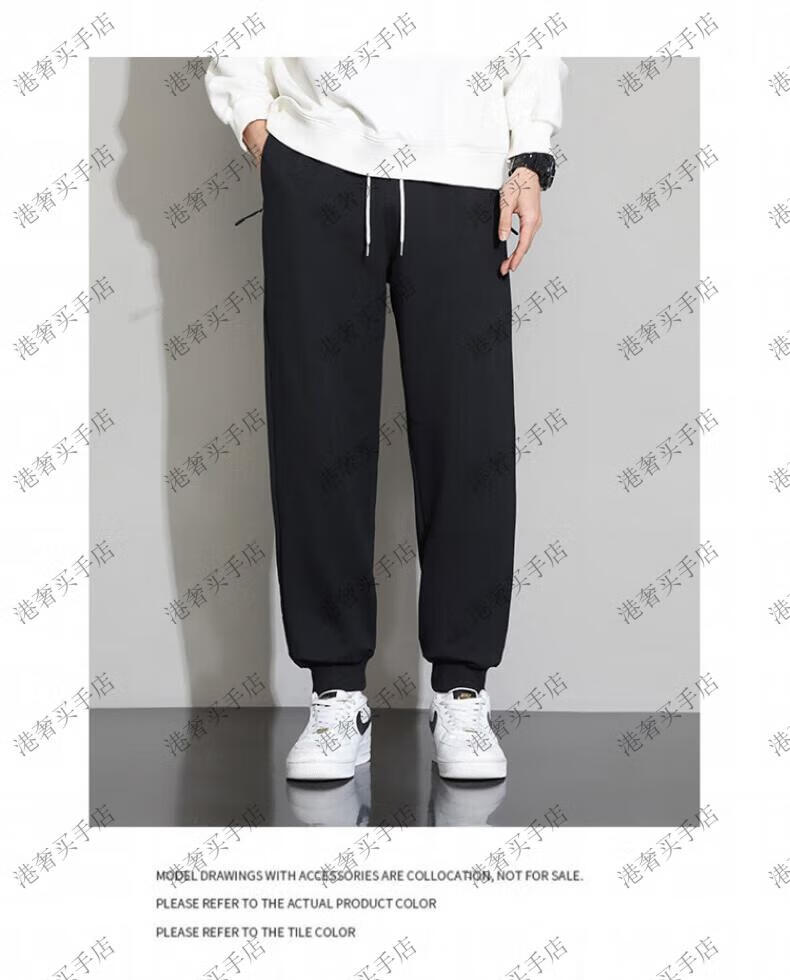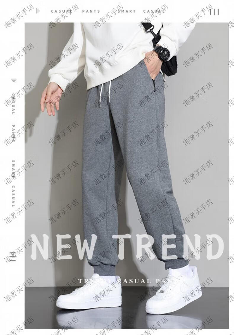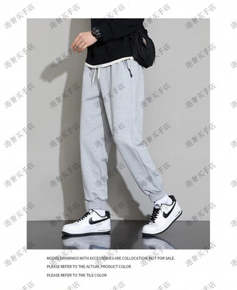 SUSTYLE pants men's spring and autumn trendy gray leggings sweatpants men's loose sports trousers winter pure cotton men's casual pants dark gray plus velvet L