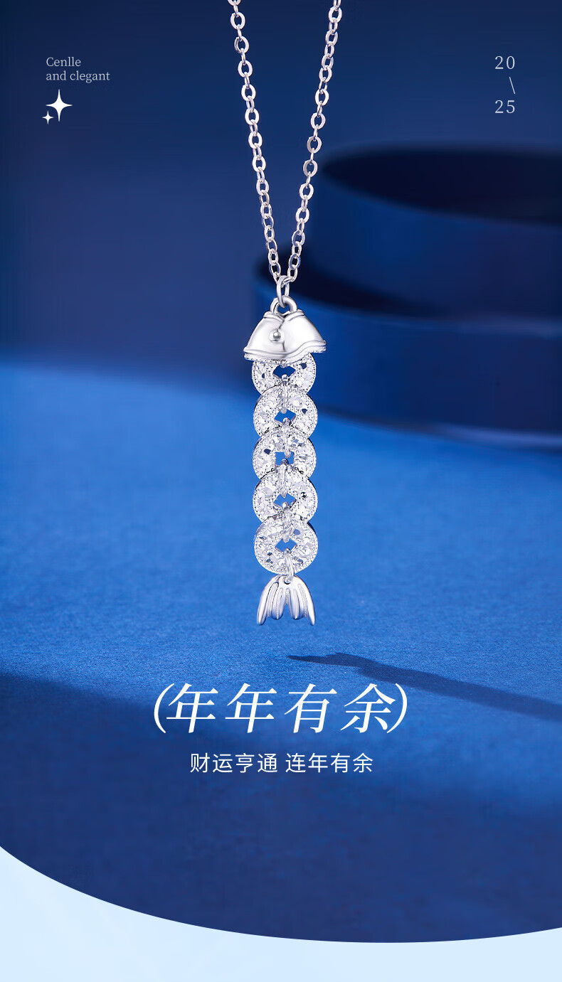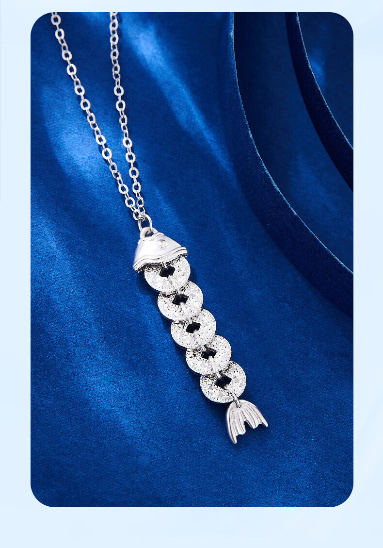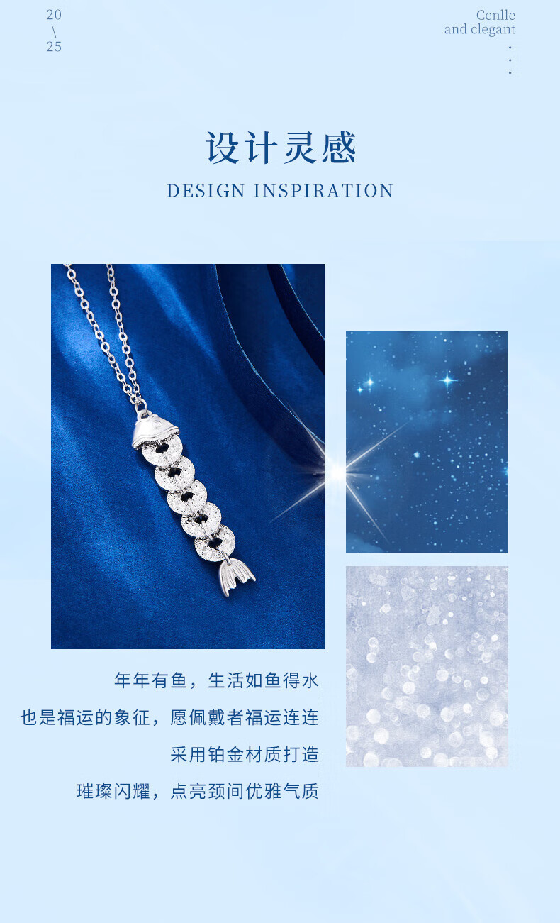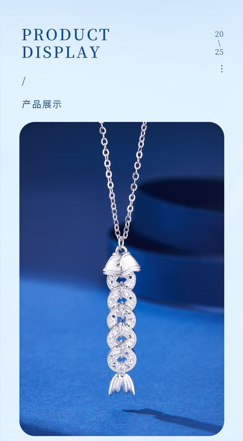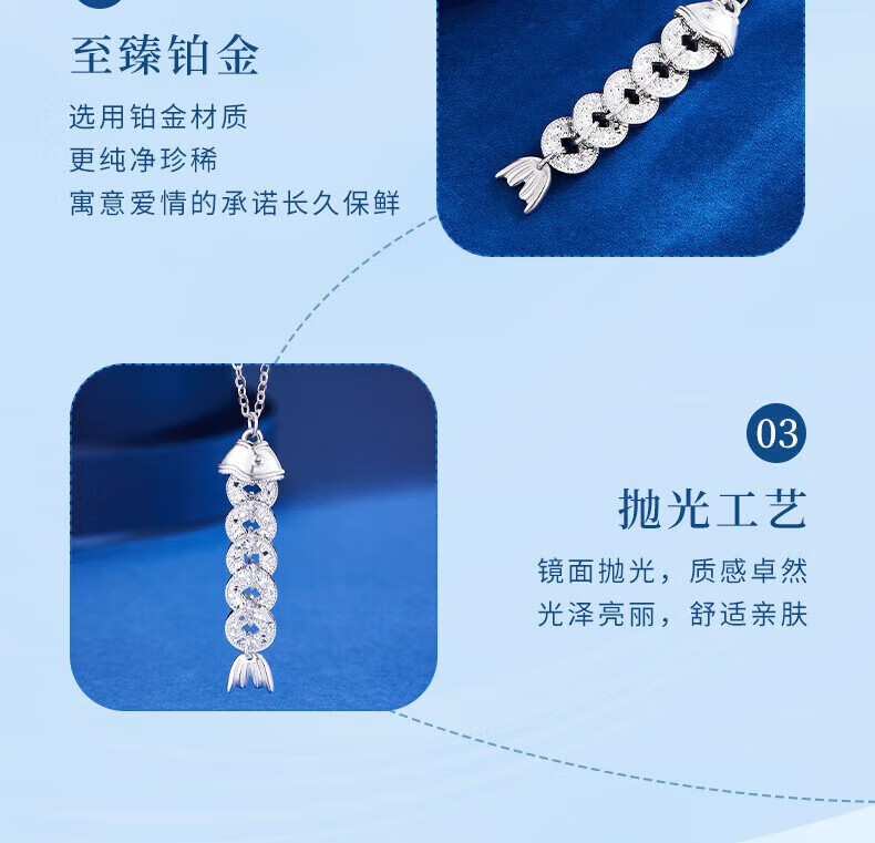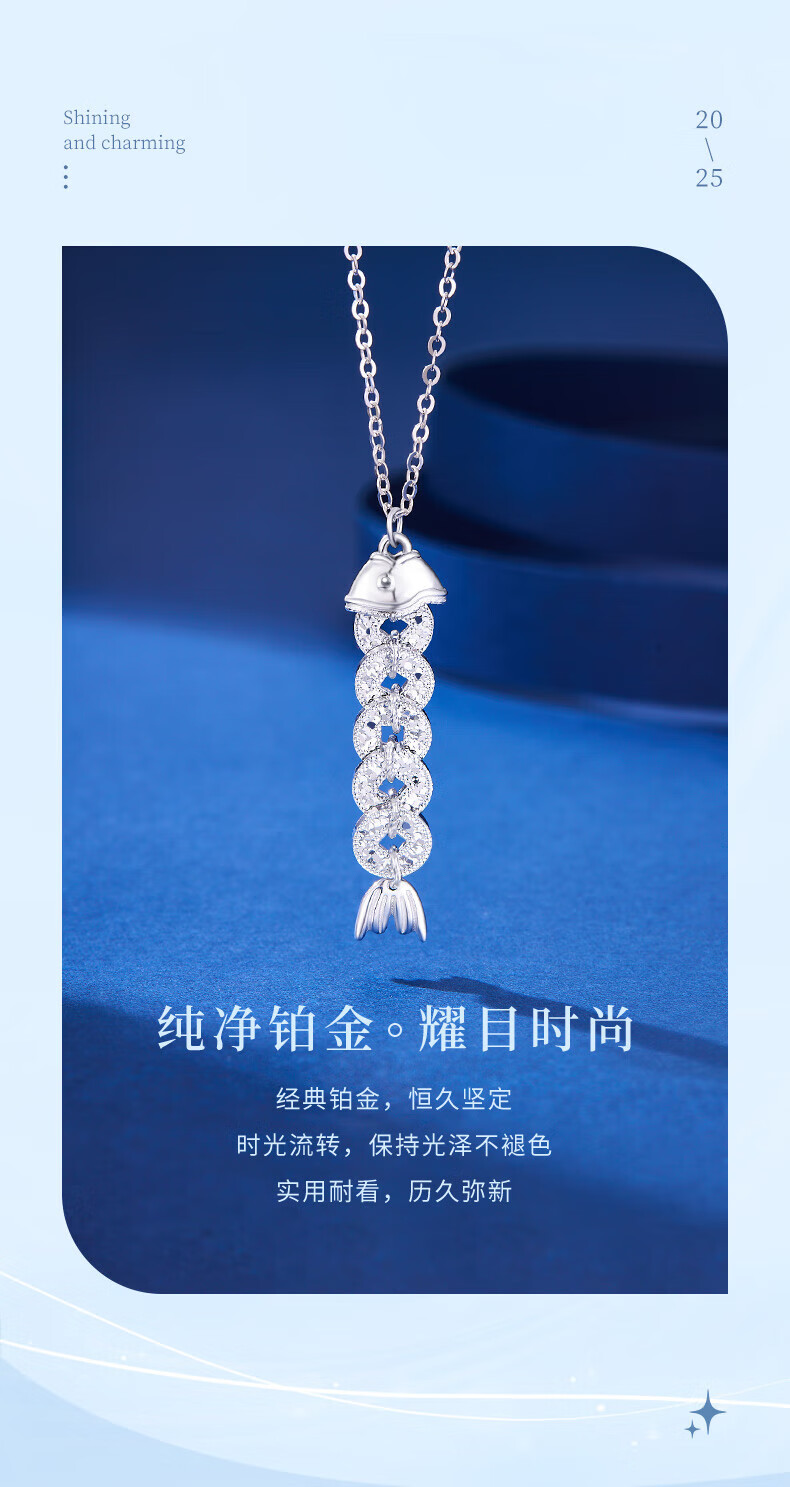 Lao Fengxiang PT950 platinum fish pendant for women 2025 new platinum necklace Mid-Autumn Festival gift for girlfriend and wife PT950 platinum fish necklace about 7.2g