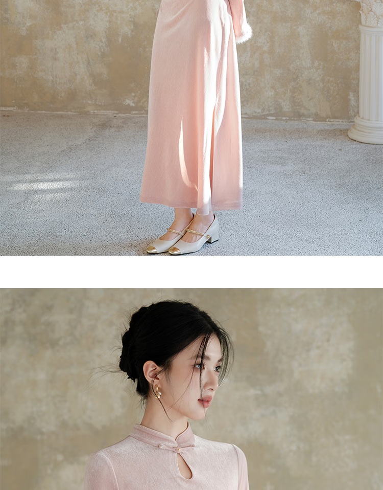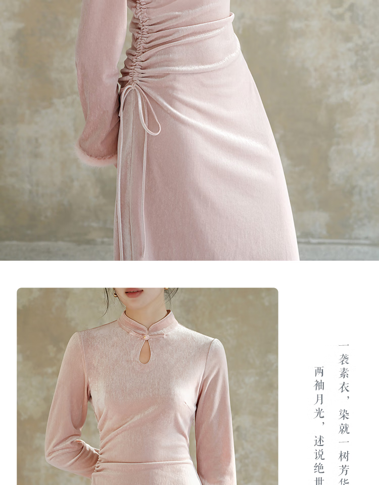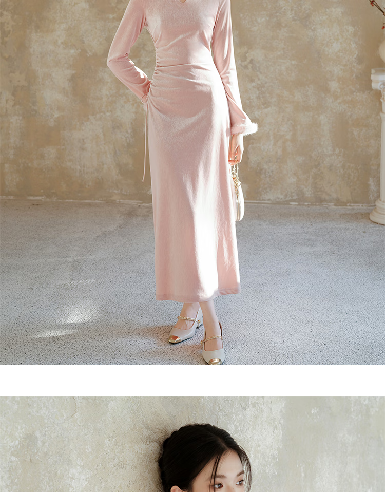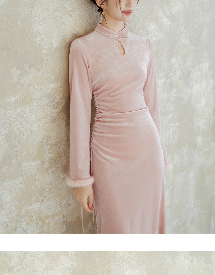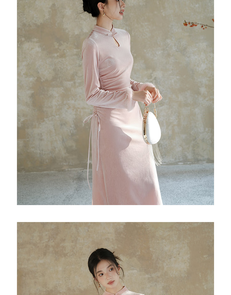 Chuchan Clothing New Chinese Style Velvet Cheongsam Women's 2025 New Slim Temperament National Style Improved Dress Pink Engagement Dress Yingfen M Ready in Stock