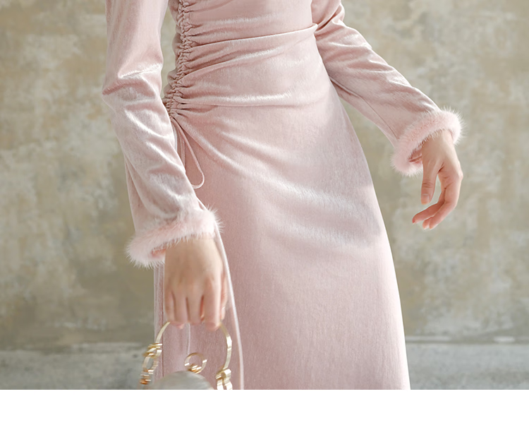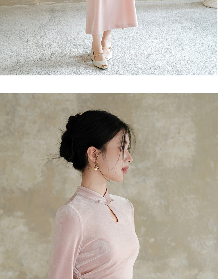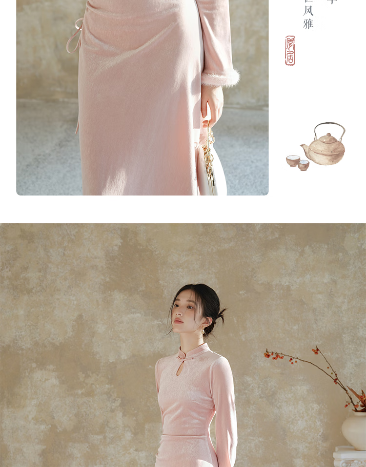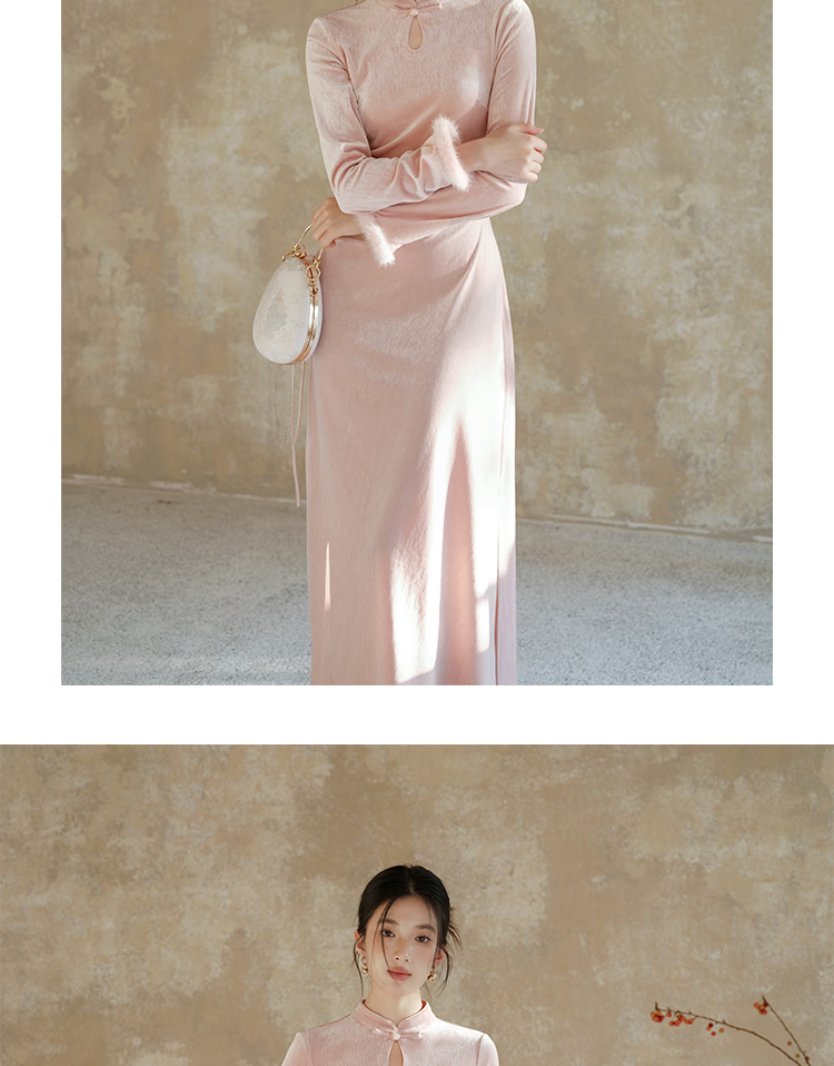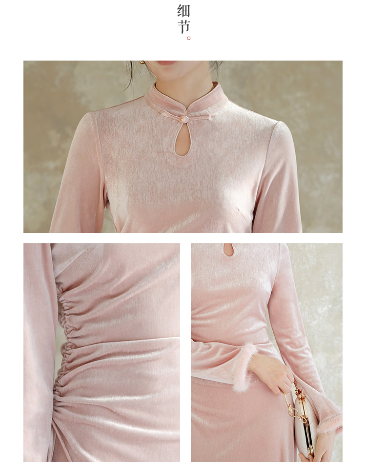 Chuchan Clothing New Chinese Style Velvet Cheongsam Women's 2025 New Slim Temperament National Style Improved Dress Pink Engagement Dress Yingfen M Ready in Stock