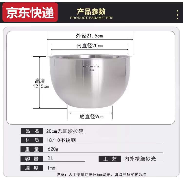 Sanqihu exported to Germany 316 stainless steel thickened salad bowl household cooking basin egg beating basin kneading dish basin 16-28 18/1020cm earless salad bowl