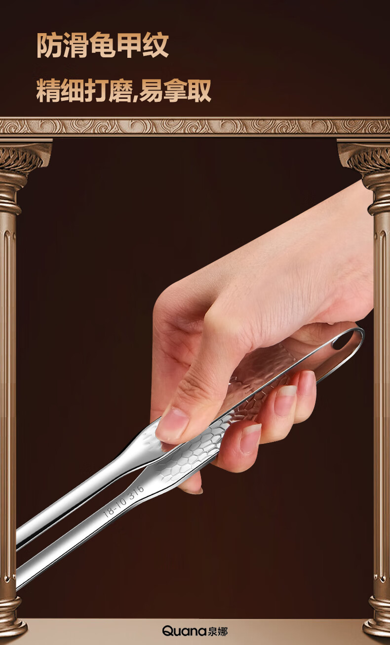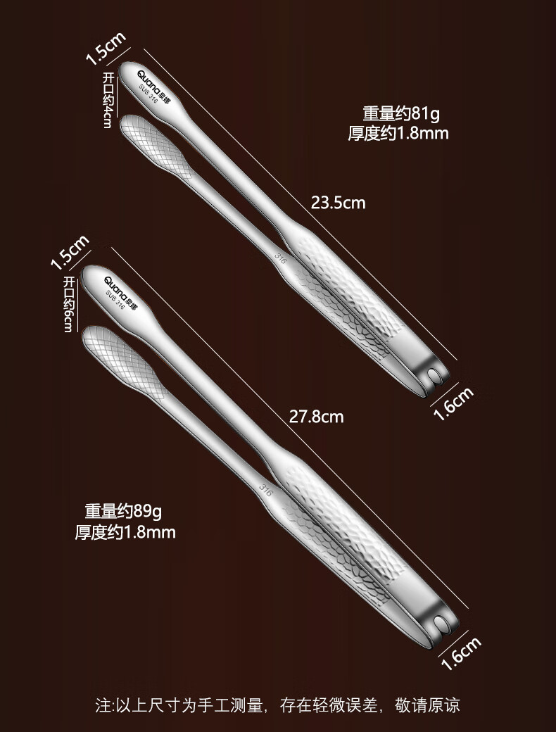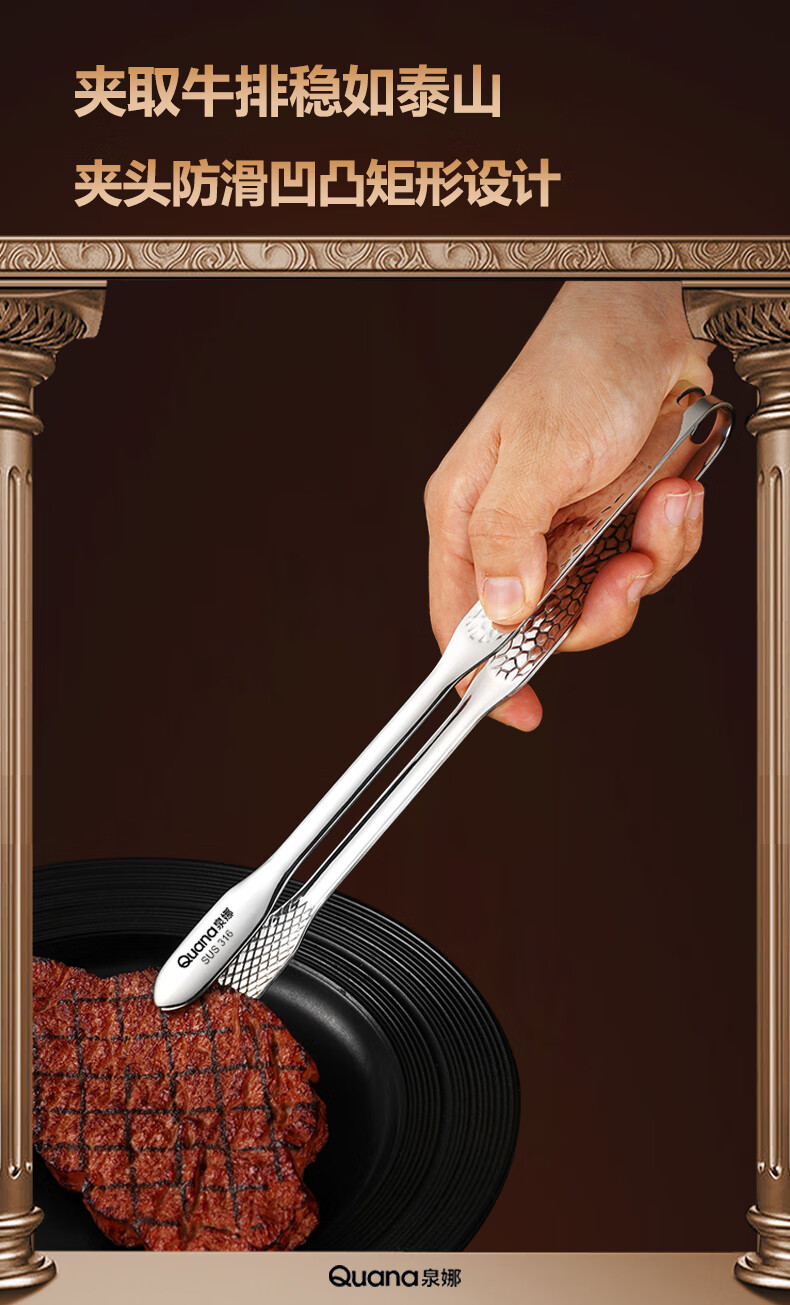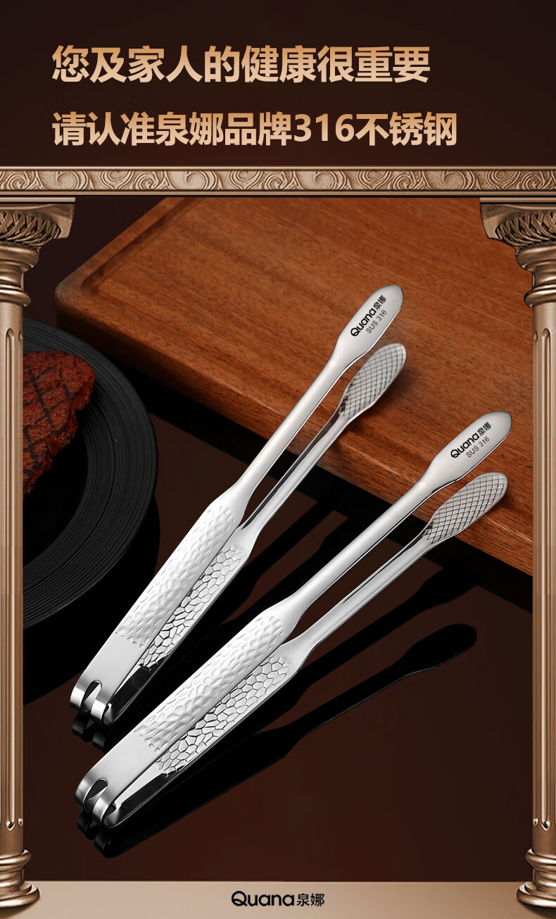 Quanna 316 steel barbecue tongs, anti-scalding barbecue tongs, fried steak tongs, seafood buffet food tongs, noodle tongs, ice cube tongs, food grade 316 steel barbecue tongs, small size 1 pack
