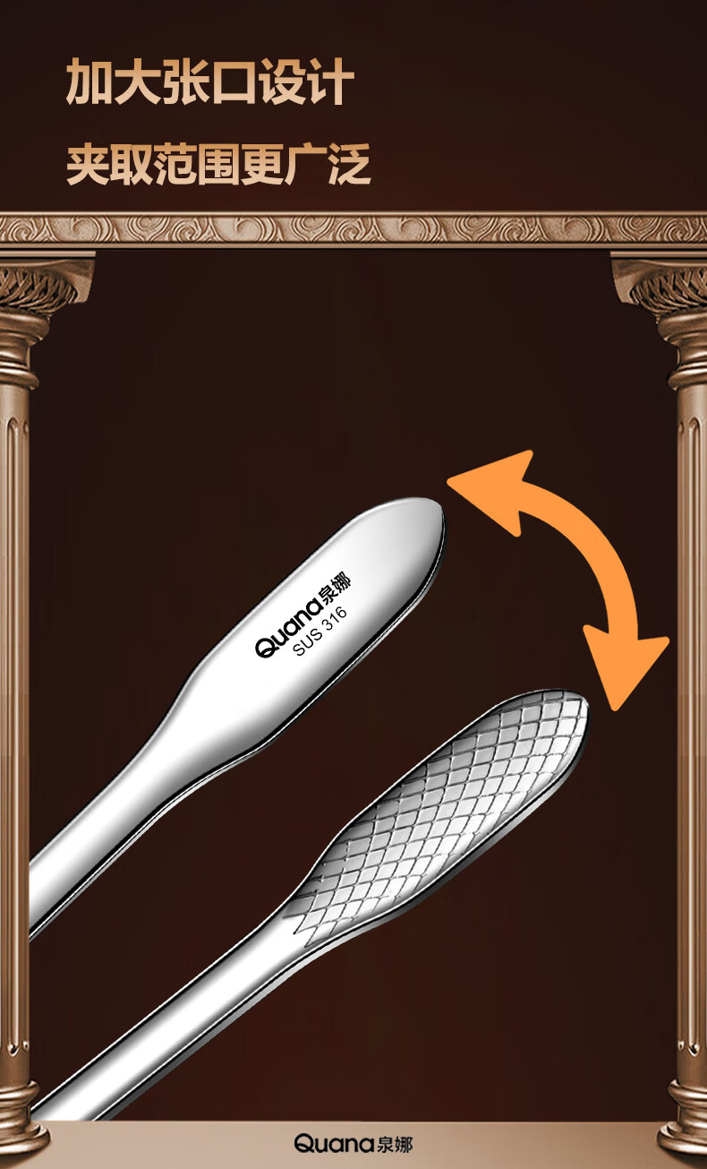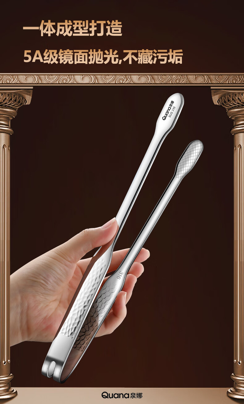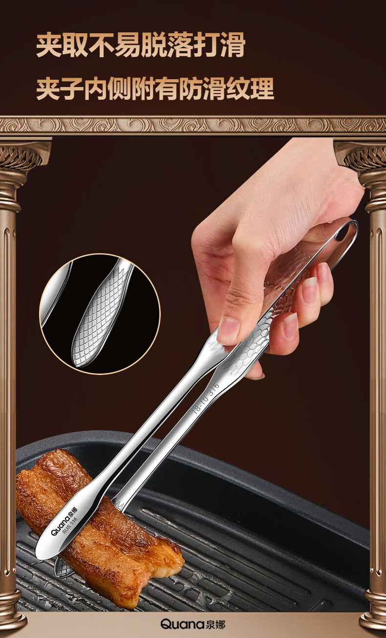 Quanna 316 steel barbecue tongs, anti-scalding barbecue tongs, fried steak tongs, seafood buffet food tongs, noodle tongs, ice cube tongs, food grade 316 steel barbecue tongs, small size 1 pack
