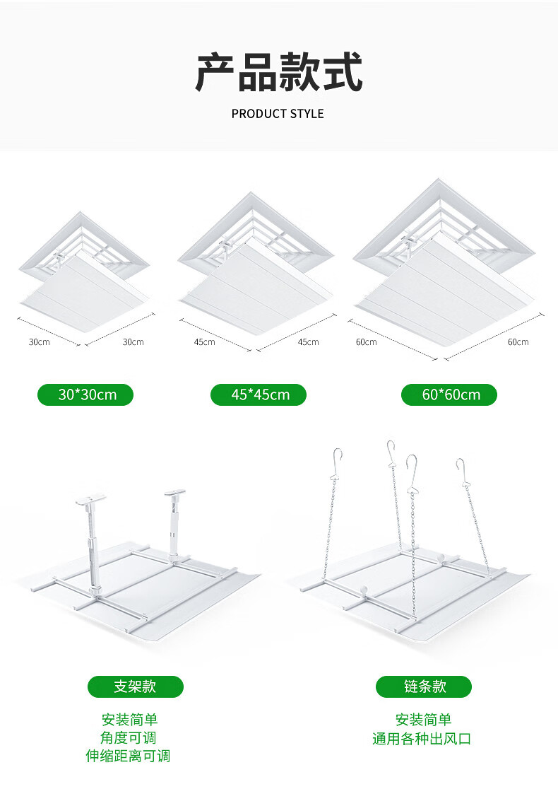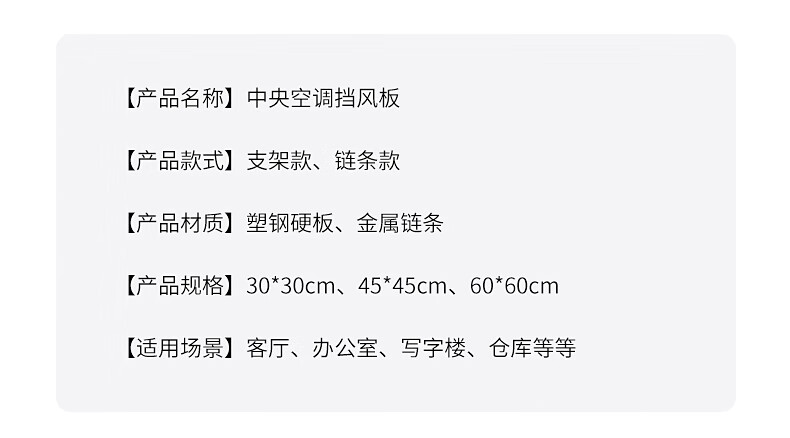 Square ceiling central air conditioning outlet windshield, wind shield, duct machine anti-direct blowing wind guide cover, chain clause, plastic steel 45*45, universal, free waterproof cotton