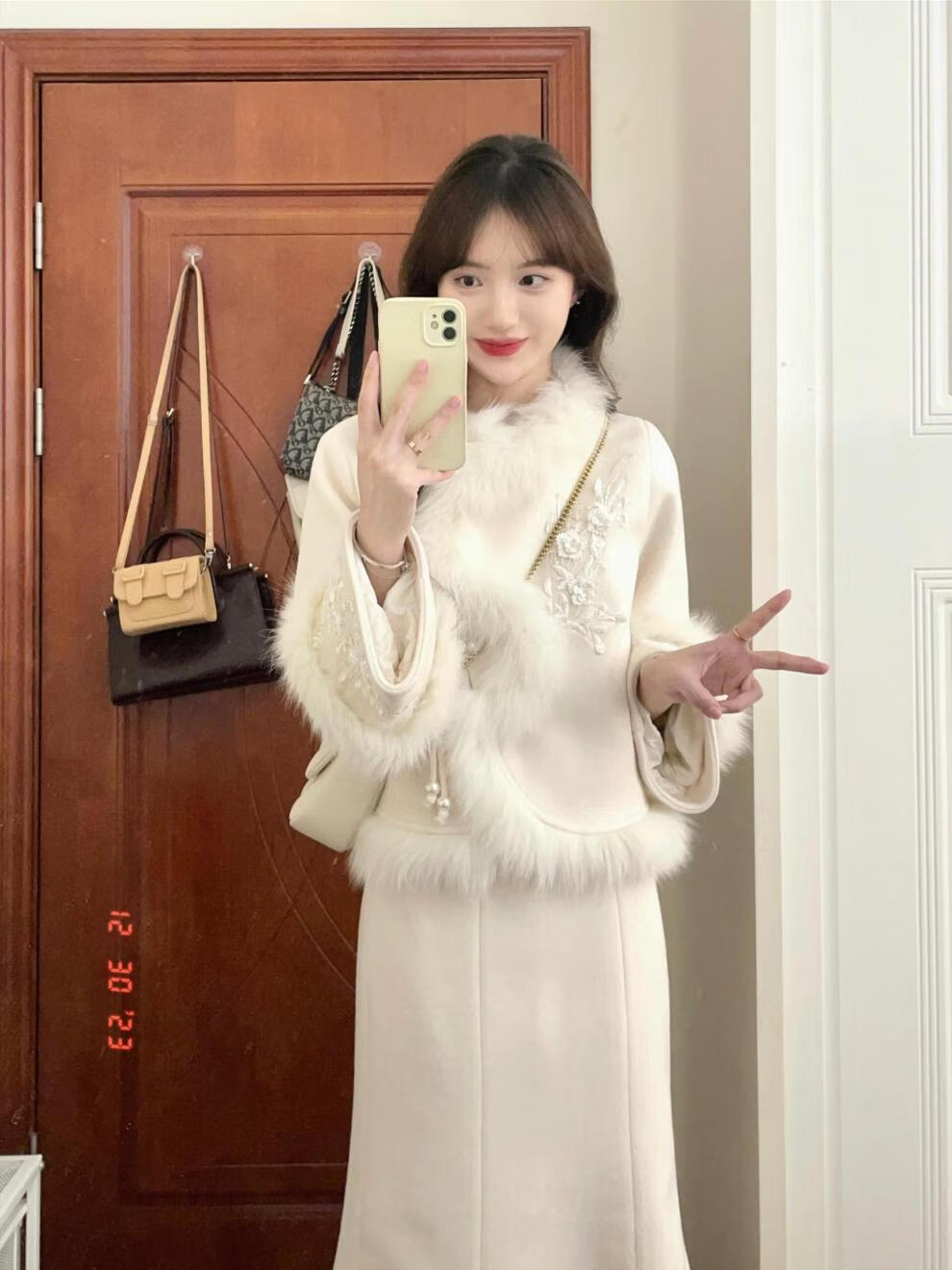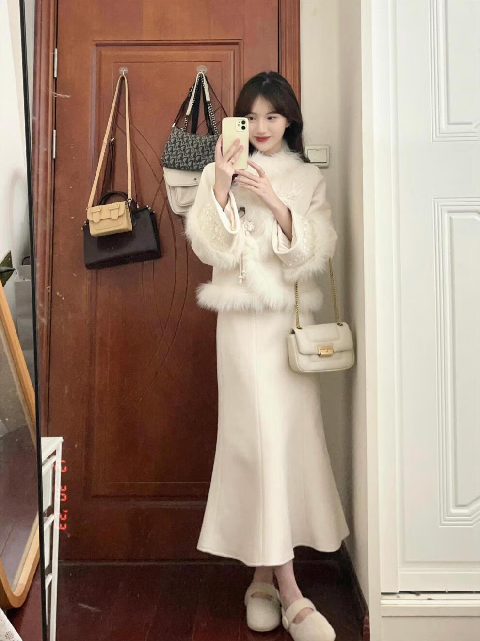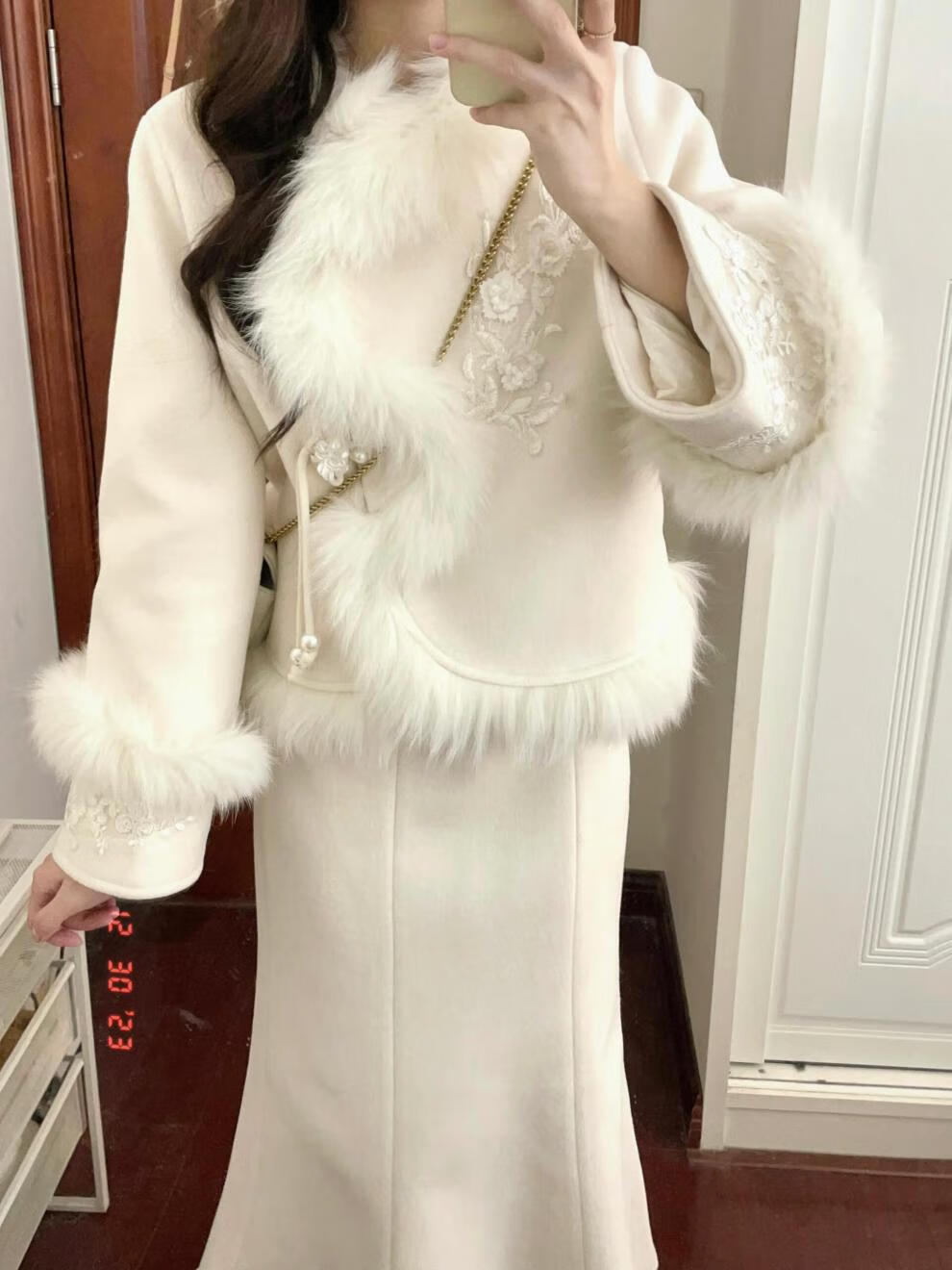 Hengyuanxiang winter clothing with a complete set of large size fat mm new Chinese woolen coat Xiaoxiang style royal sister fashion suit for women two-piece suit L (recommended 100-120 Jin Jin equals 0.5 kg)