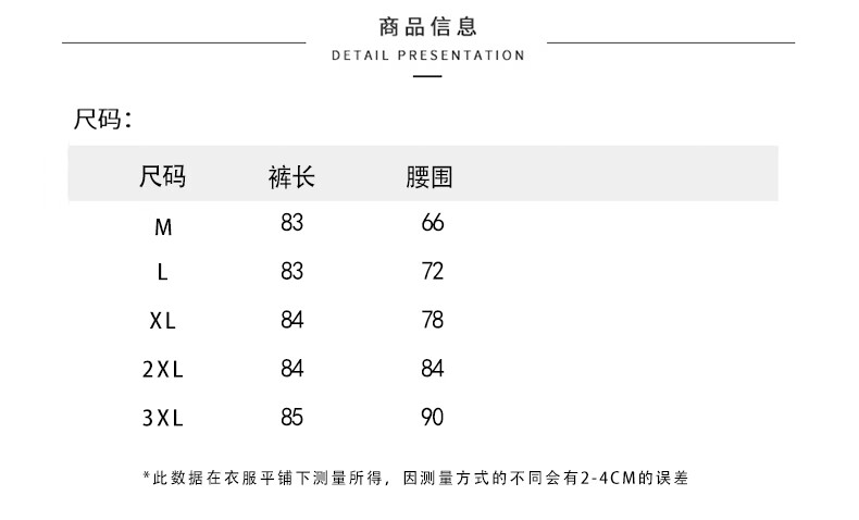 Outseam (cm) 99 cm 101.5 cm 104 cm 106.5 cm 109 cm