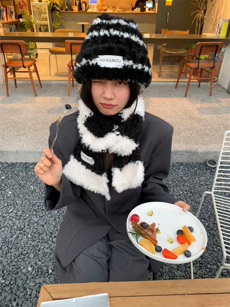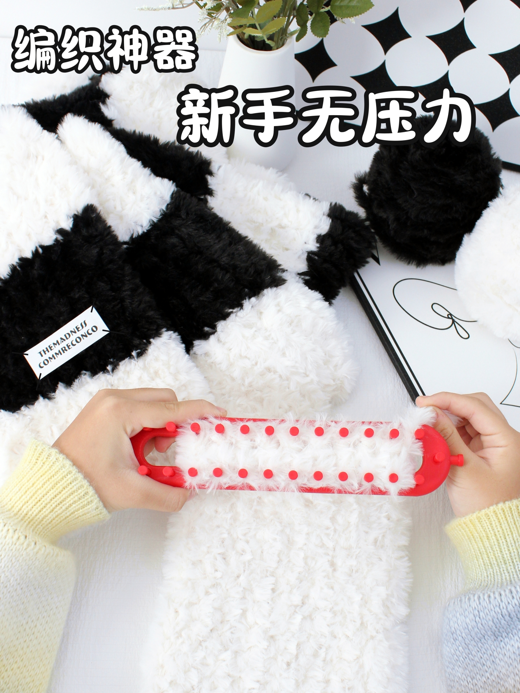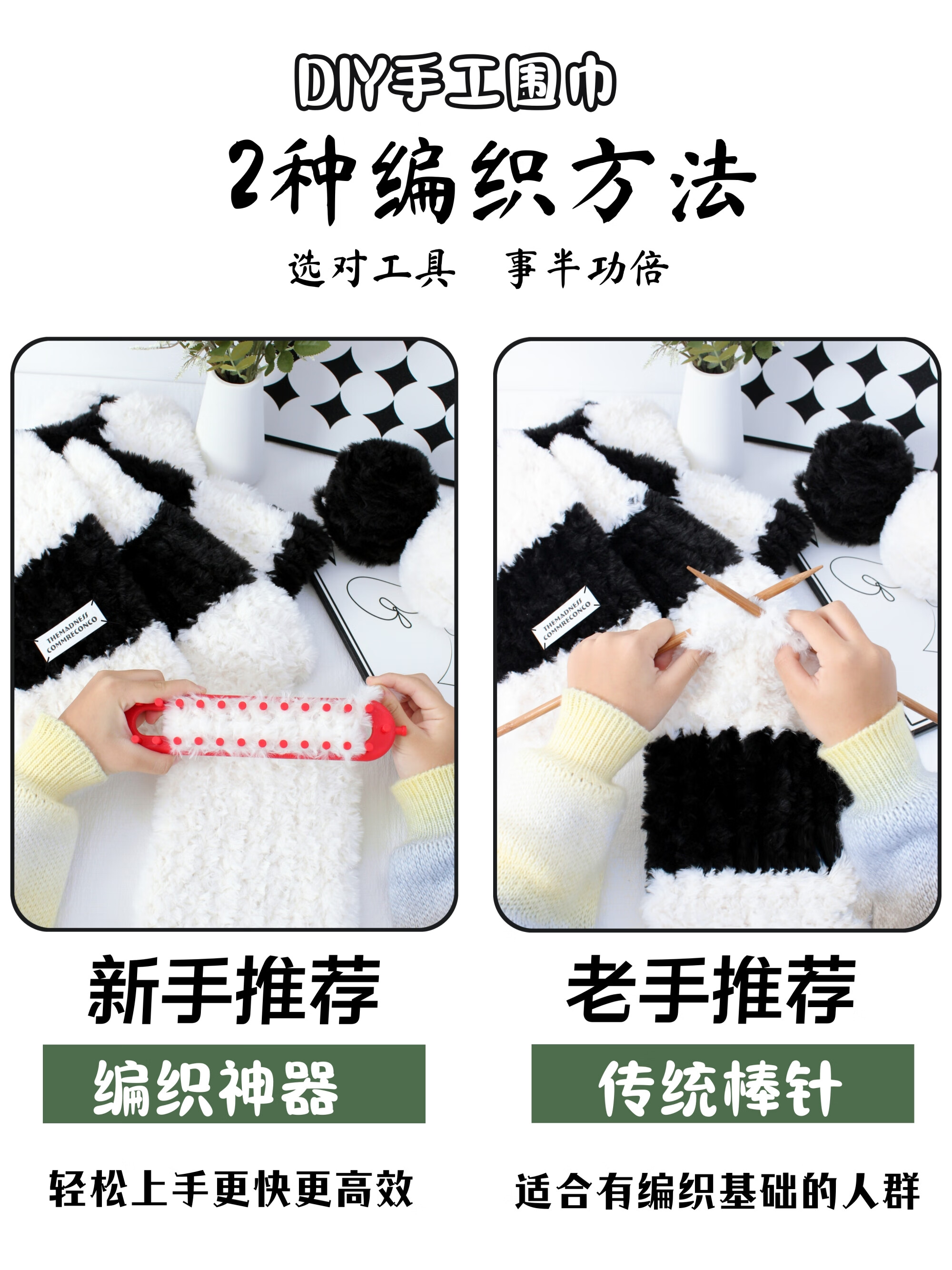 Bei Chuzhong scarf hand-knitted diy for girlfriend birthday gift female material bag thick wool couple male hand-knit scarf black and white stripes 4 balls of wool + knitting artifact + cloth label gift bag warm winter gift for your loved ones