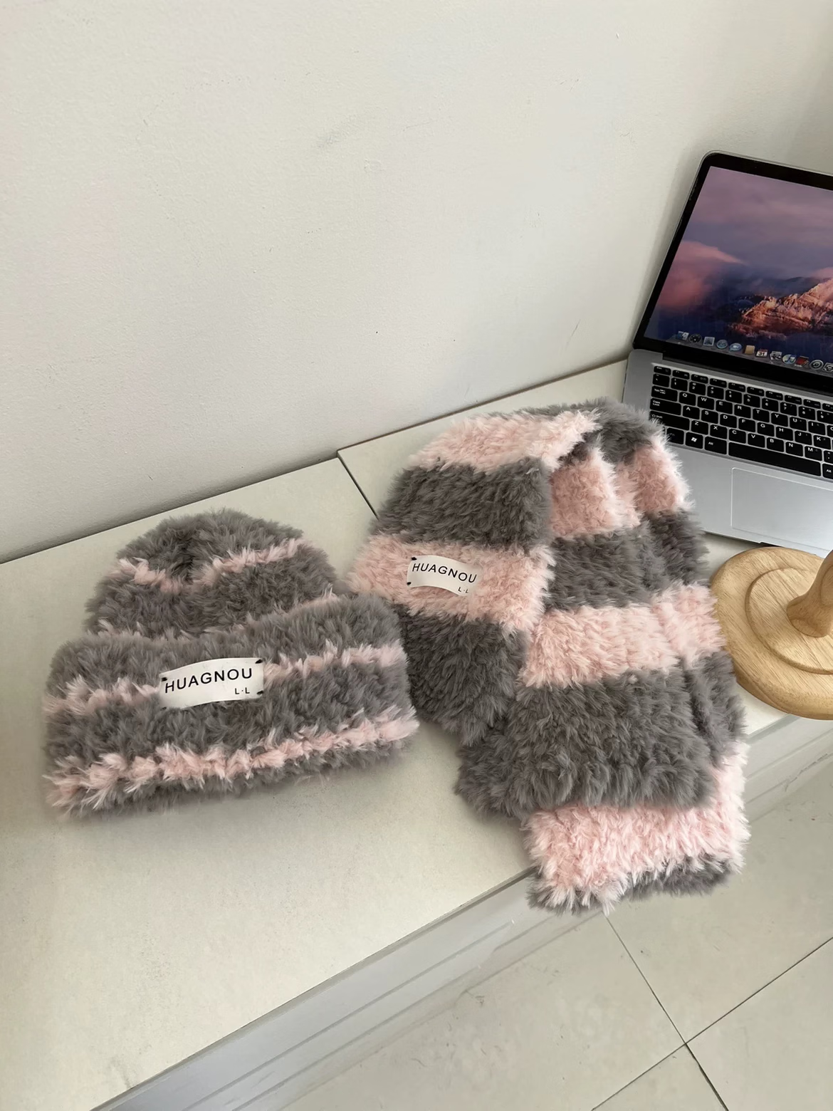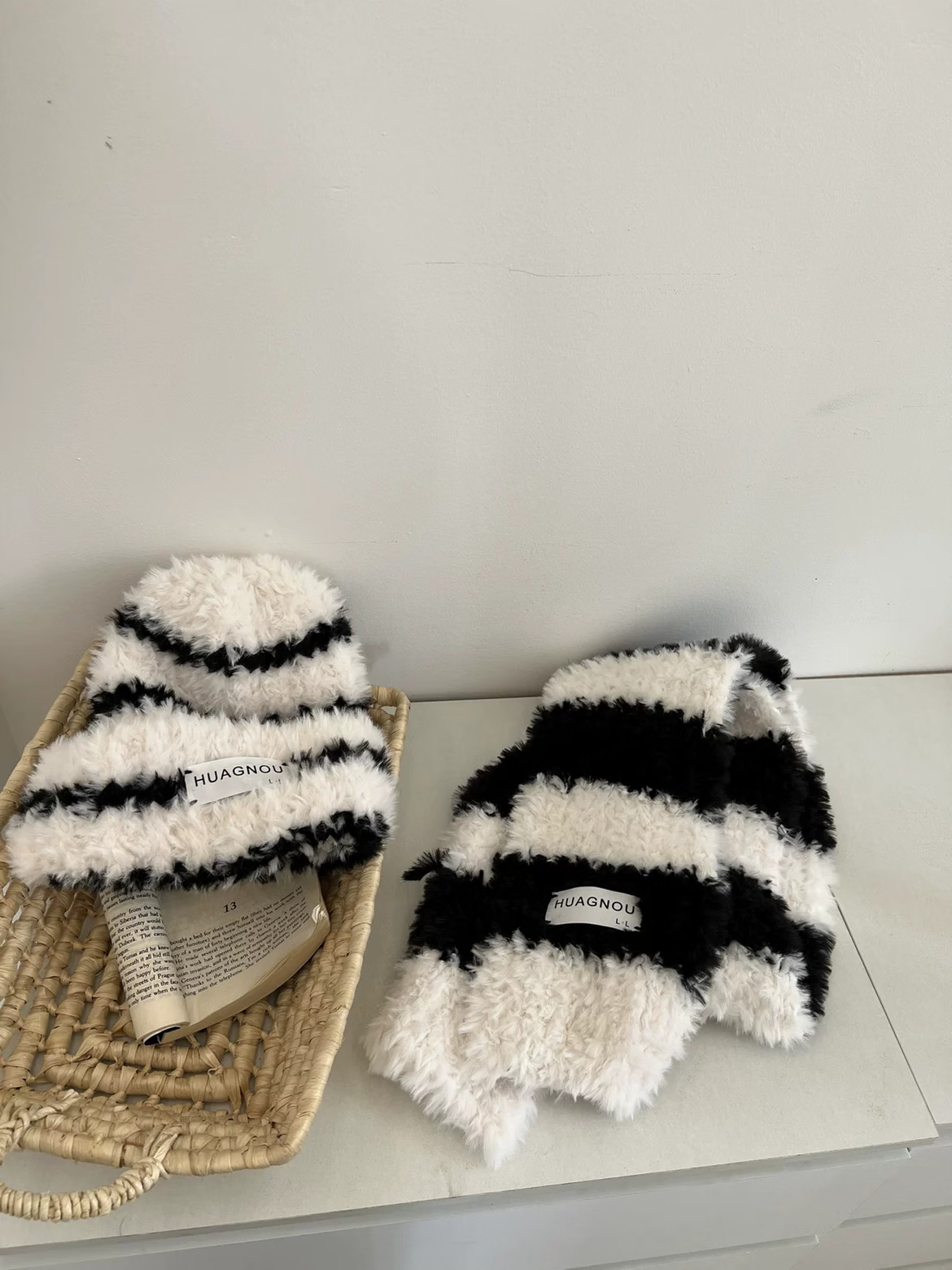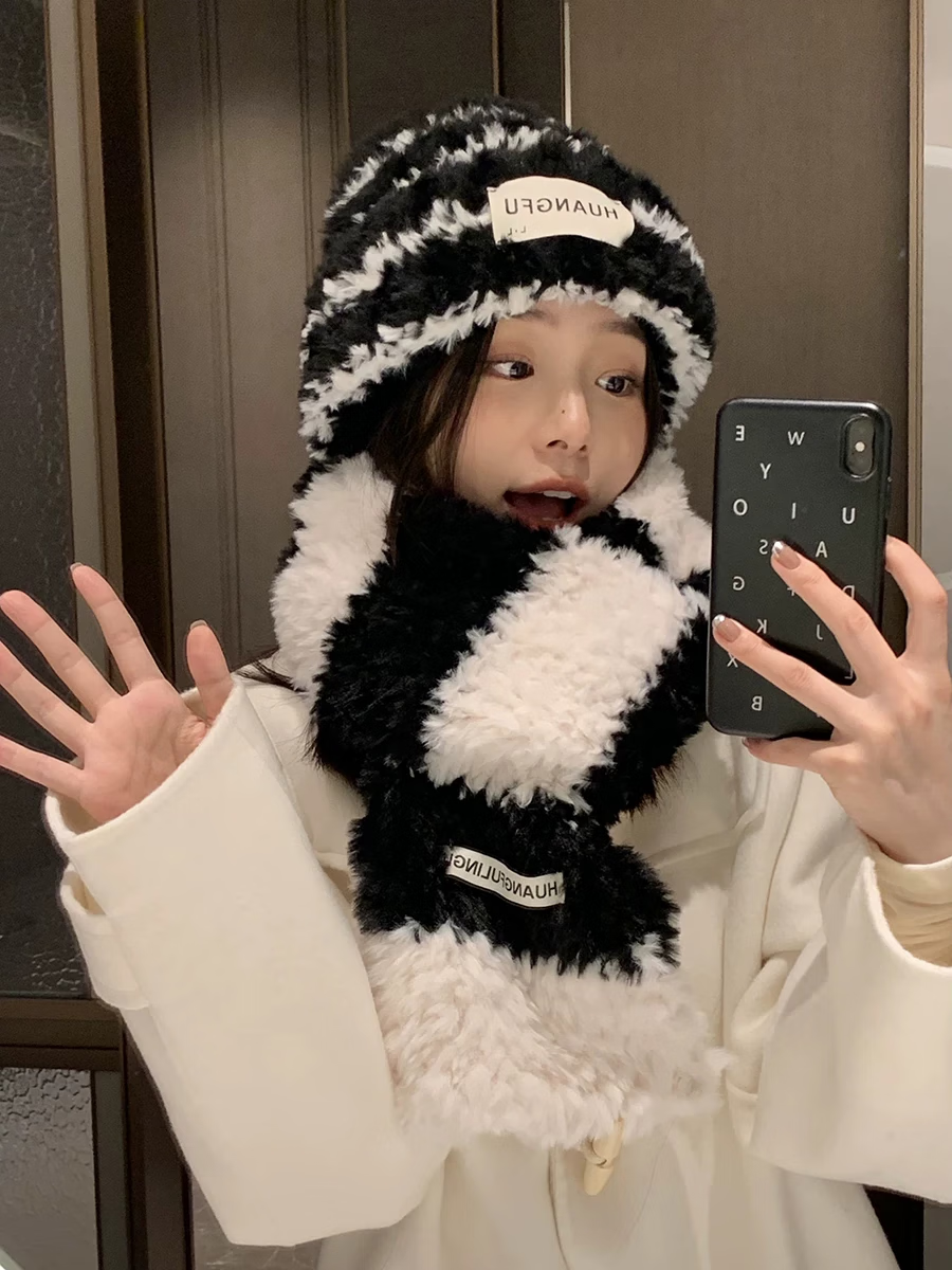 Bei Chuzhong scarf hand-knitted diy for girlfriend birthday gift female material bag thick wool couple male hand-knit scarf black and white stripes 4 balls of wool + knitting artifact + cloth label gift bag warm winter gift for your loved ones