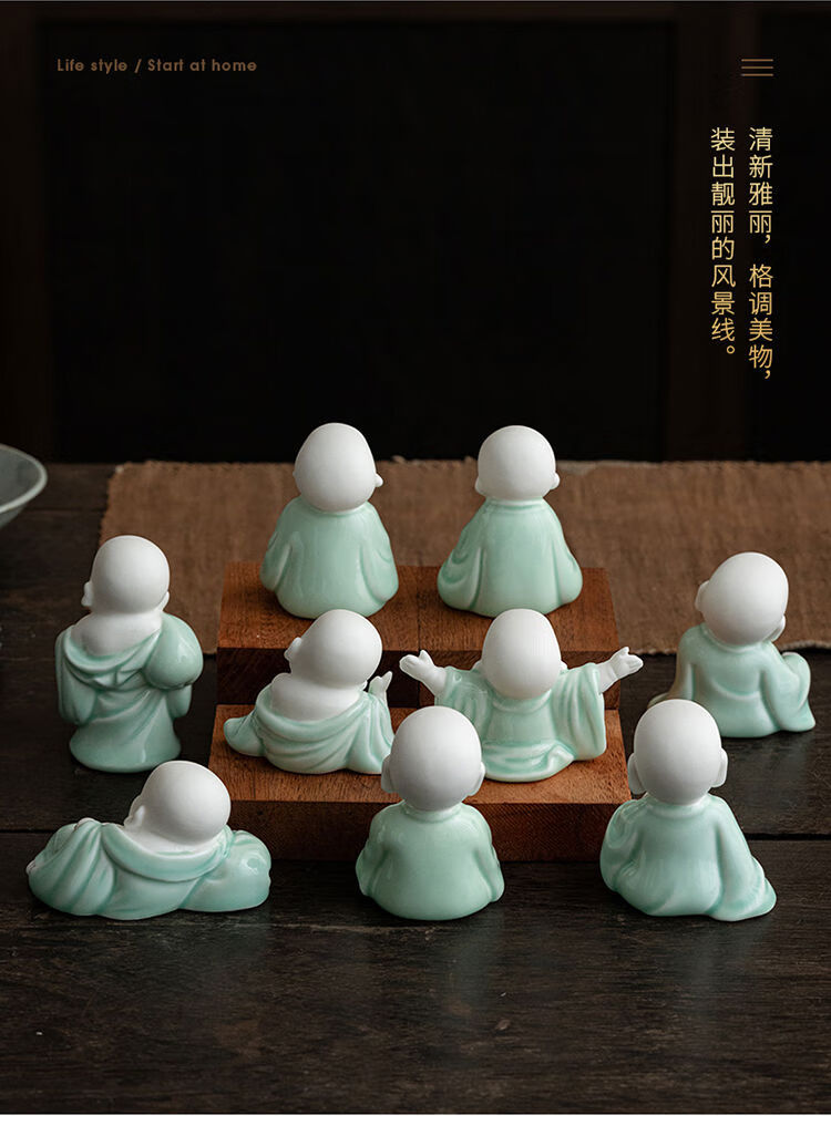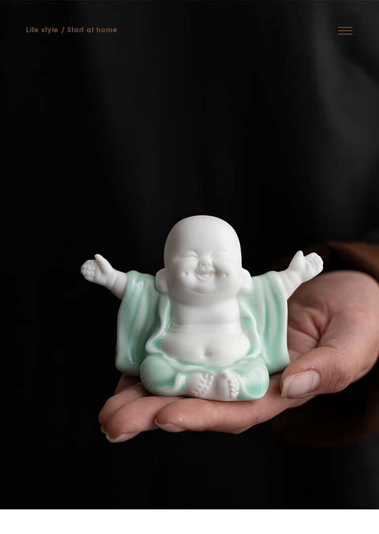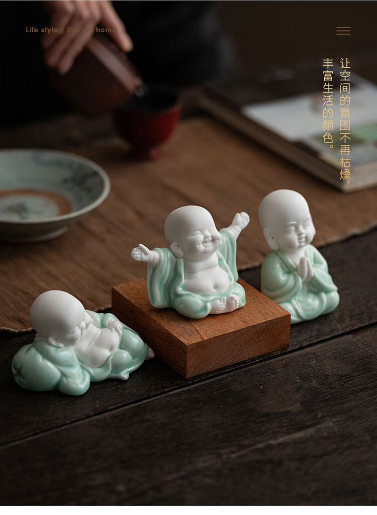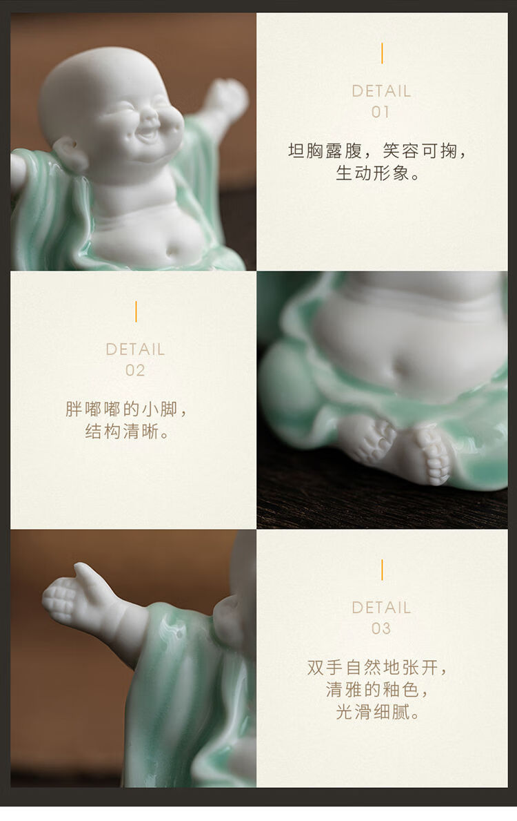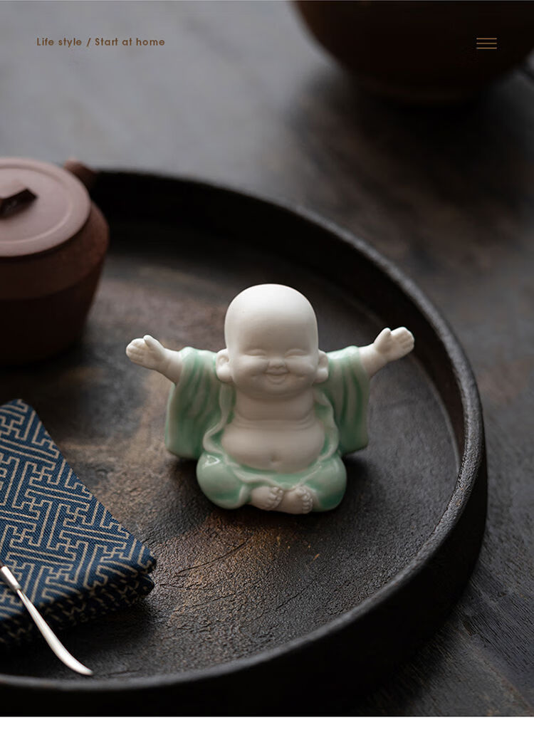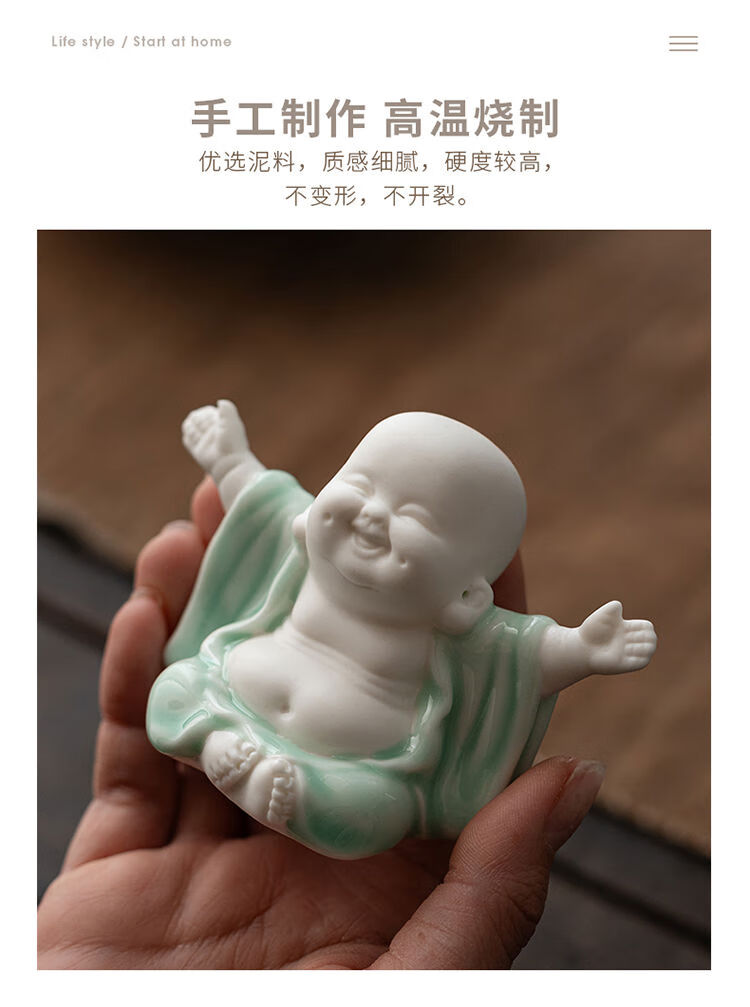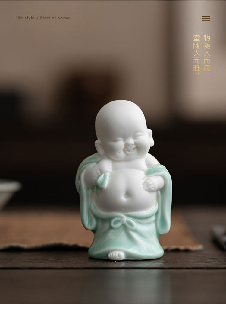 Lakeside Residence Celadon Big Belly Maitreya Buddha Tea Pet Ornament Can Raise Cute Laughing Buddha Little Monk Flower Pot Ornament Tea Set with Smile Always Open Celadon