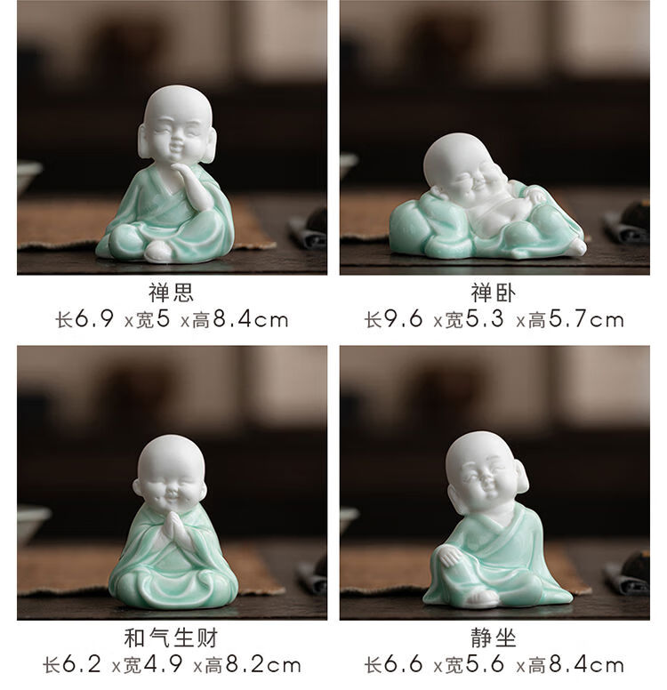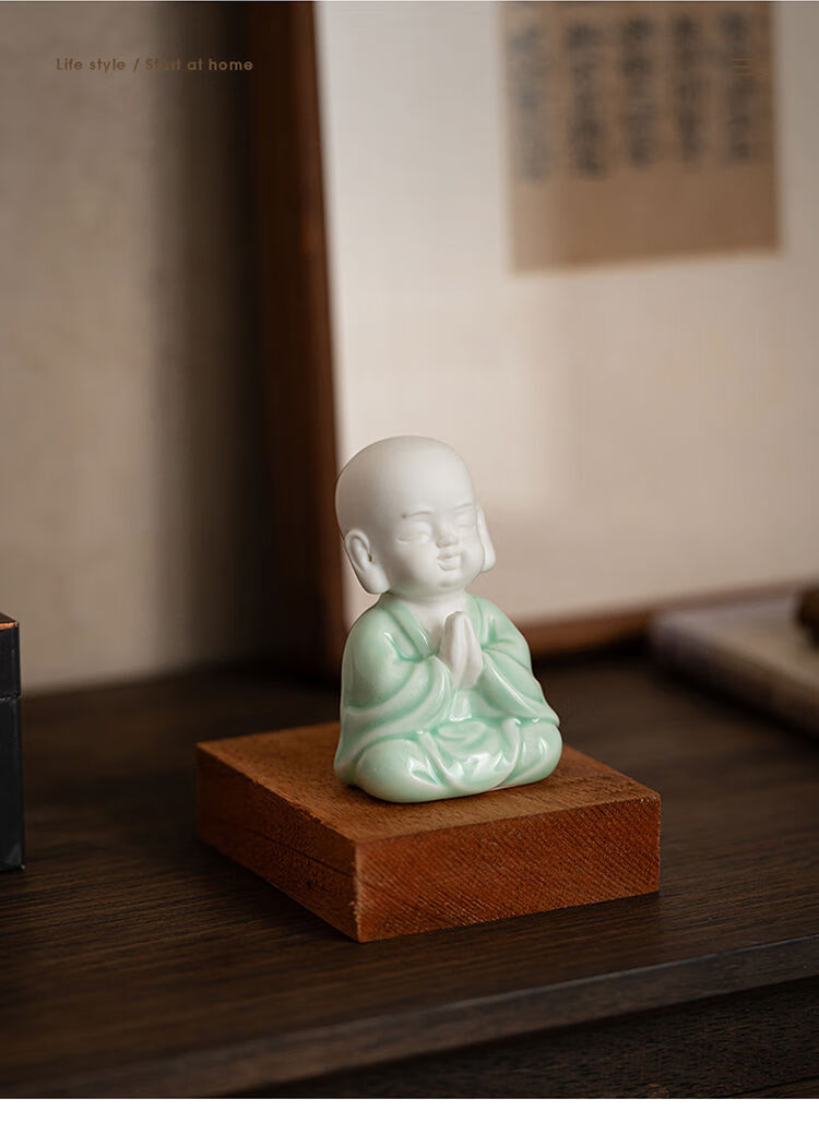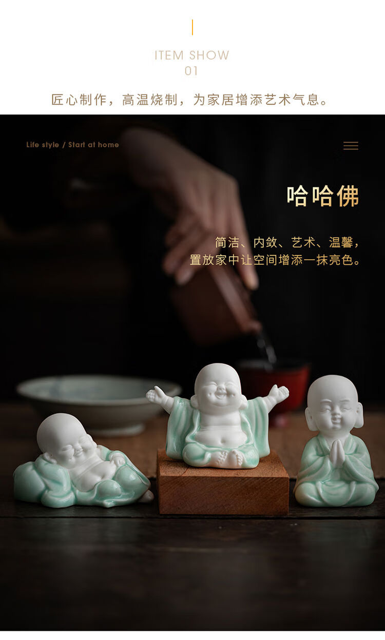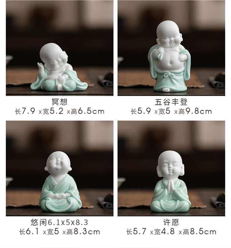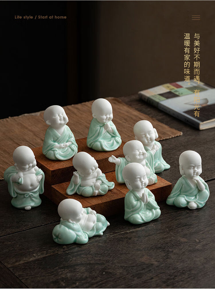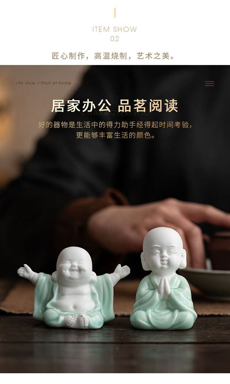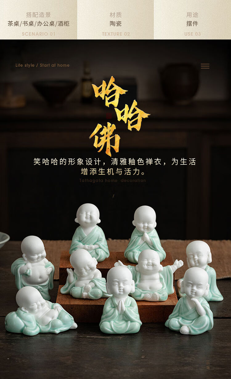 Lakeside Residence Celadon Big Belly Maitreya Buddha Tea Pet Ornament Can Raise Cute Laughing Buddha Little Monk Flower Pot Ornament Tea Set with Smile Always Open Celadon