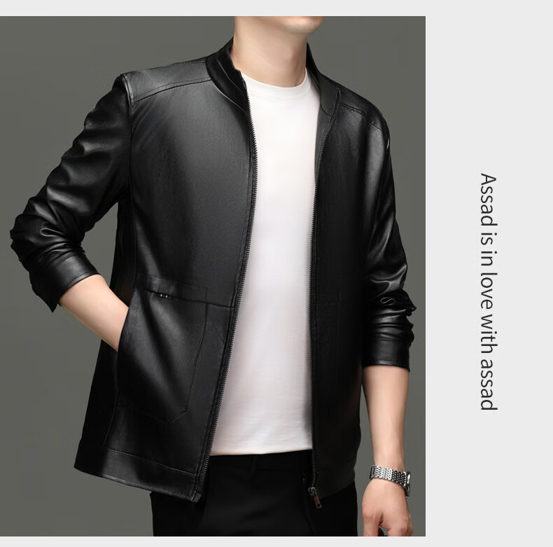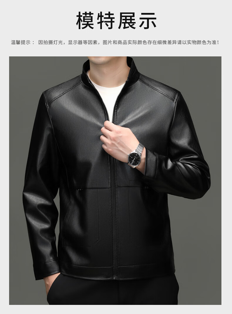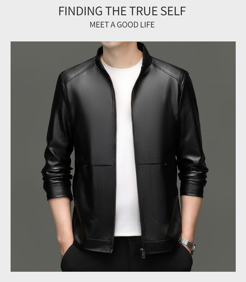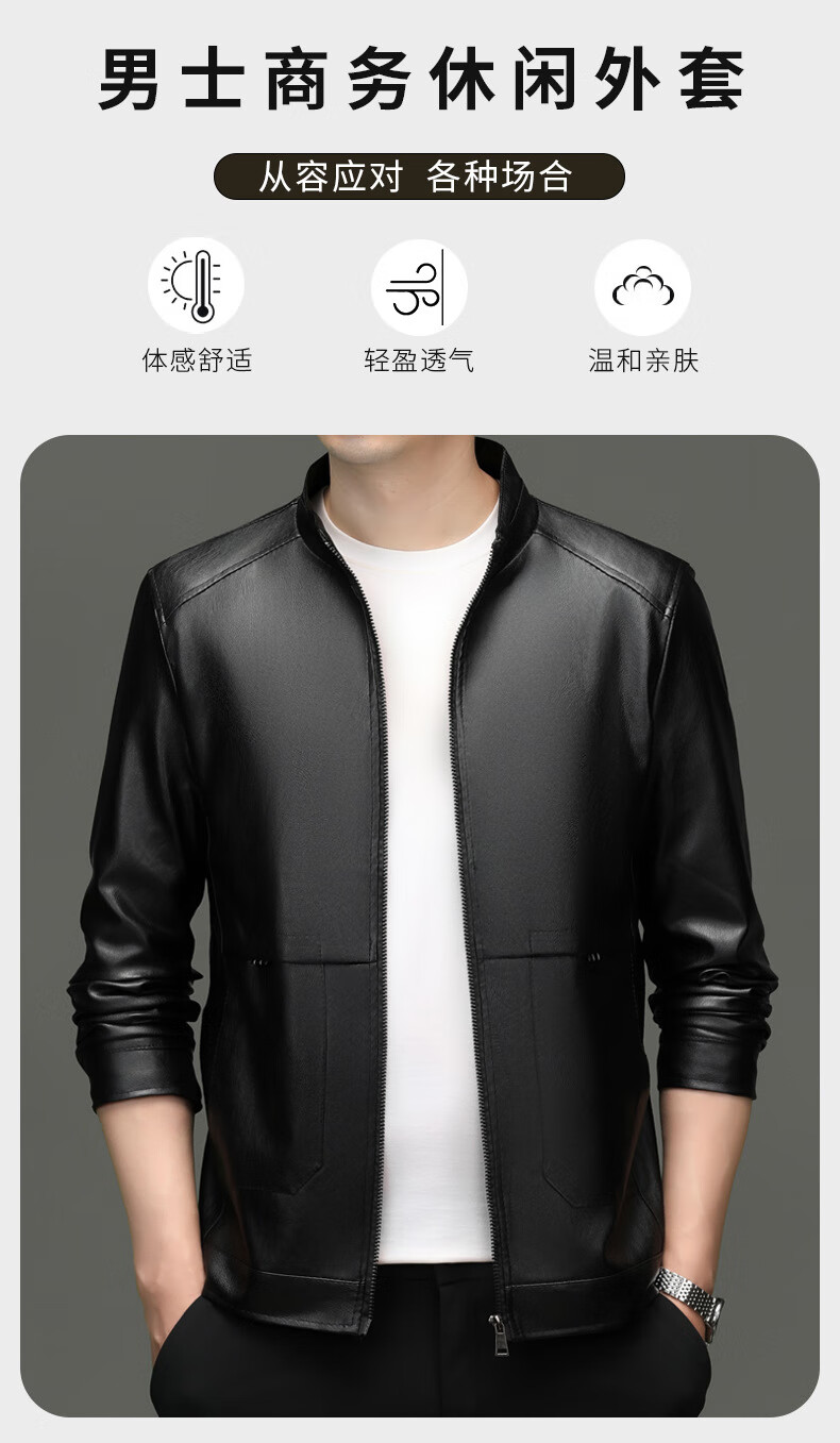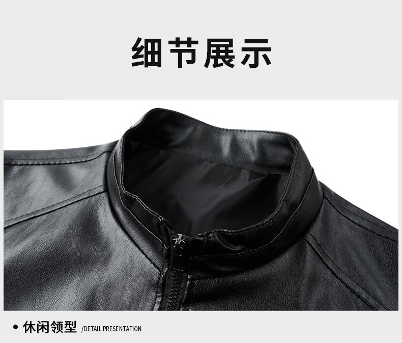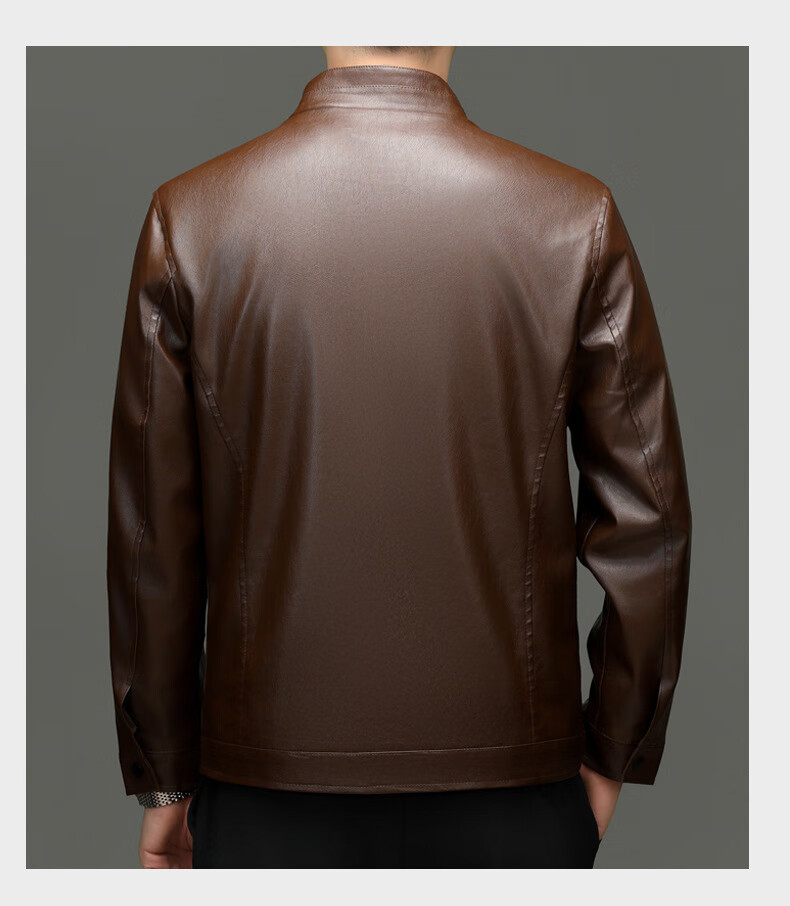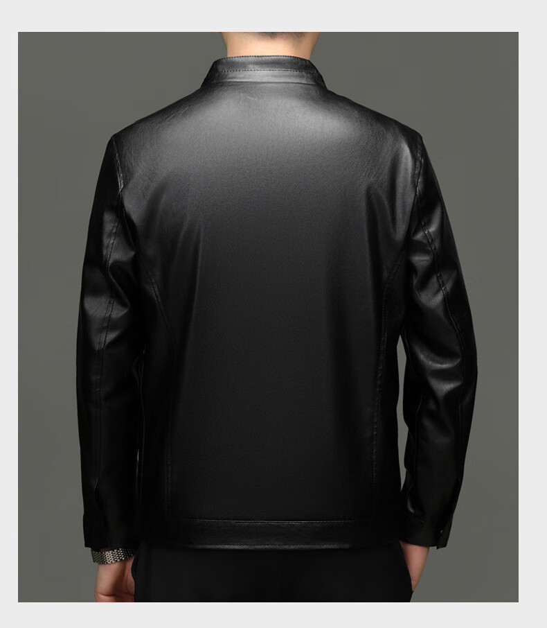 Jiumuwang men's leather jacket short stand collar zipper autumn and winter casual jacket PU leather top middle-aged dad men's jacket black M