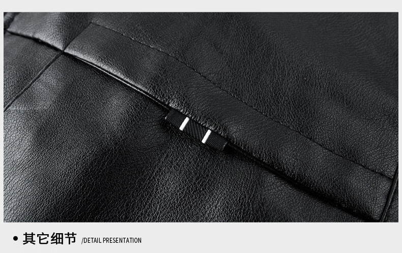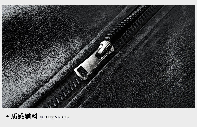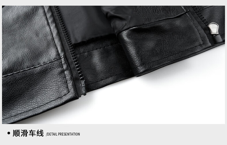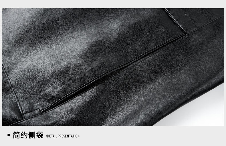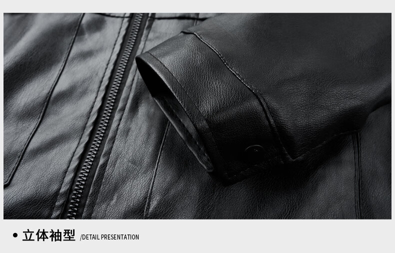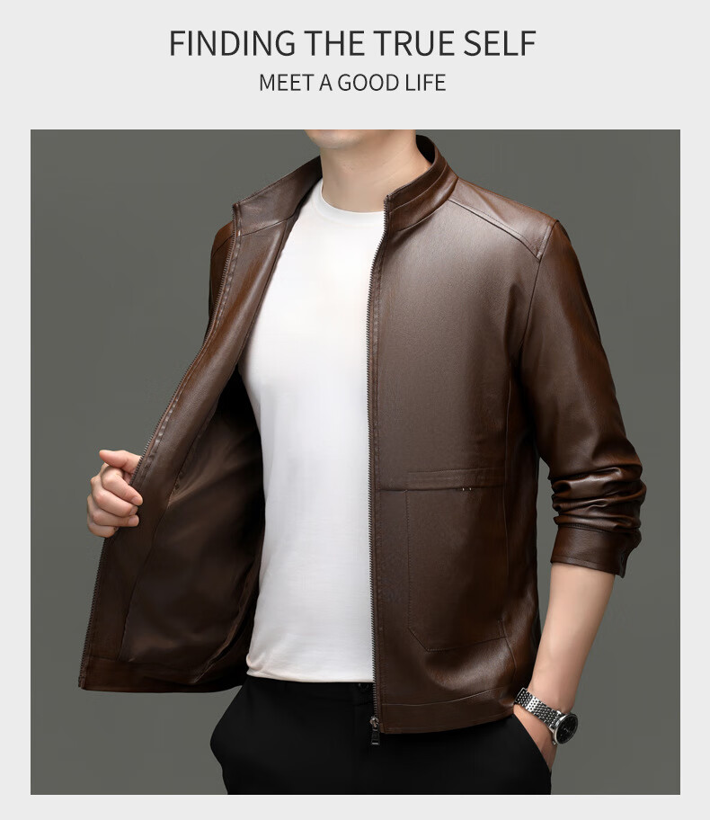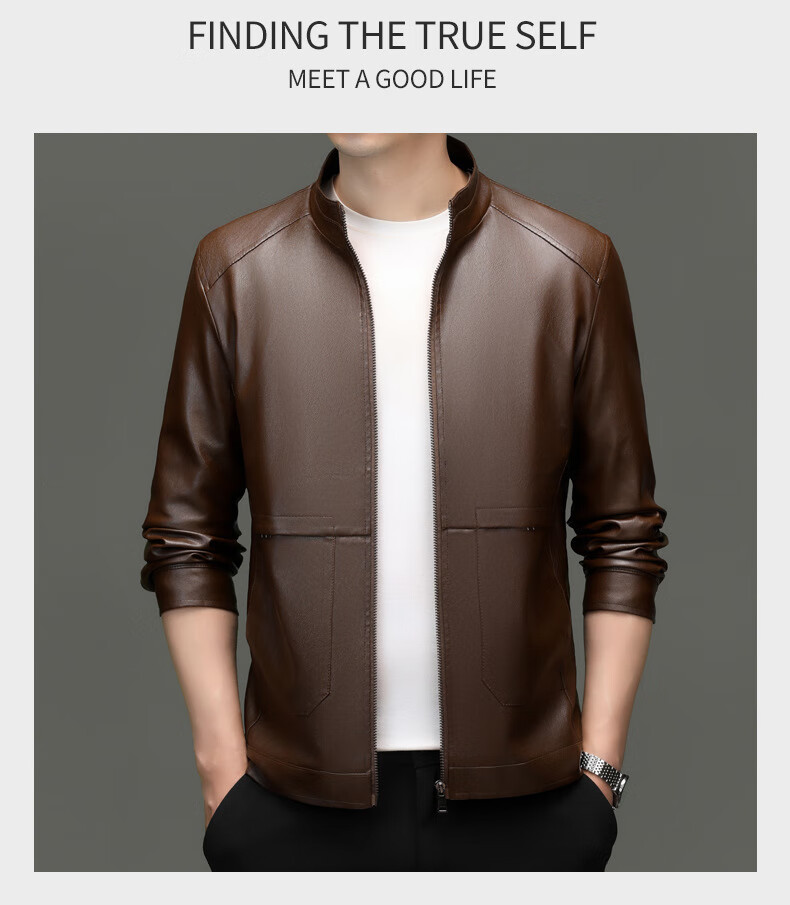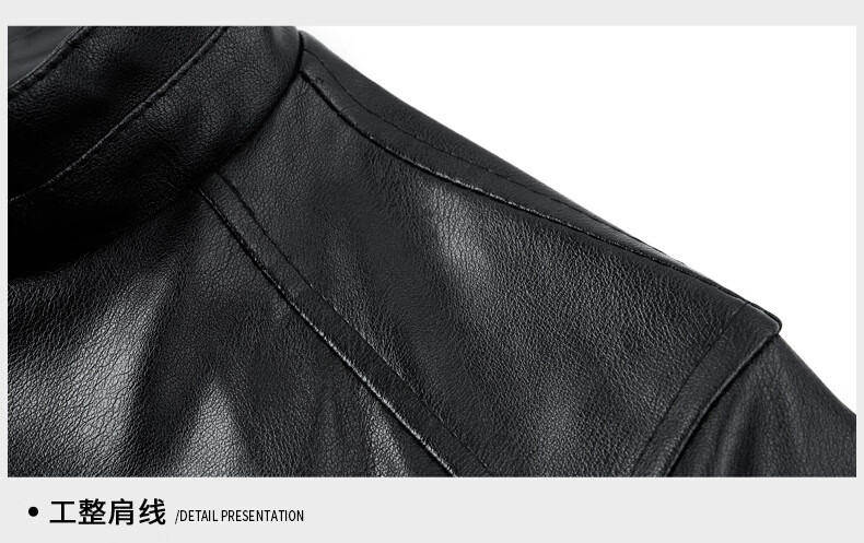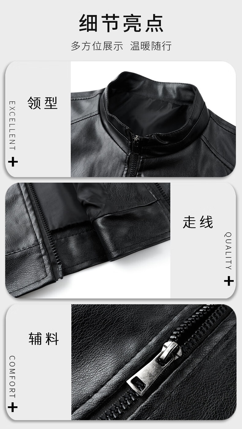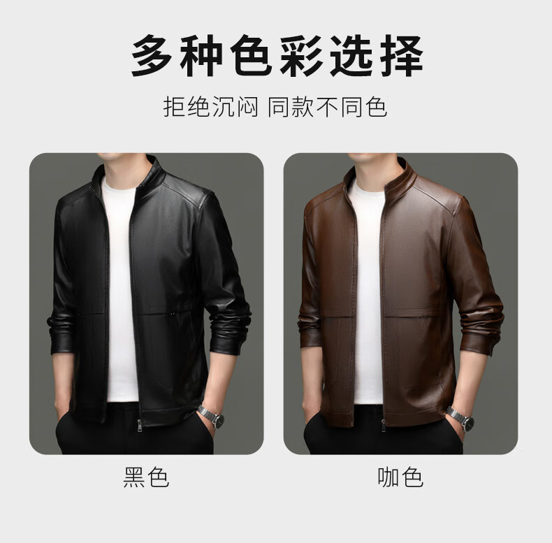 Jiumuwang men's leather jacket short stand collar zipper autumn and winter casual jacket PU leather top middle-aged dad men's jacket black M