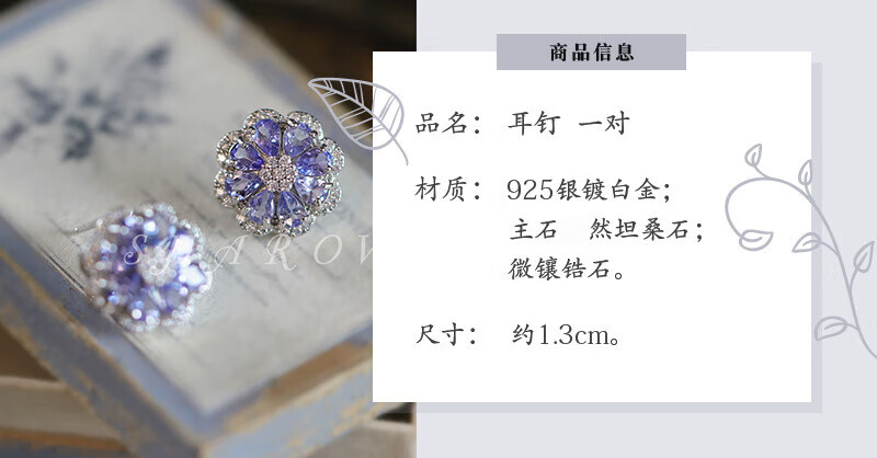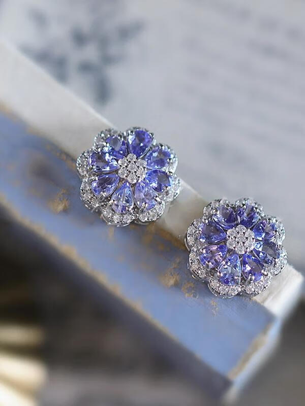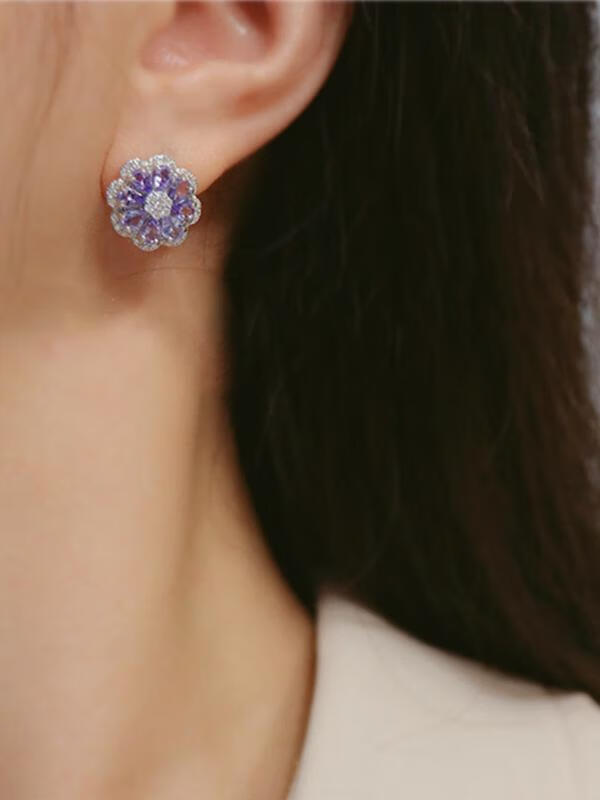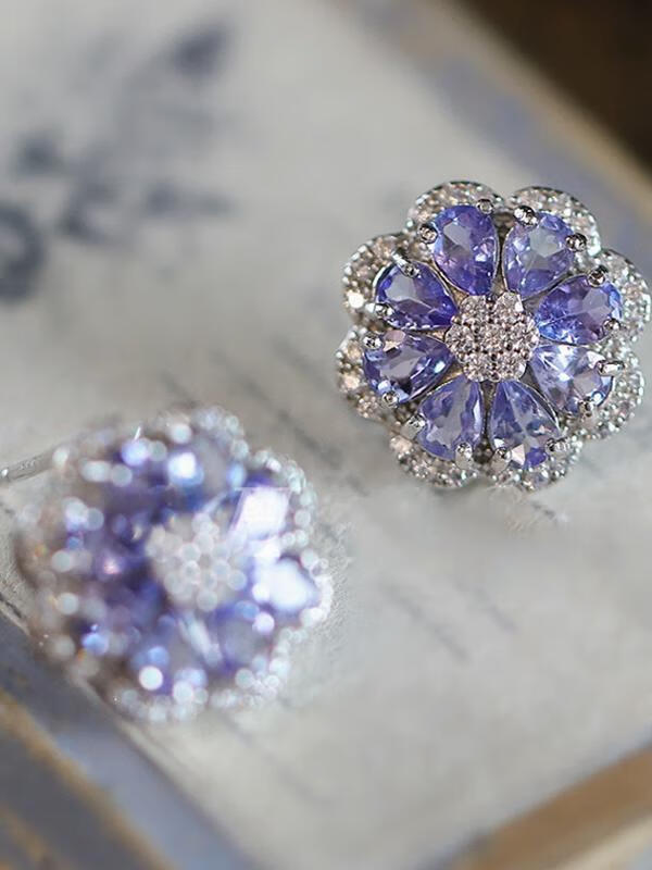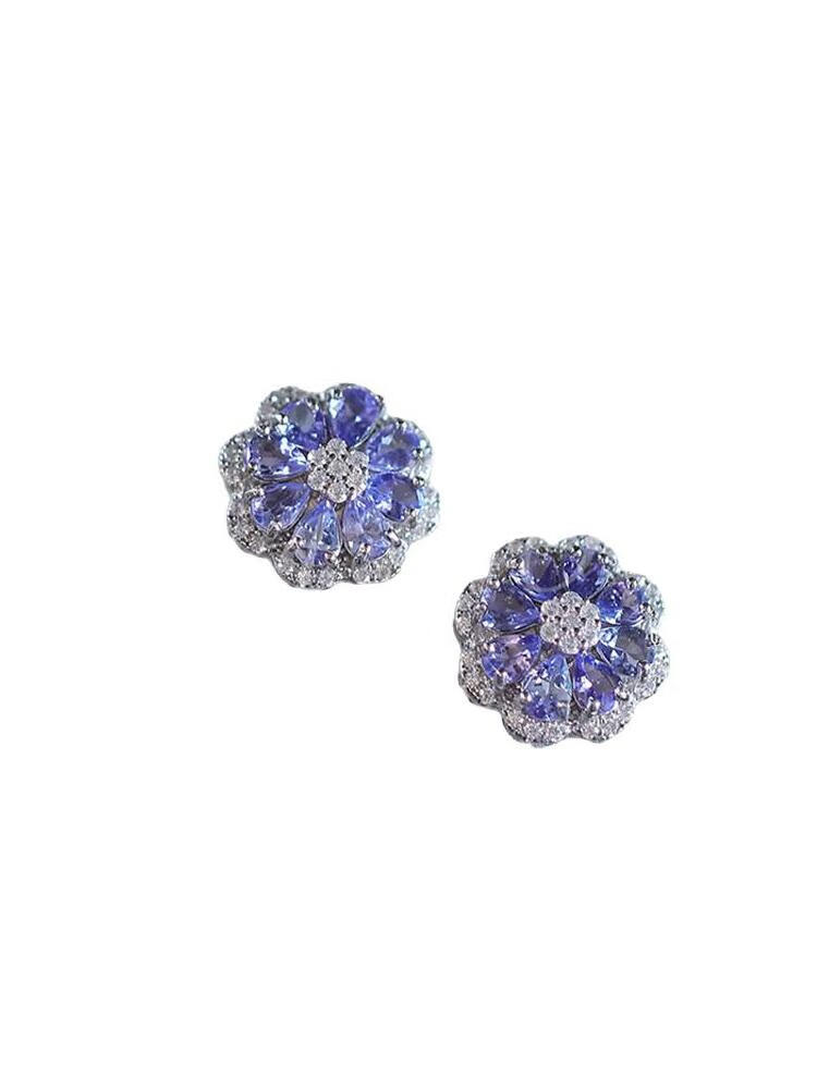 Fat Donglai's same model of tanzanite earrings, natural women's s925 silver inlaid with colored gemstones, amethyst flowers, atmospheric and cool tanzanite s925 silver earrings, white gold pair + white ear plugs