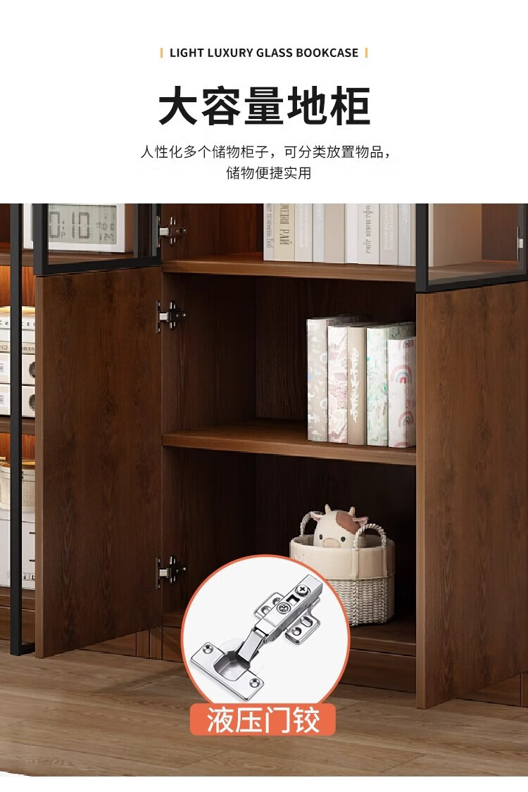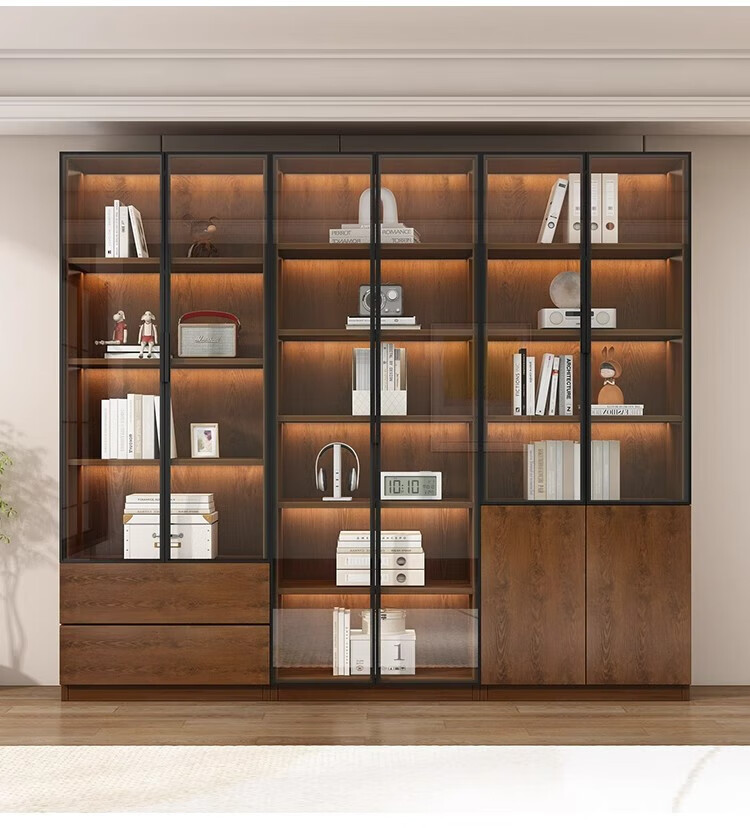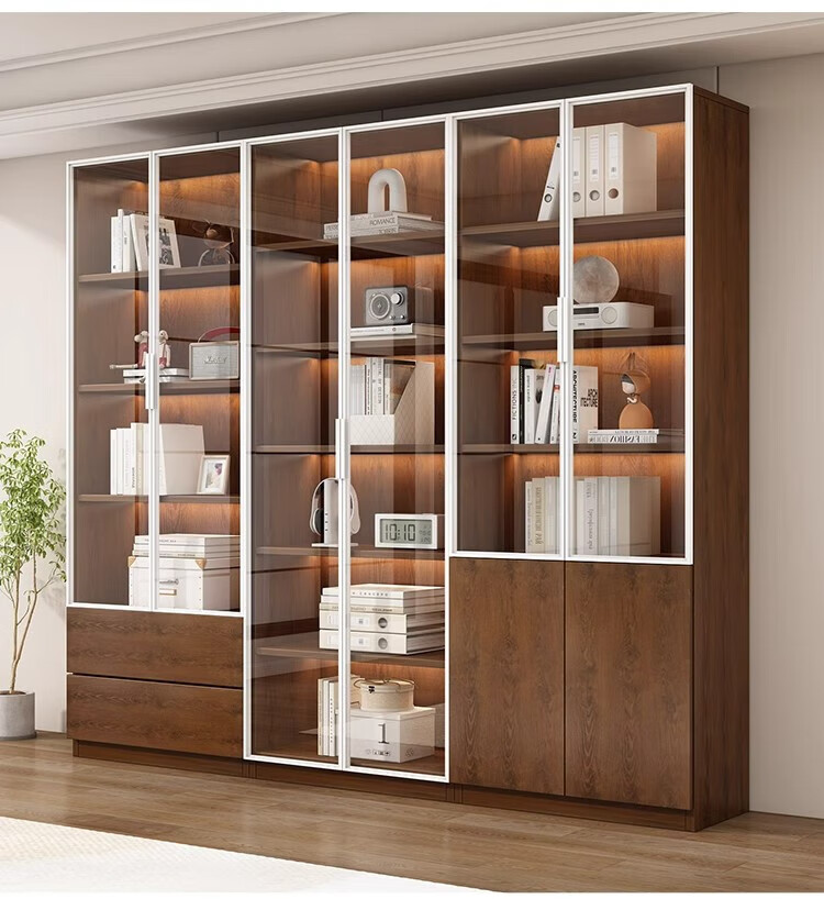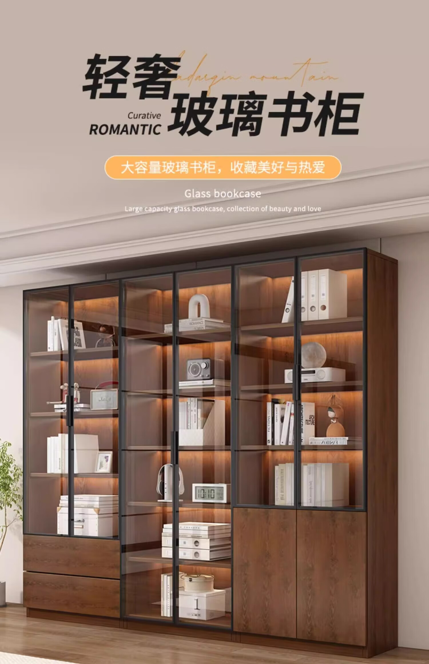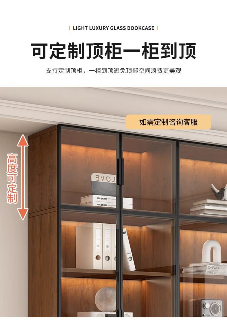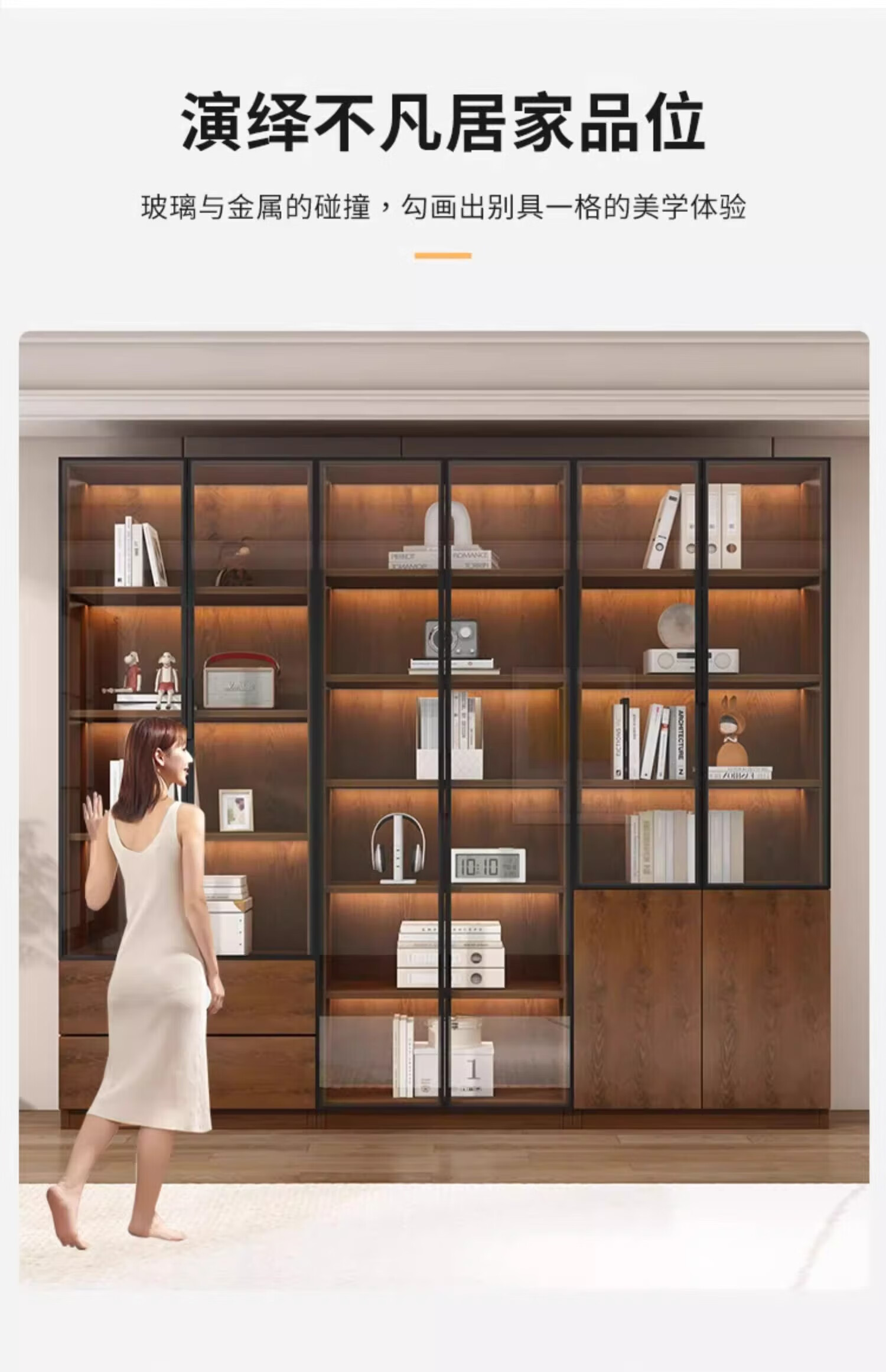 Melan bookcase with glass door display wine cabinet home living room hand-made integrated wall to top bookshelf solid wood walnut color 40 single door walnut color installation included standard version delivered to the home