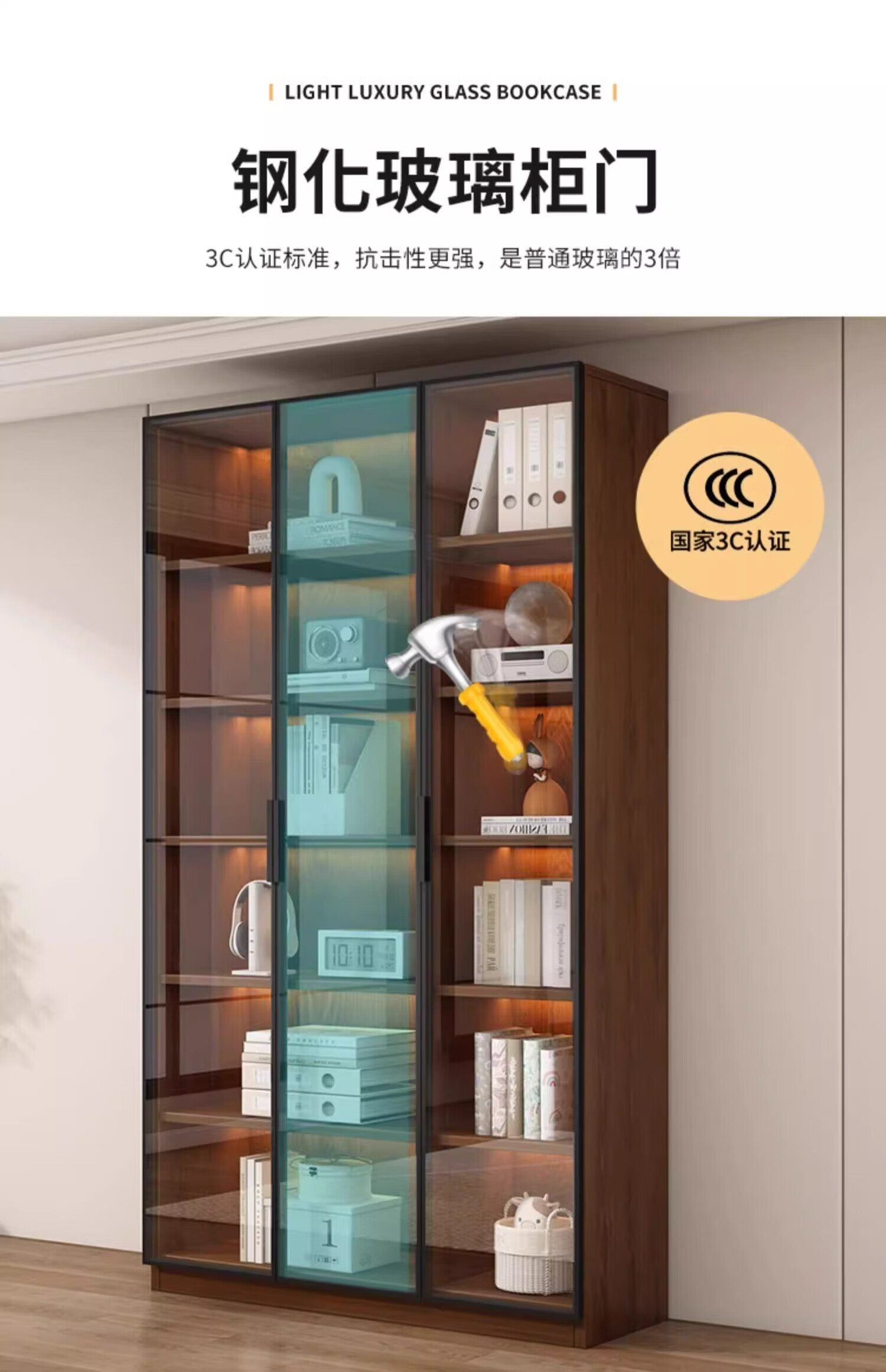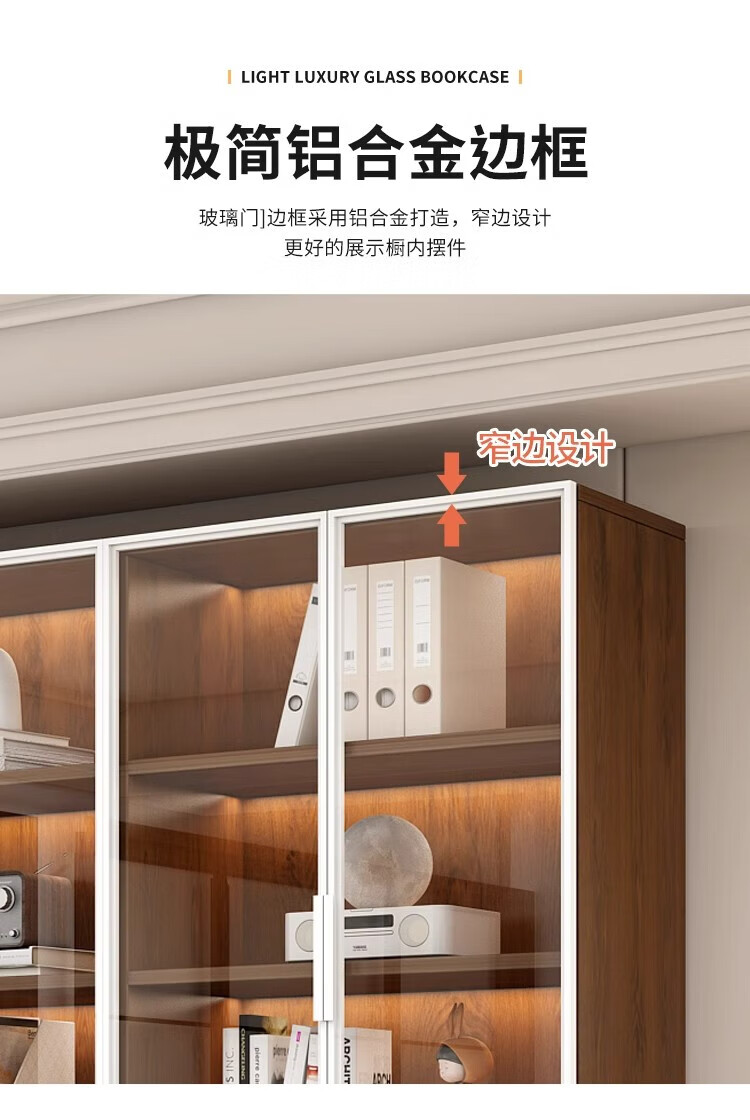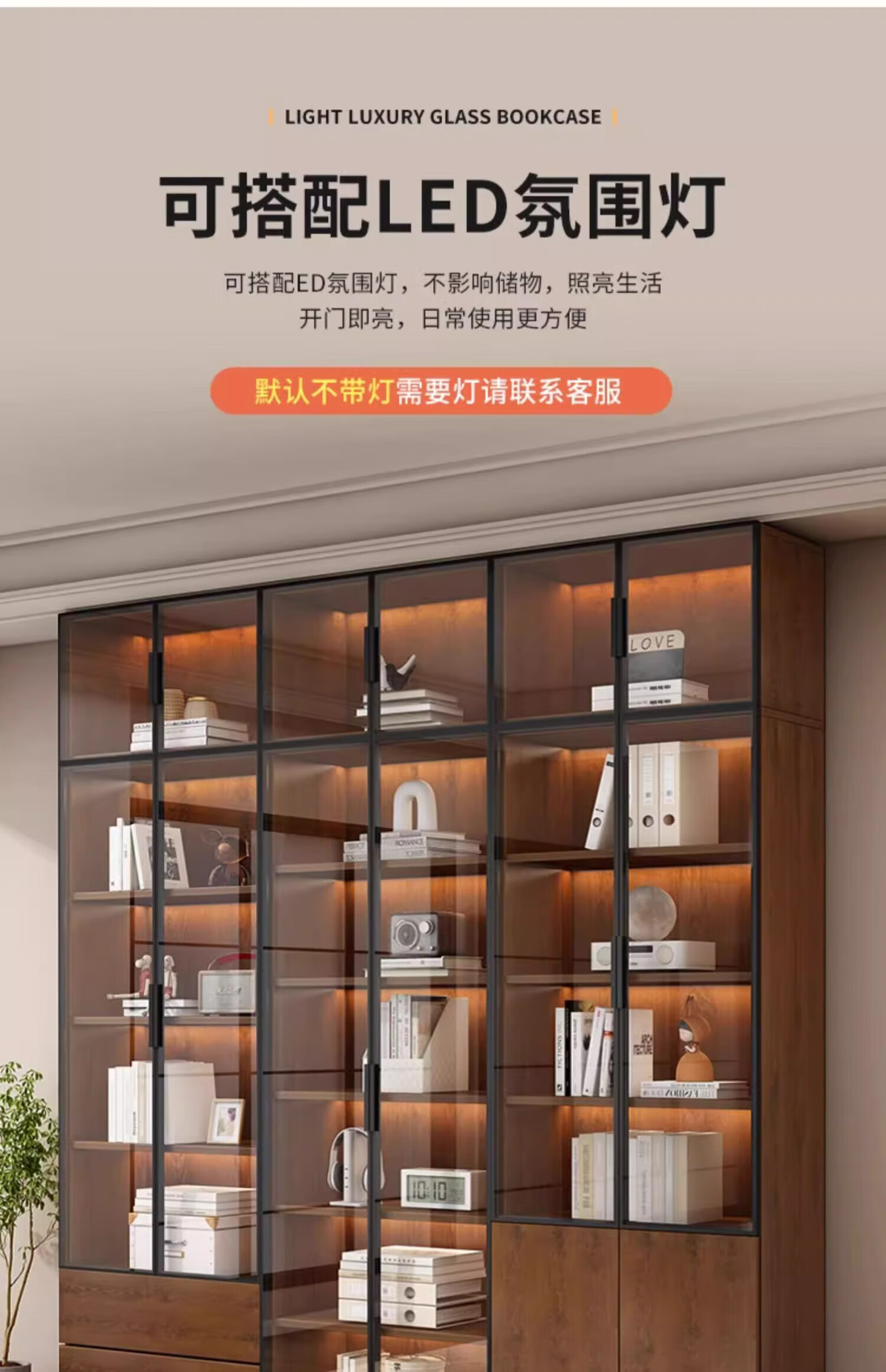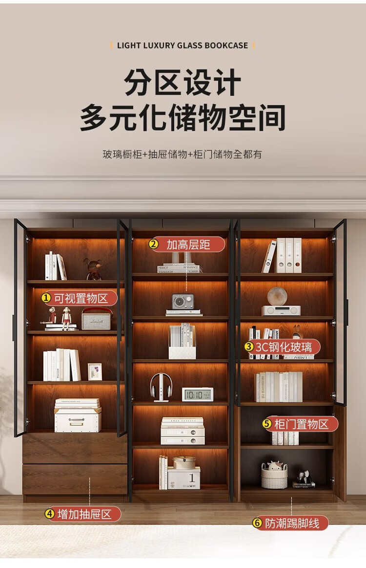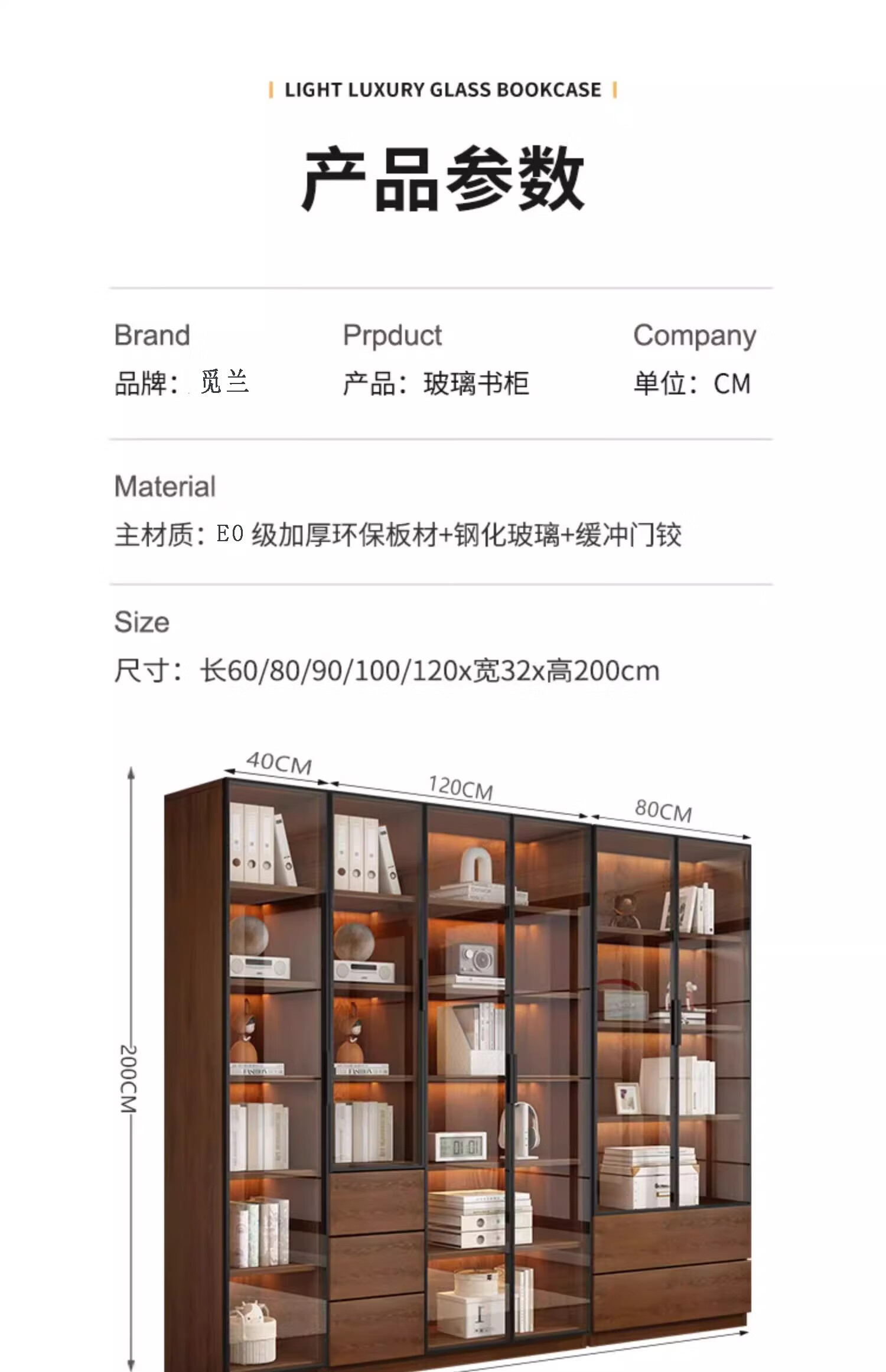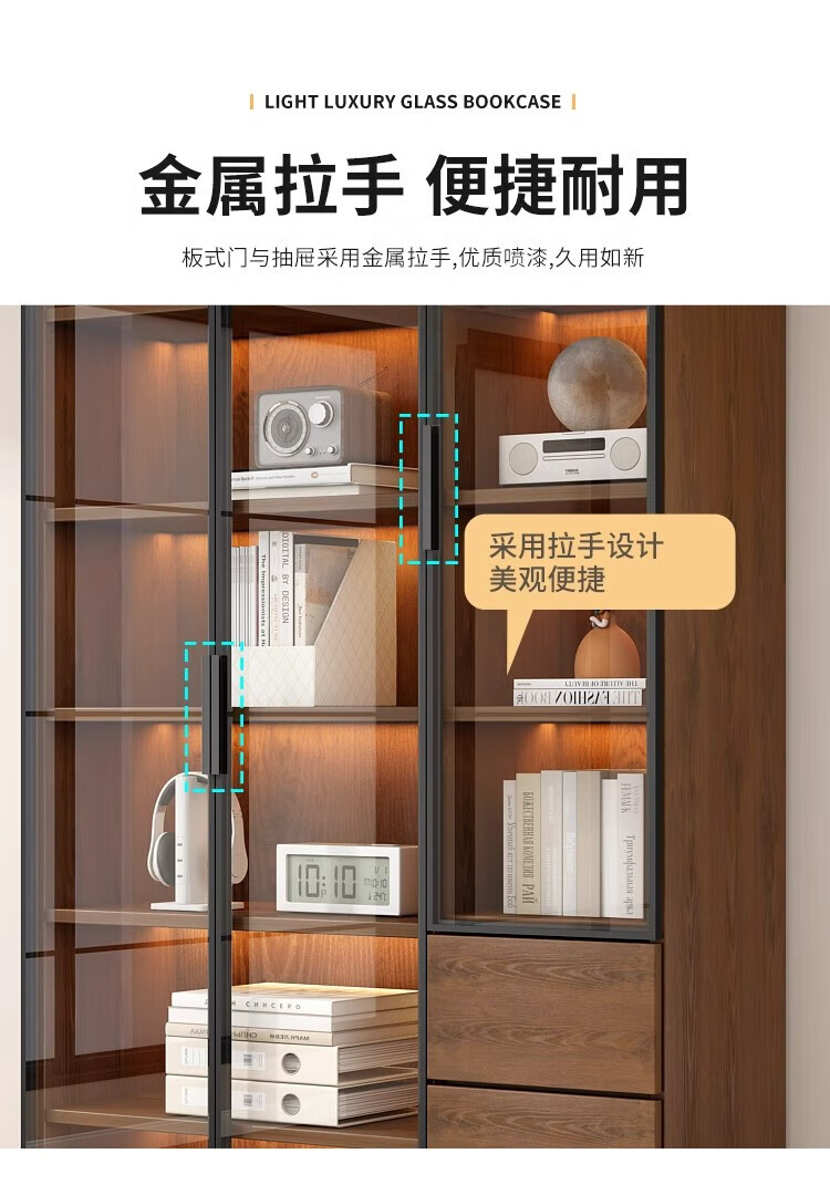 Melan bookcase with glass door display wine cabinet home living room hand-made integrated wall to top bookshelf solid wood walnut color 40 single door walnut color installation included standard version delivered to the home
