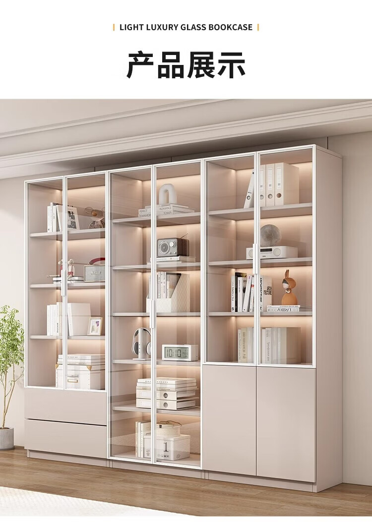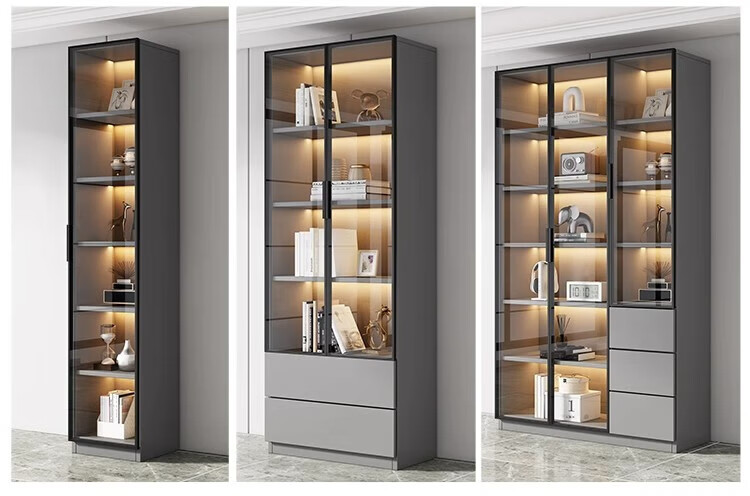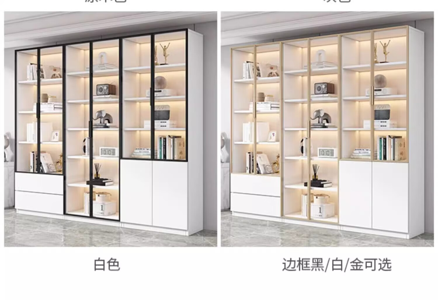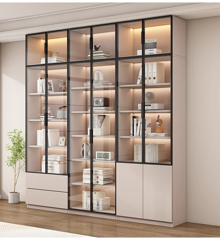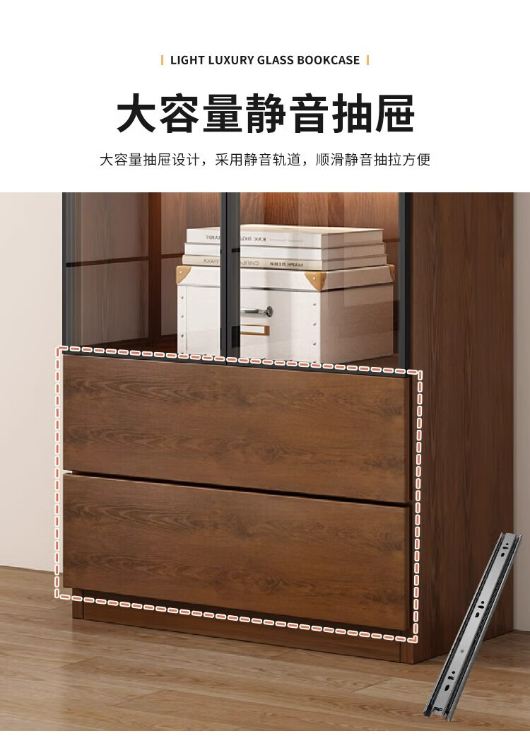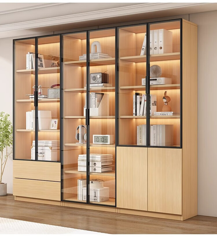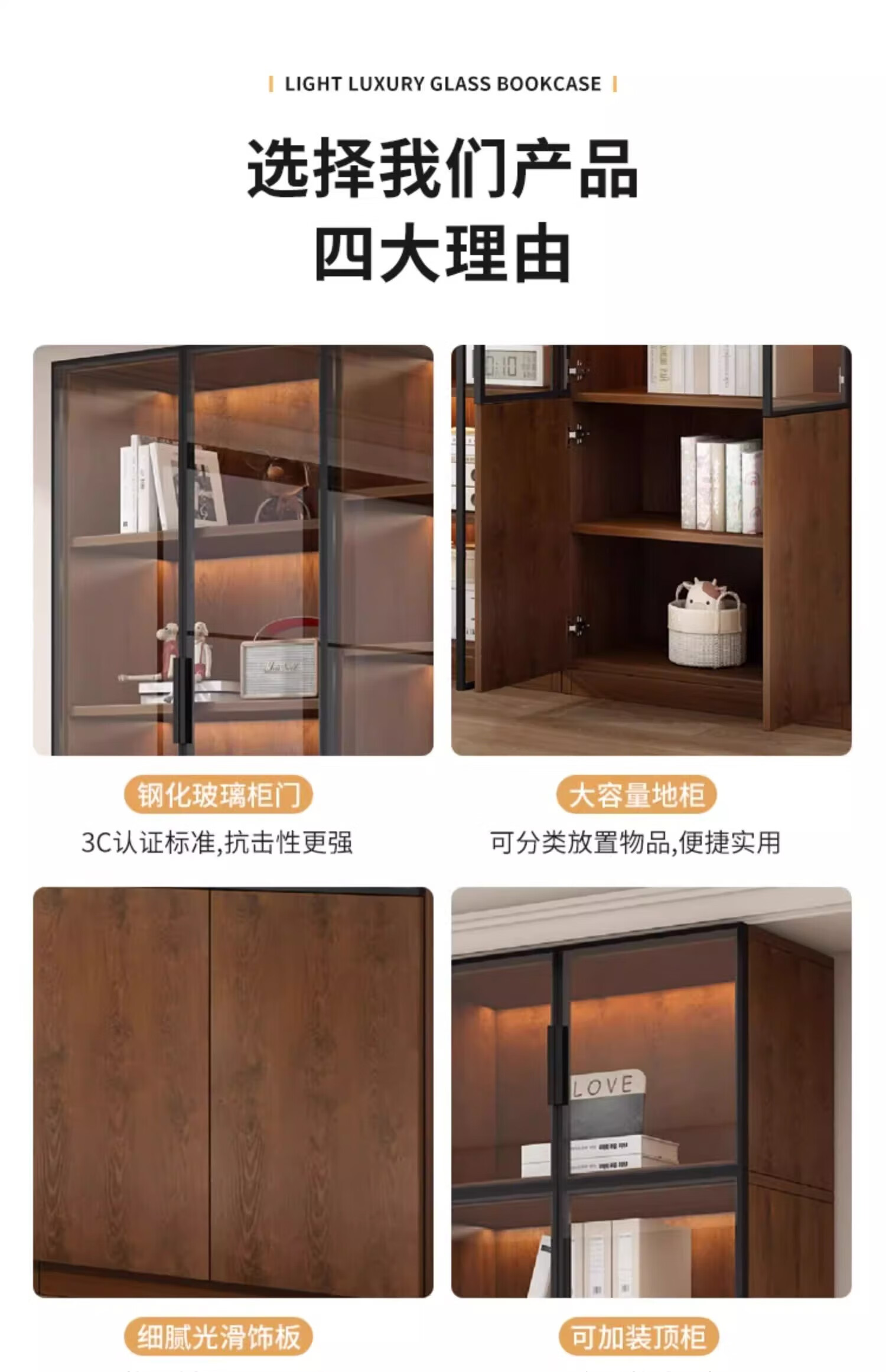 Melan bookcase with glass door display wine cabinet home living room hand-made integrated wall to top bookshelf solid wood walnut color 40 single door walnut color installation included standard version delivered to the home