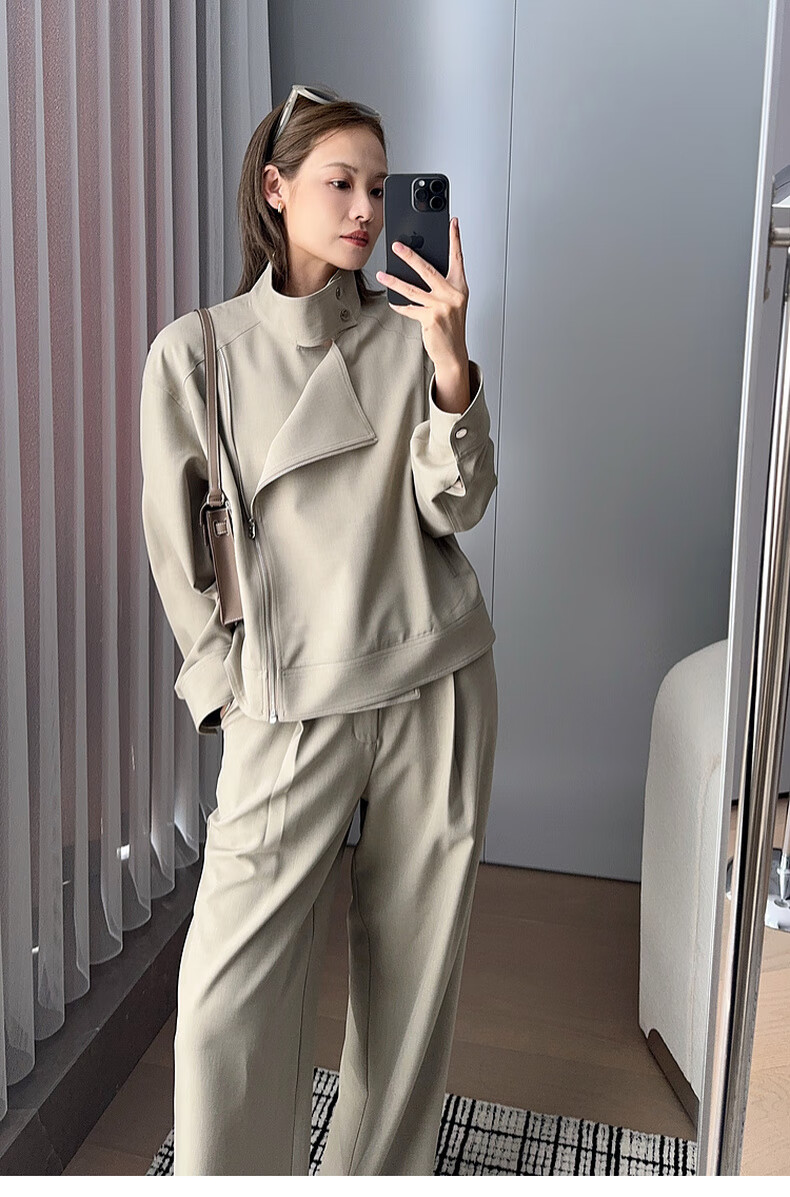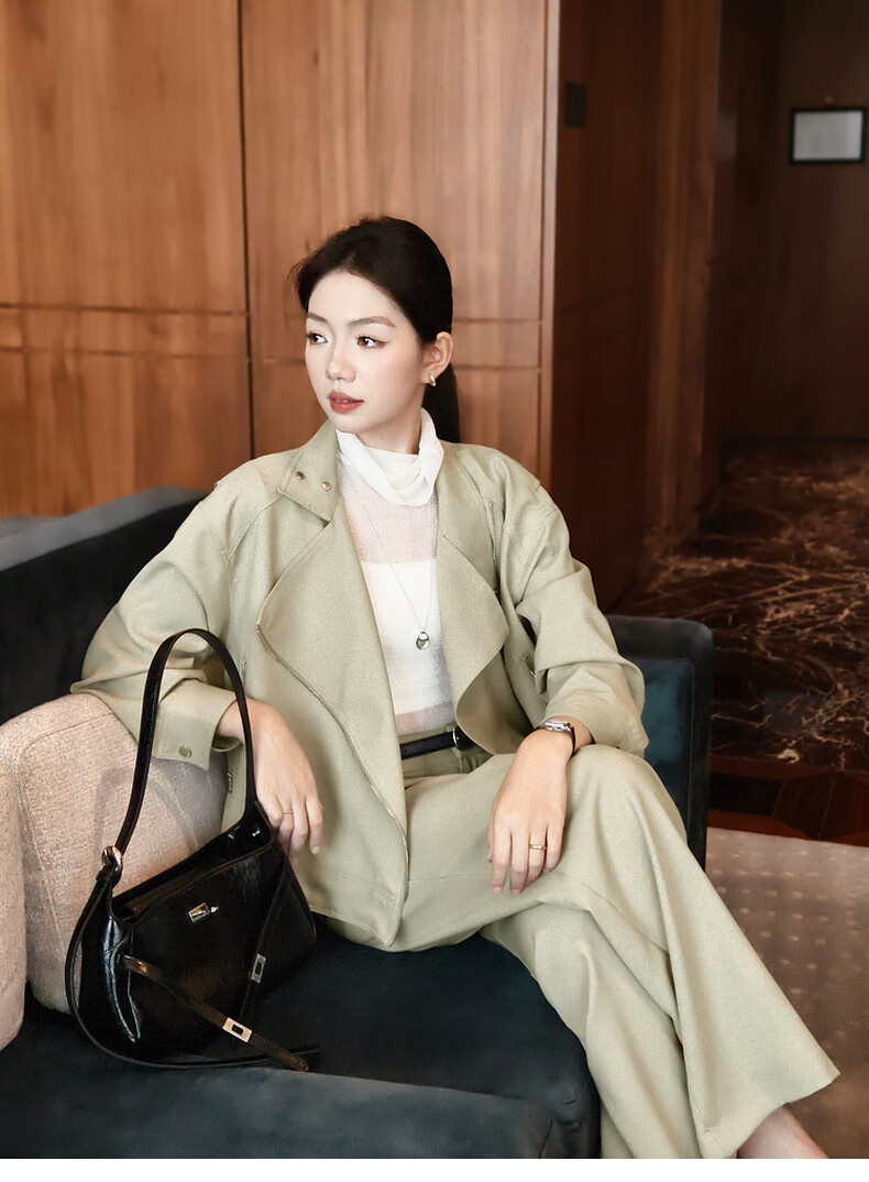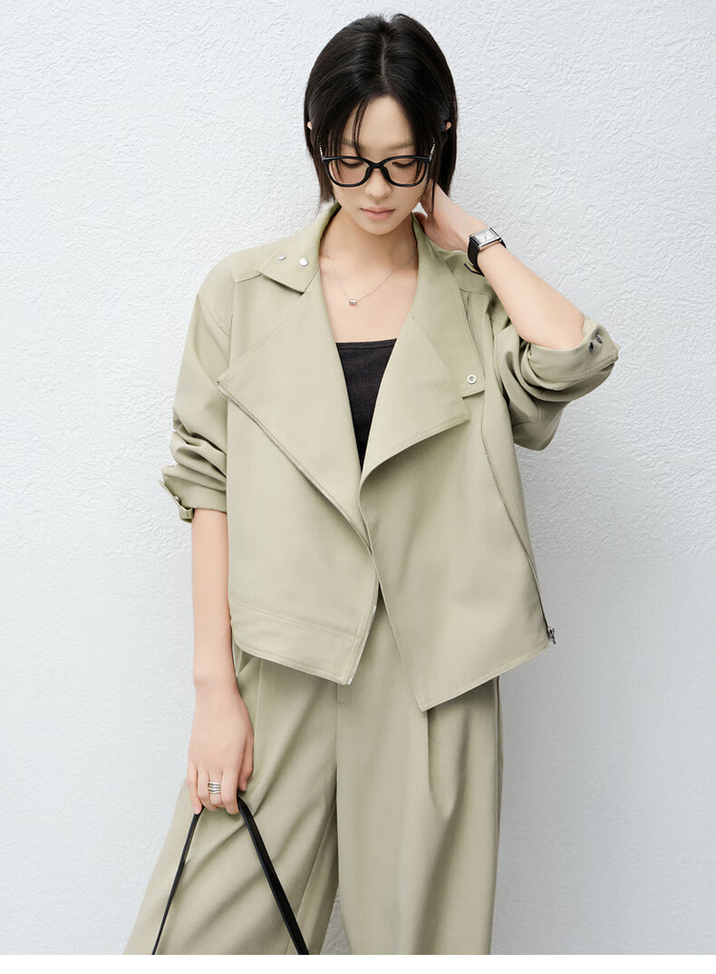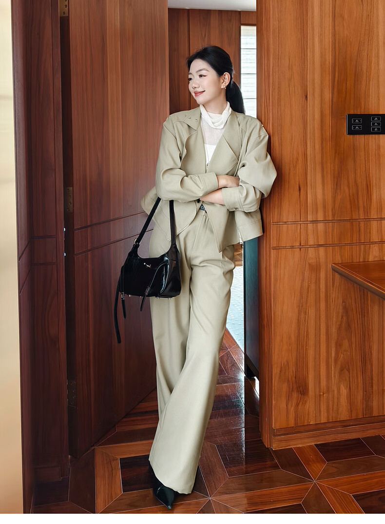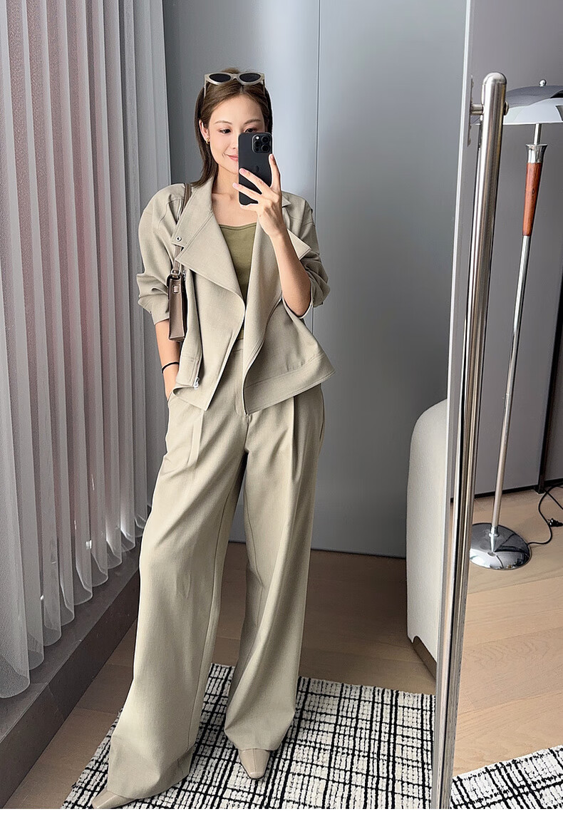 MEIYANG Melbourne No. 6 Suit Hemp texture commuting casual lapel jacket trousers cool temperament autumn new gray green (jacket + casual pants regular version) S