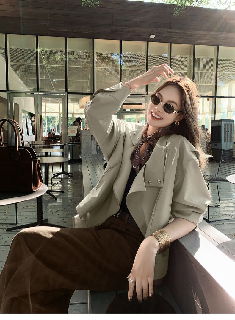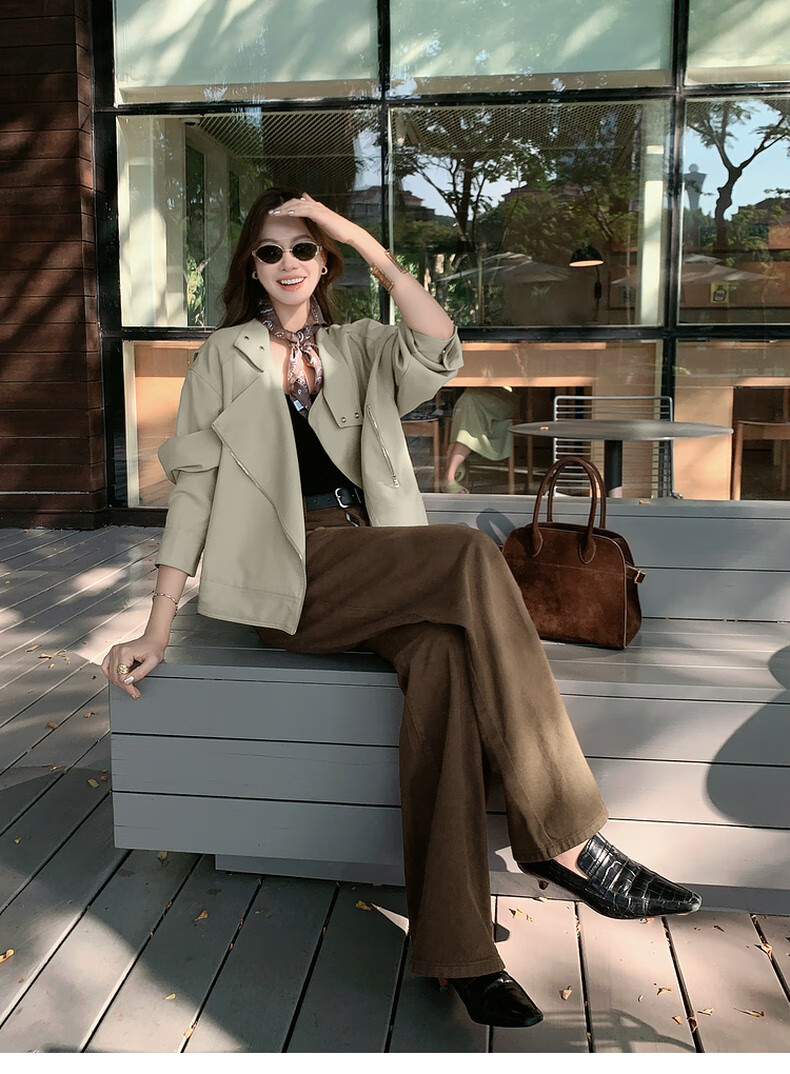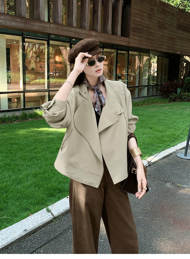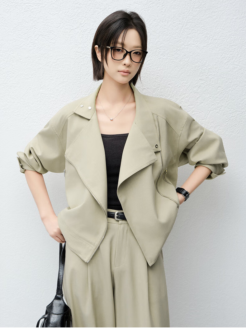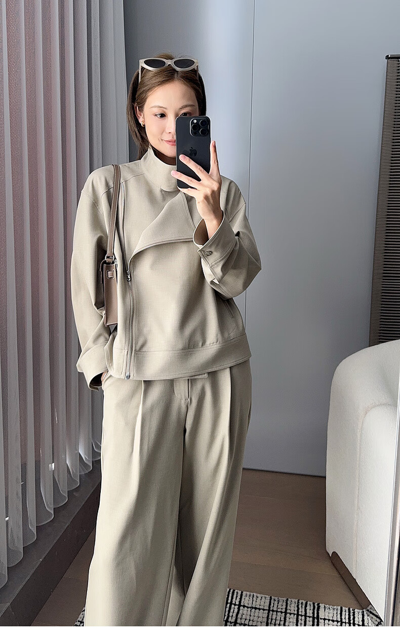 MEIYANG Melbourne No. 6 Suit Hemp texture commuting casual lapel jacket trousers cool temperament autumn new gray green (jacket + casual pants regular version) S