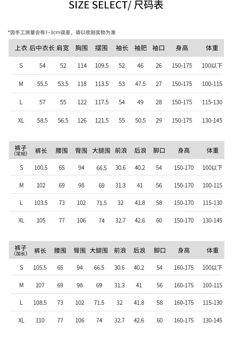 Outseam (cm) 99 cm 101.5 cm 104 cm 106.5 cm 109 cm
