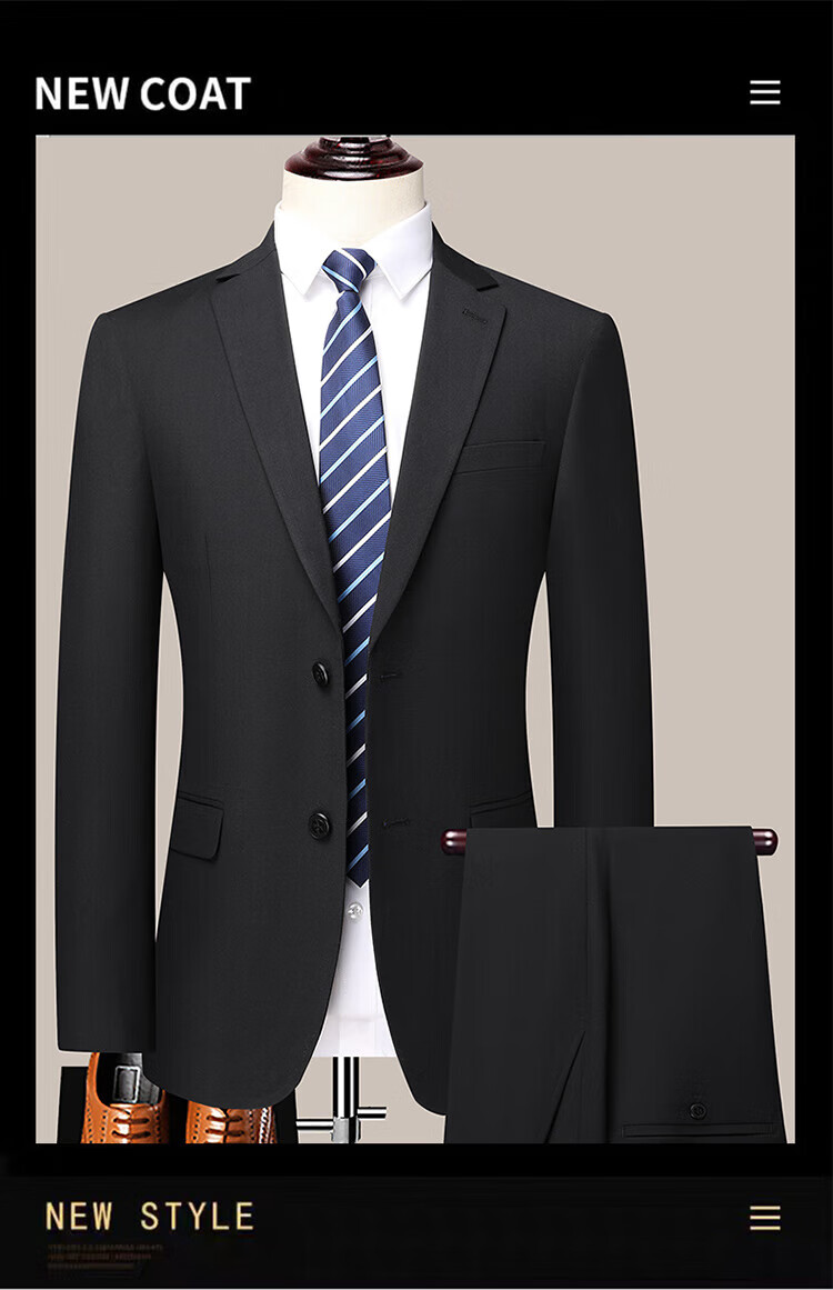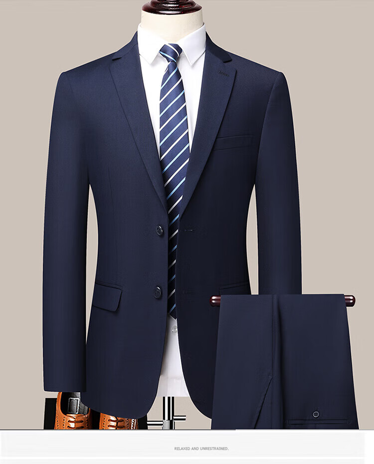 L Lilang's wool suit suit men's spring and autumn professional formal wear business casual banquet dress groom wedding navy blue 5XL 200