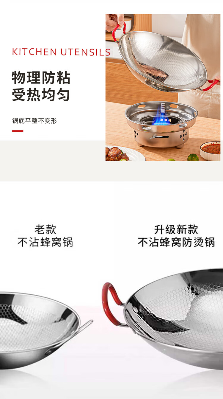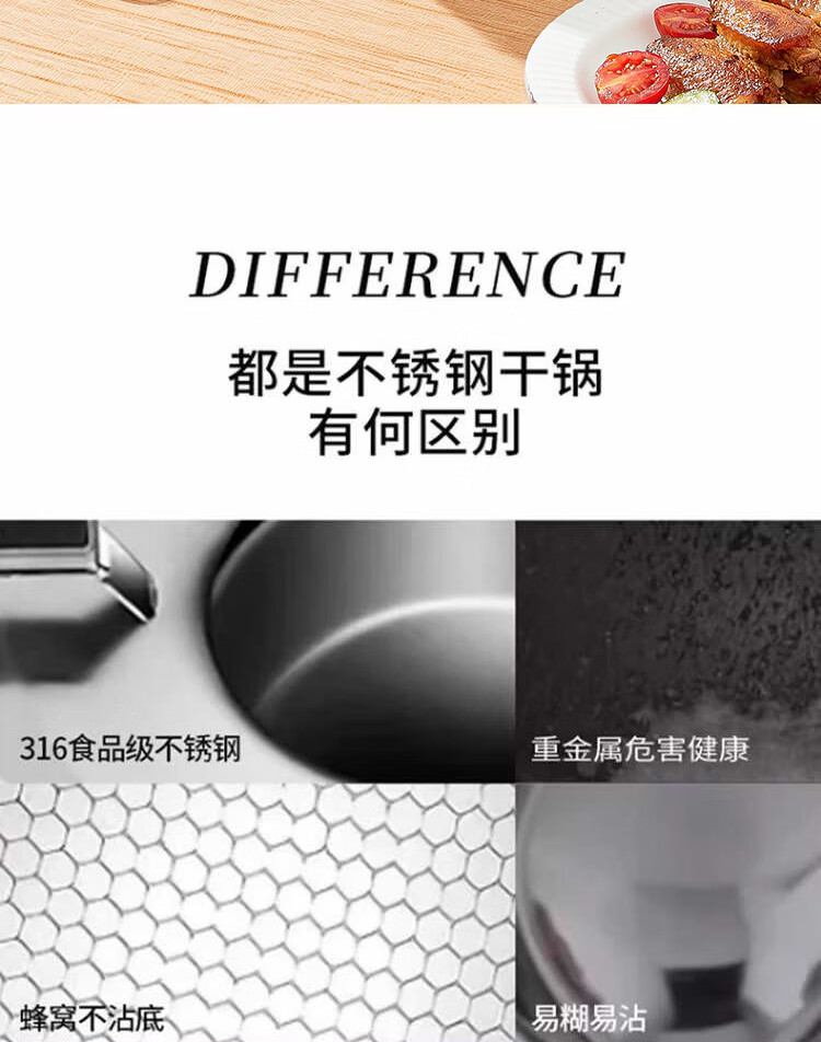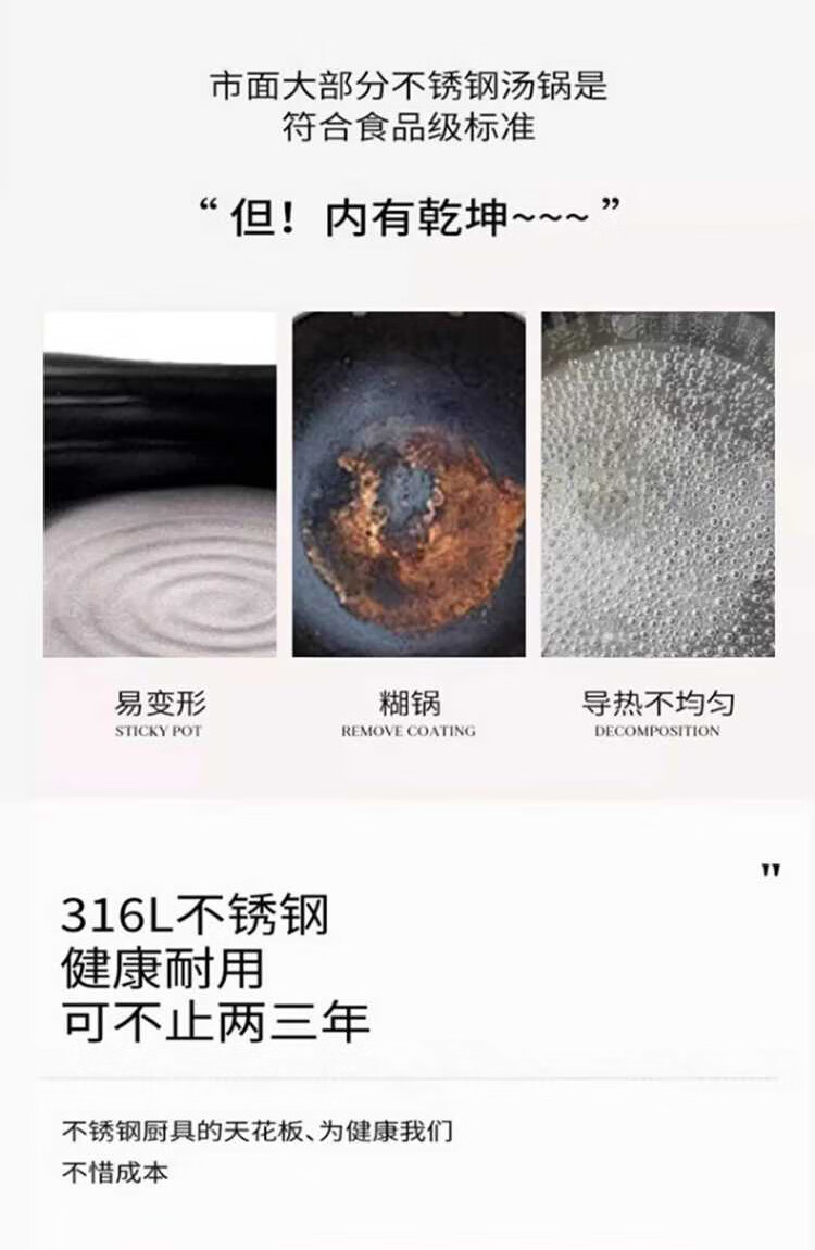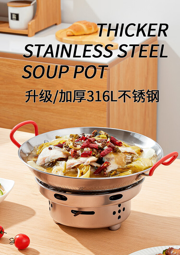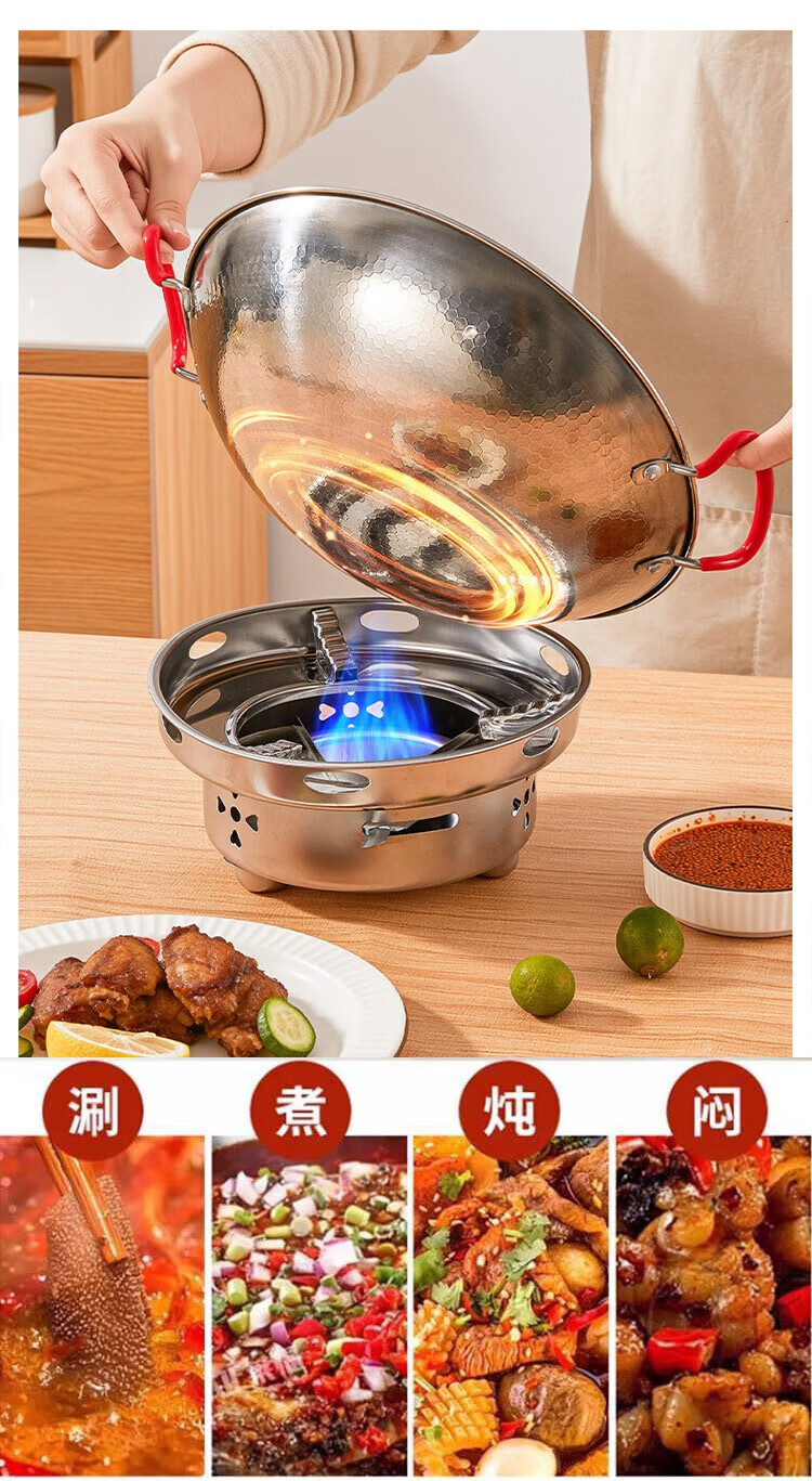 BAICHANG 316 stainless steel dry pot special pot household solid alcohol stove outdoor small hot pot pot set 3.0 upgrade set alcohol stove + anti-stick dry pot - with lid 10 inches