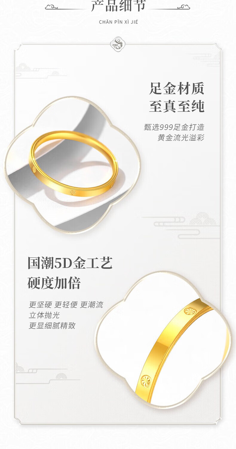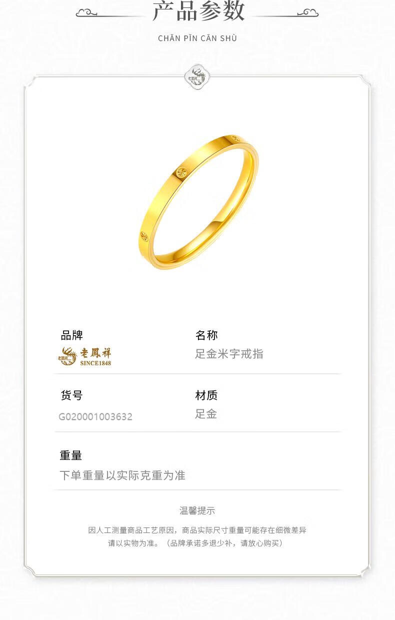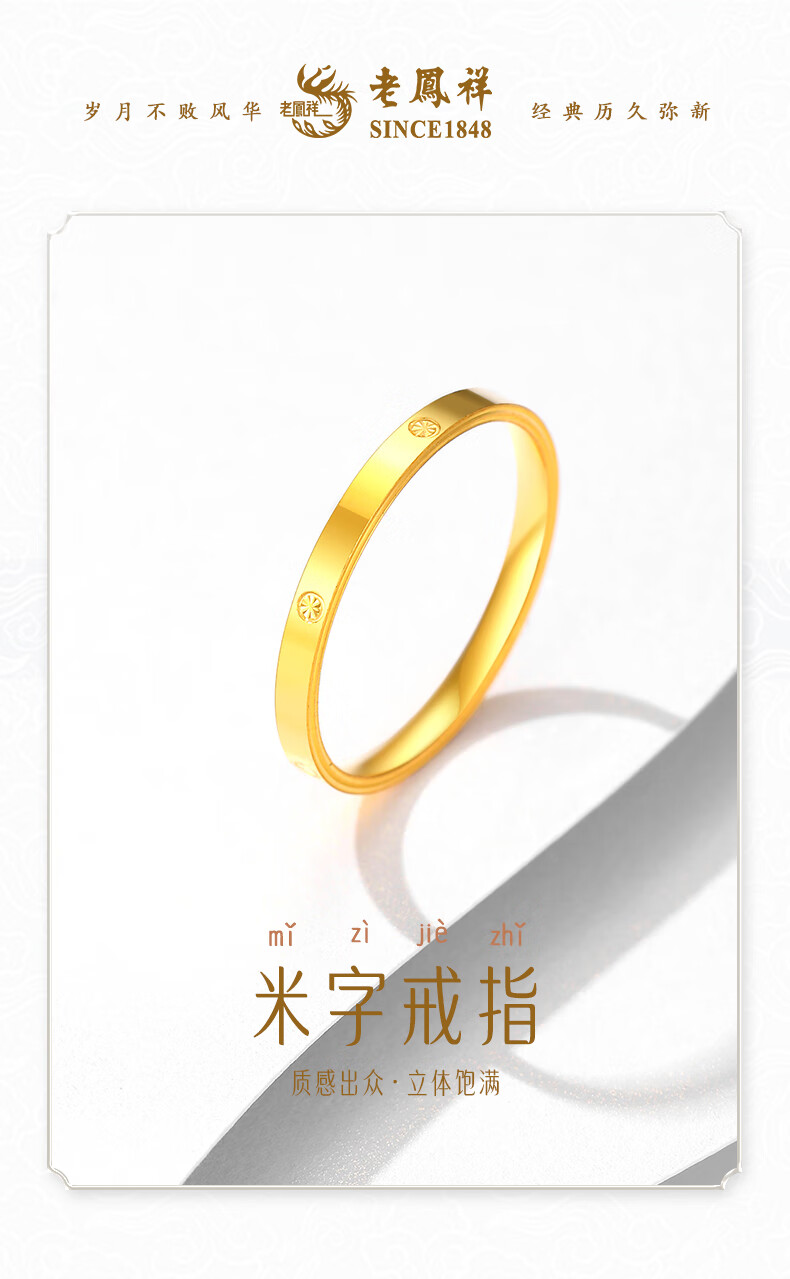 Lao Fengxiang gold ring, solid gold rice-shaped ring, pure gold ring for men and women, couple ring, Christmas birthday gift for boyfriend and girlfriend, pure gold rice-shaped ring, gold weight is about 1.1g, classic brand gift box, ring mouth 9