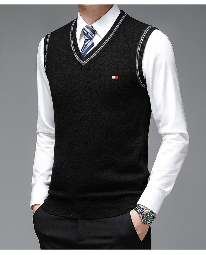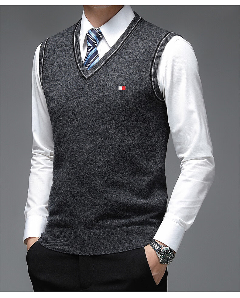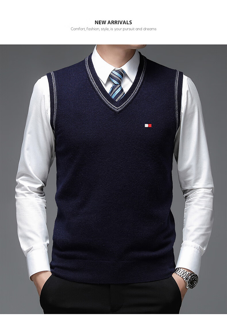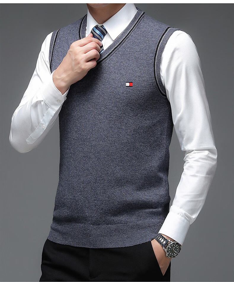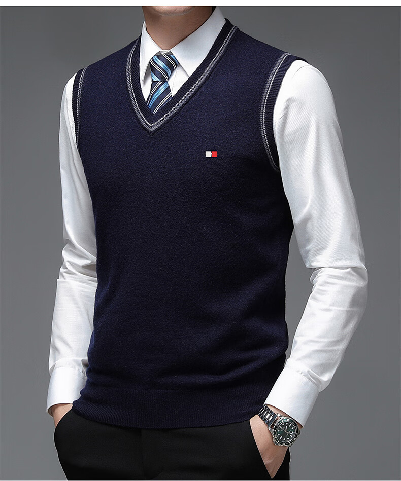 TOME BORNEK Tommy high-end men's vest autumn and winter new V-neck waistcoat pure wool vest business casual top Navy blue ready-made, counter quality M 165100-120Jin Jin equals 0.5 kg