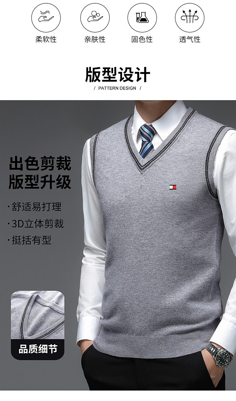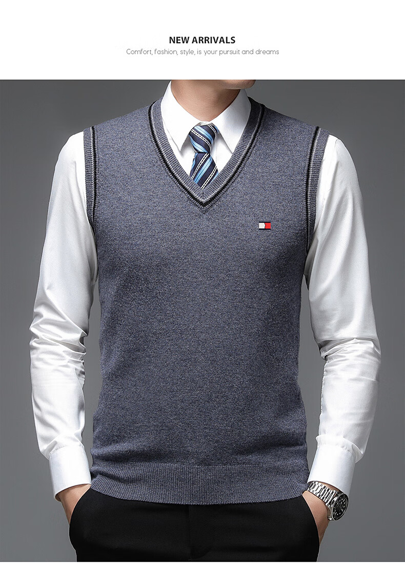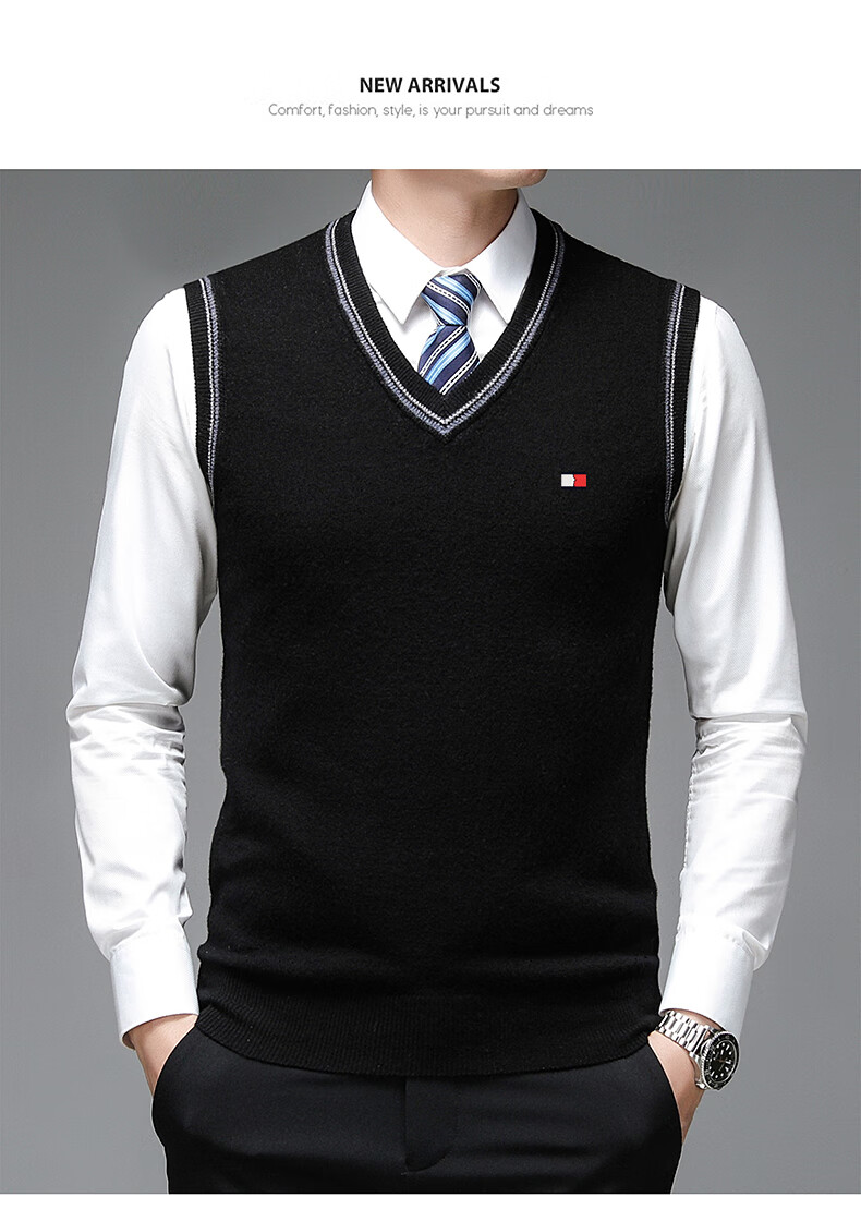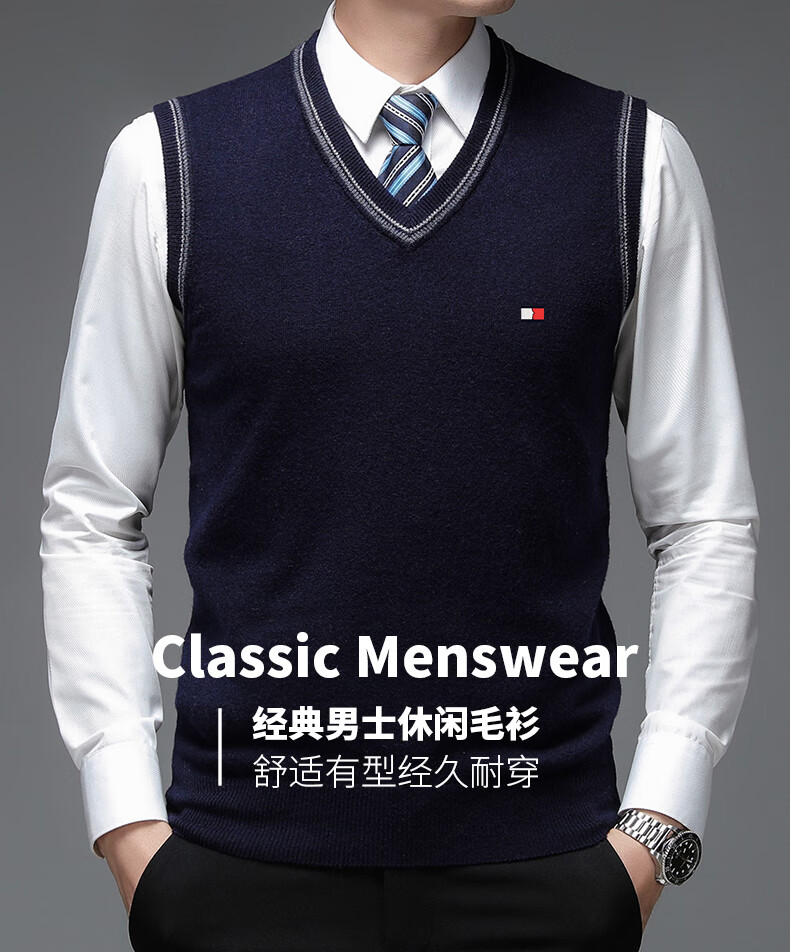 TOME BORNEK Tommy high-end men's vest autumn and winter new V-neck waistcoat pure wool vest business casual top Navy blue ready-made, counter quality M 165100-120Jin Jin equals 0.5 kg