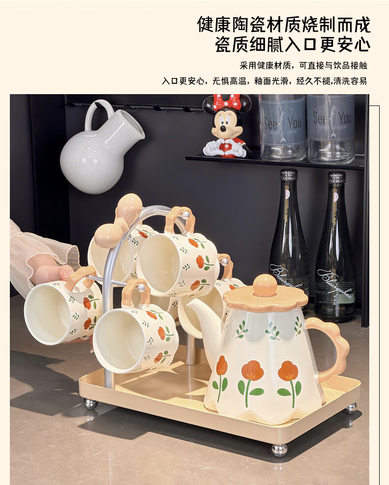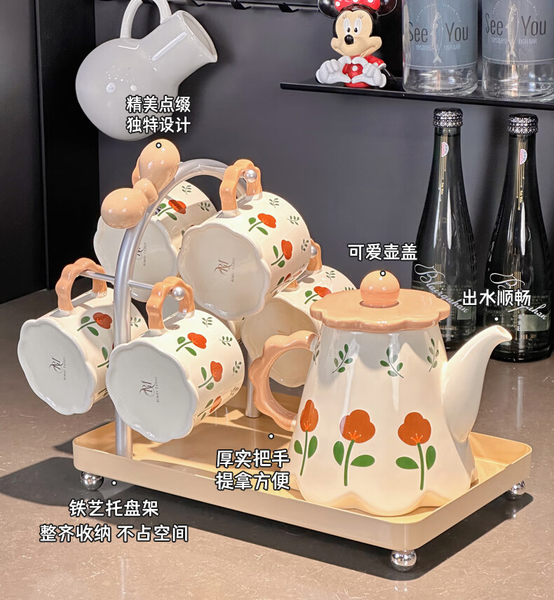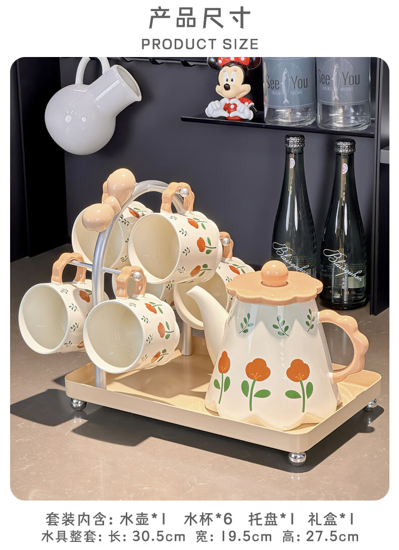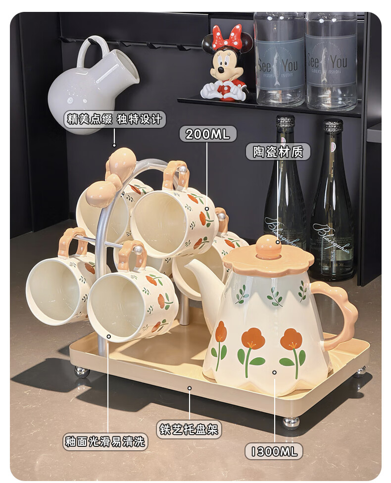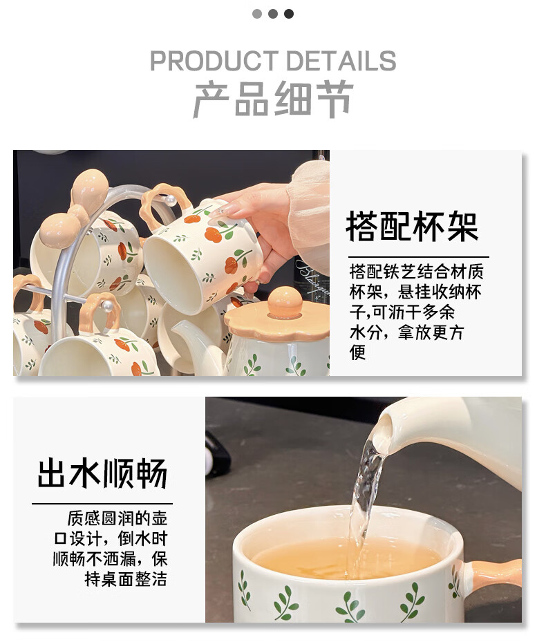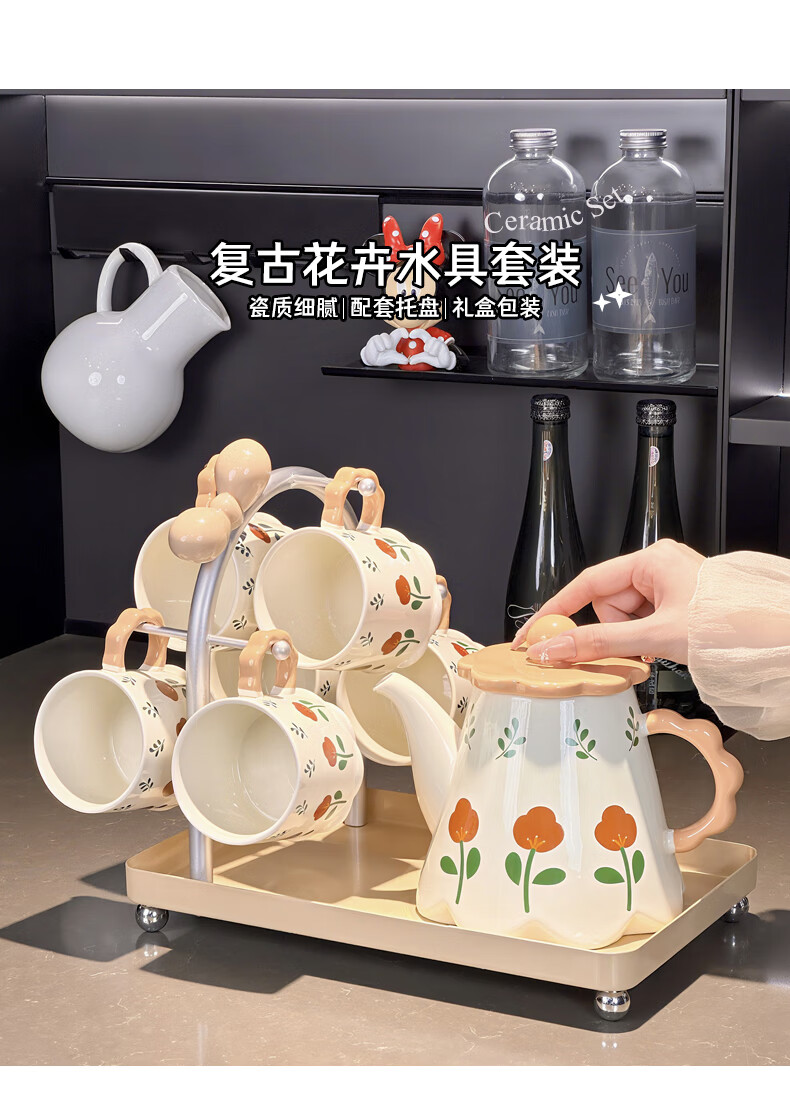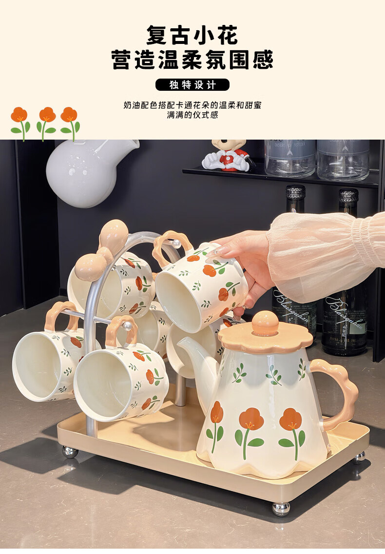 Xibaisheng housewarming gift practical high-end gift tea set home living room drinking cup wedding teapot tea cup complete set gift box tea set 8 pieces 1908
