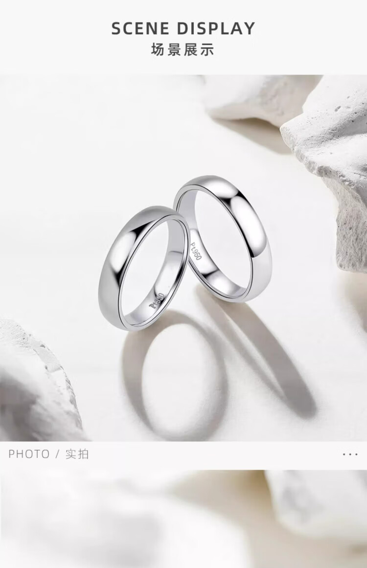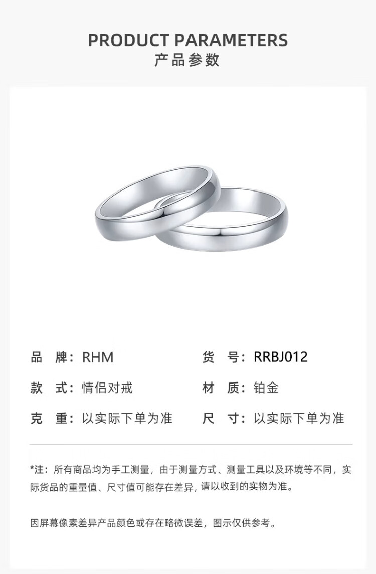 RHM plain ring platinum ring for men and women, platinum couple ring, glossy high-end sense, birthday and Valentine's Day gift for girlfriend, a pair of platinum couple rings + certificate + gift box