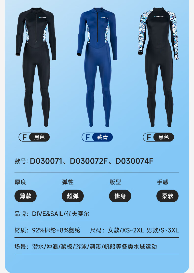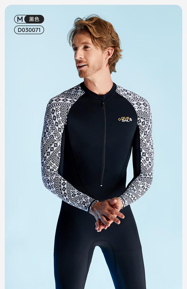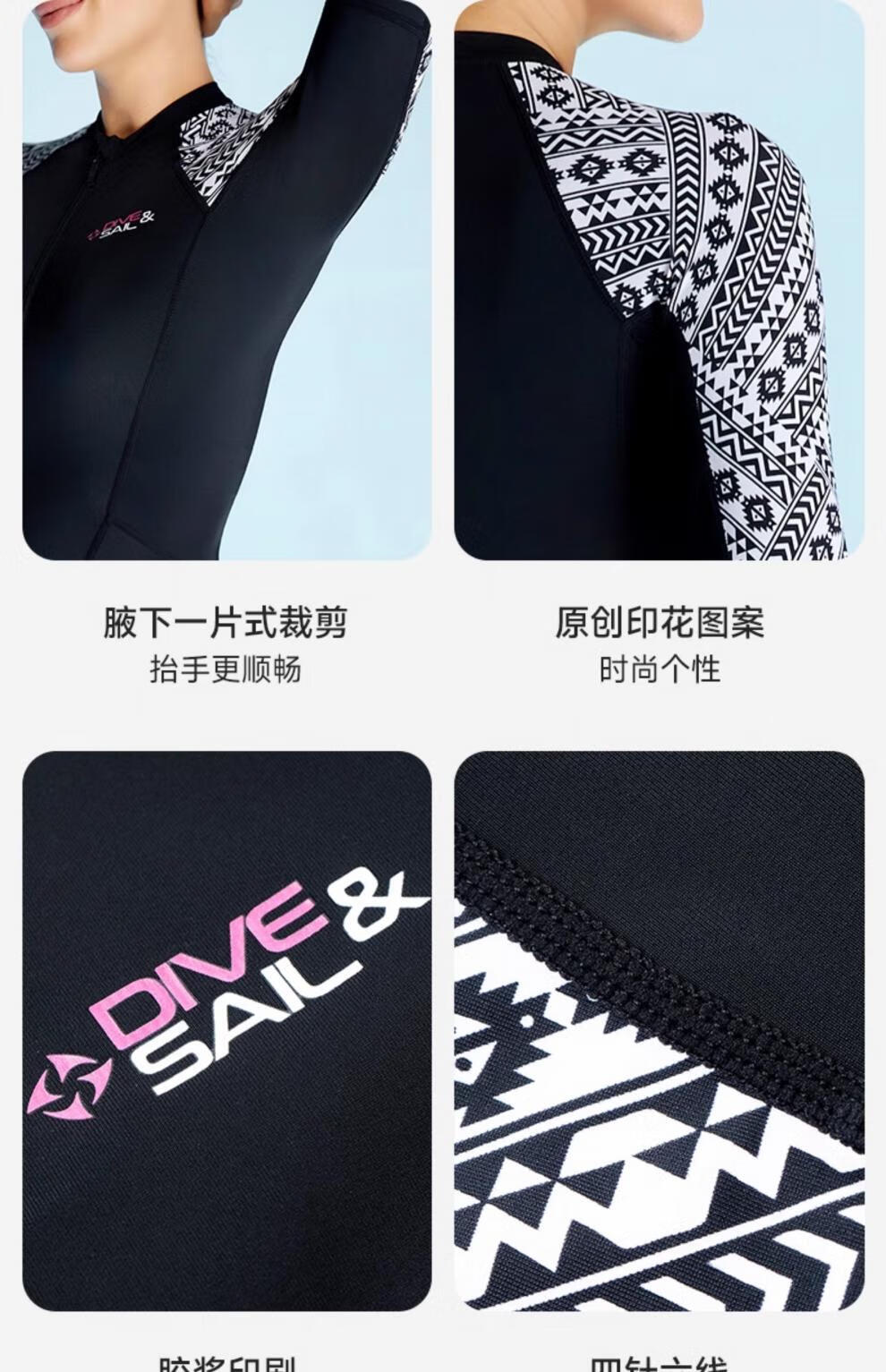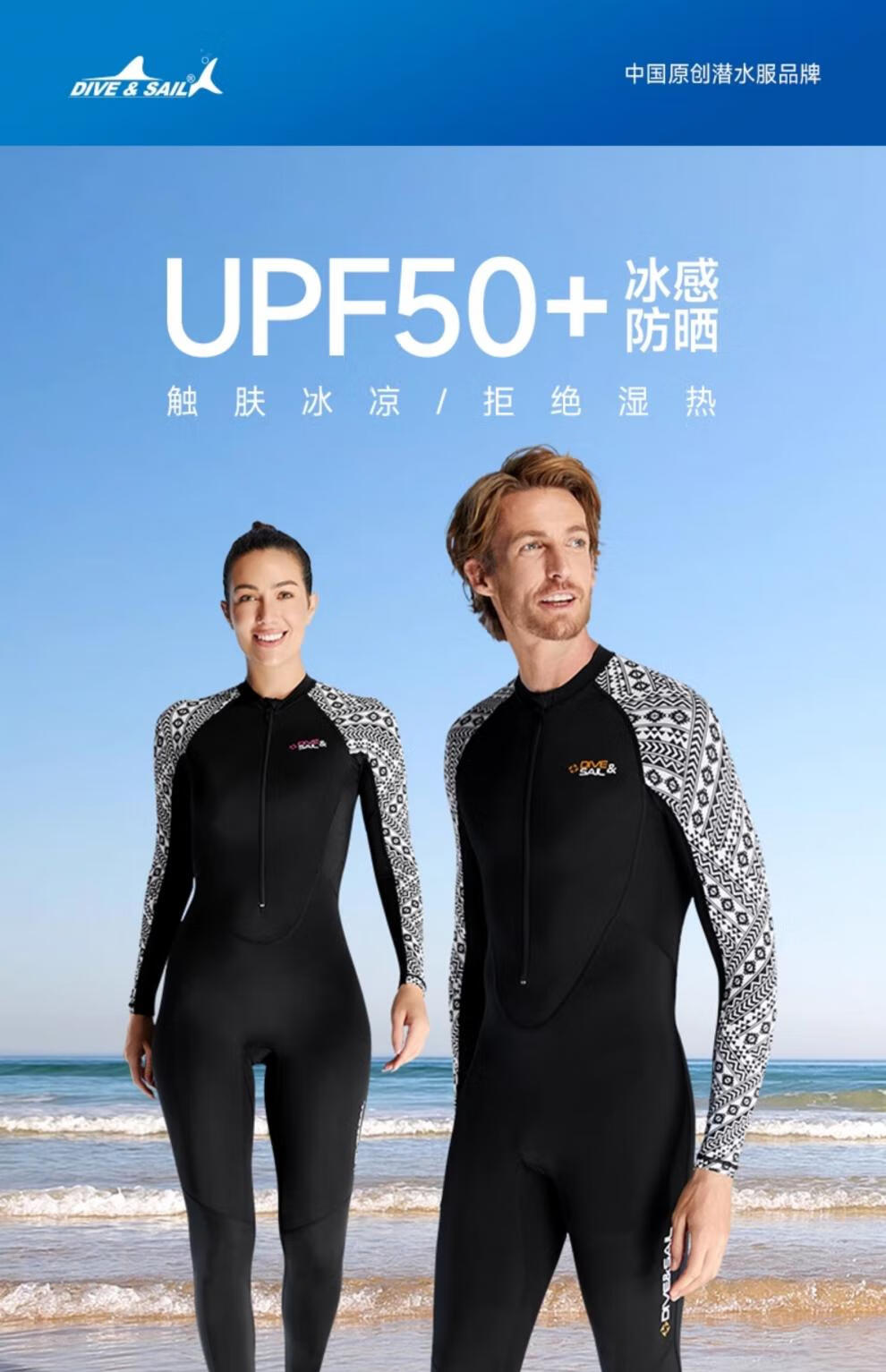 DIVE&SAIL swimsuit wetsuit for women one-piece sun protection surfing suit ice-feeling quick-drying couple snorkeling wetsuit for men 071 ice-feeling anti-sand quick-drying black cool body feeling XL