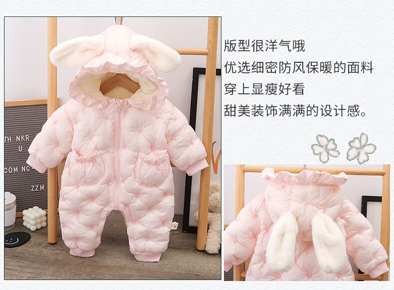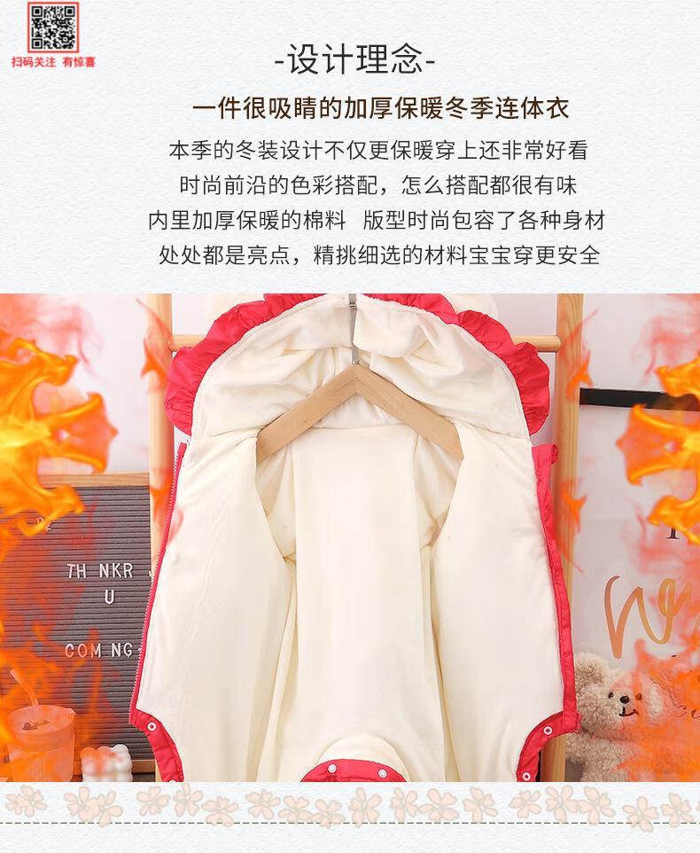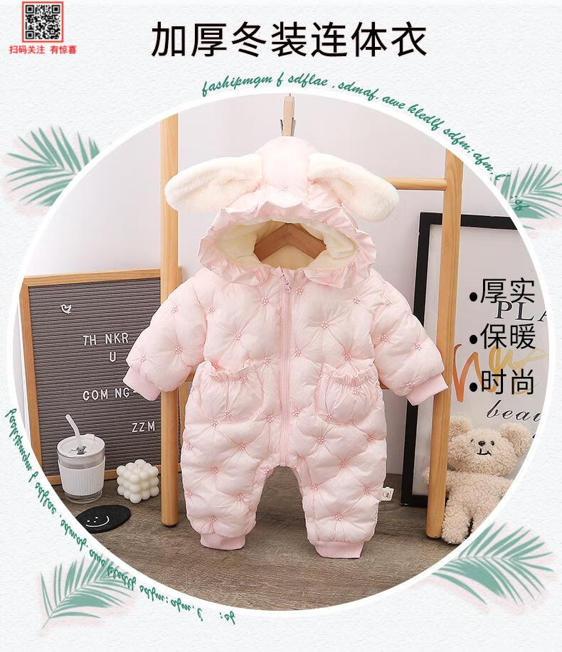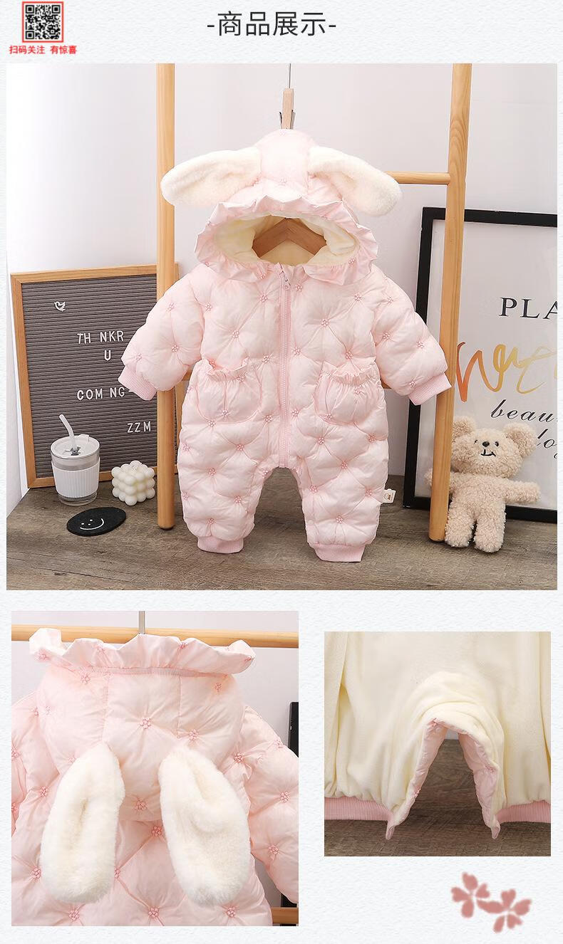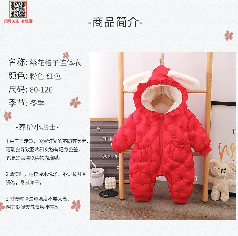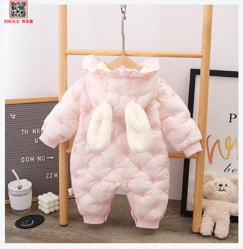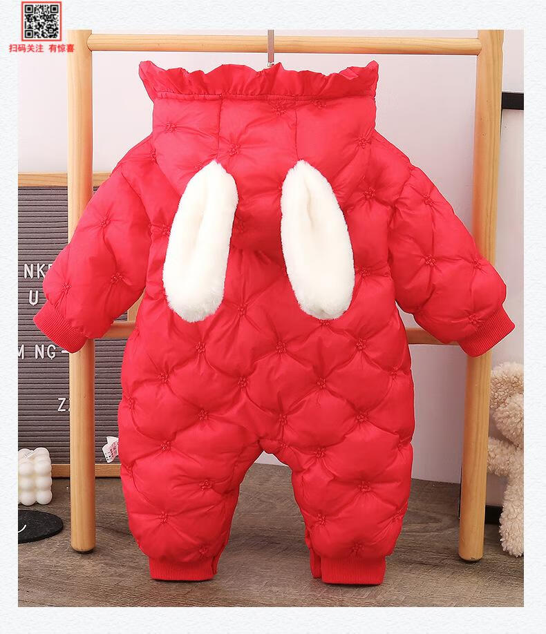 G.duck2025 new winter baby cotton jumpsuit winter clothing baby girl winter thickened romper baby winter outing clothing red 66cm