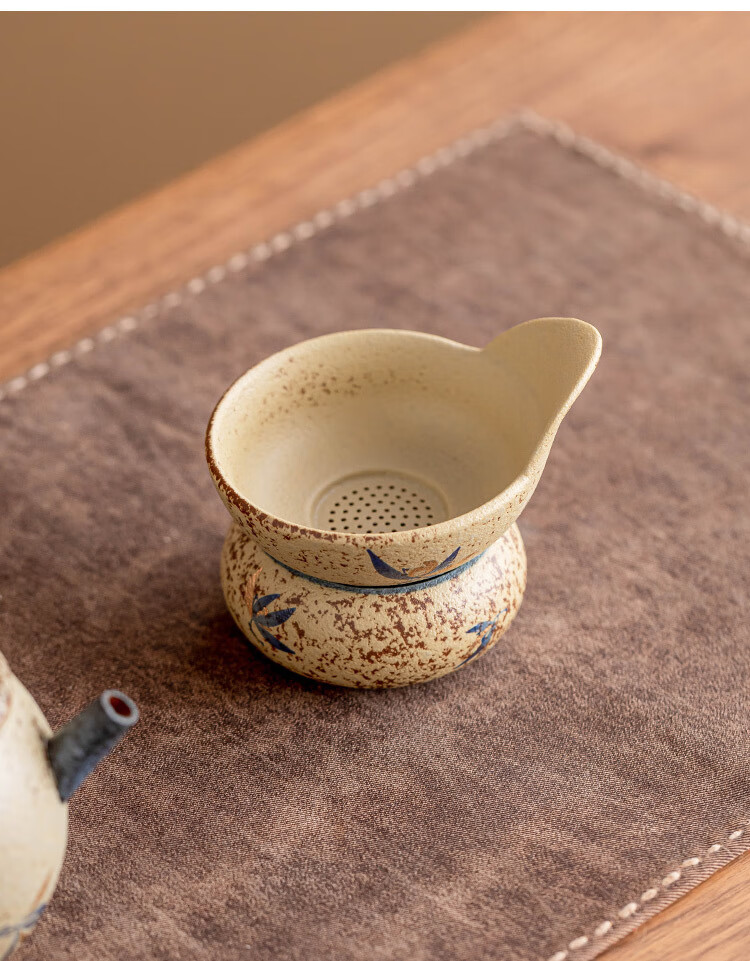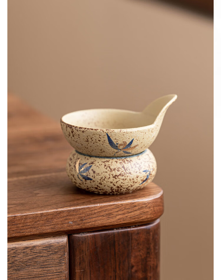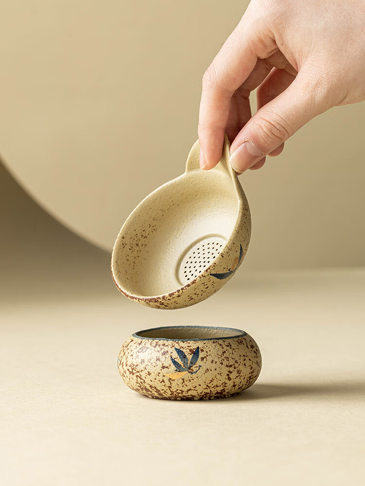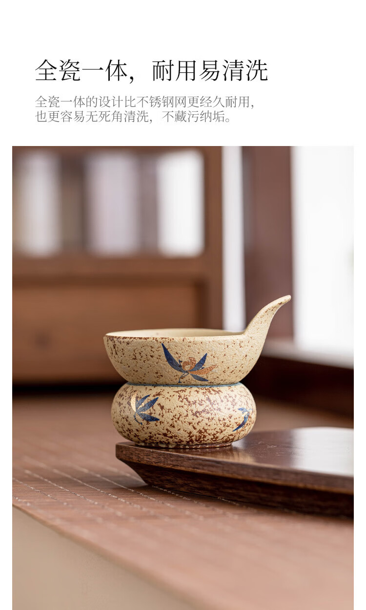 Jueyue blue and white flint tea filter group butterfly orchid tea leaking tea filter ceramic tea filter single tea warehouse blue and white flint red gold butterfly orchid_filter group + holding the moon fair cup