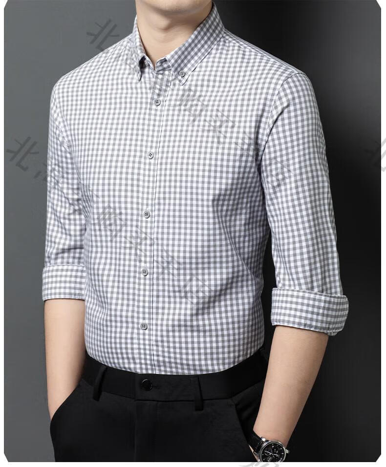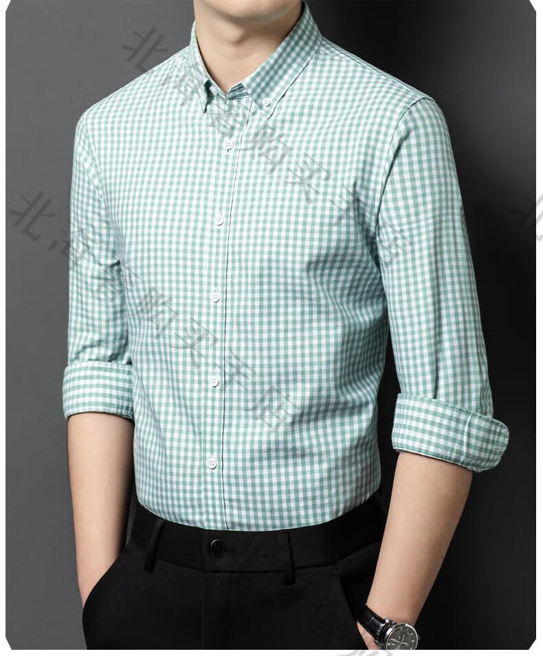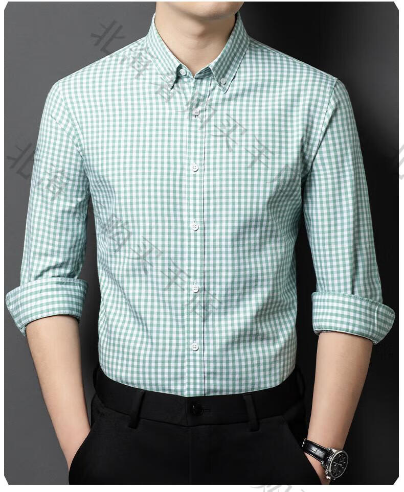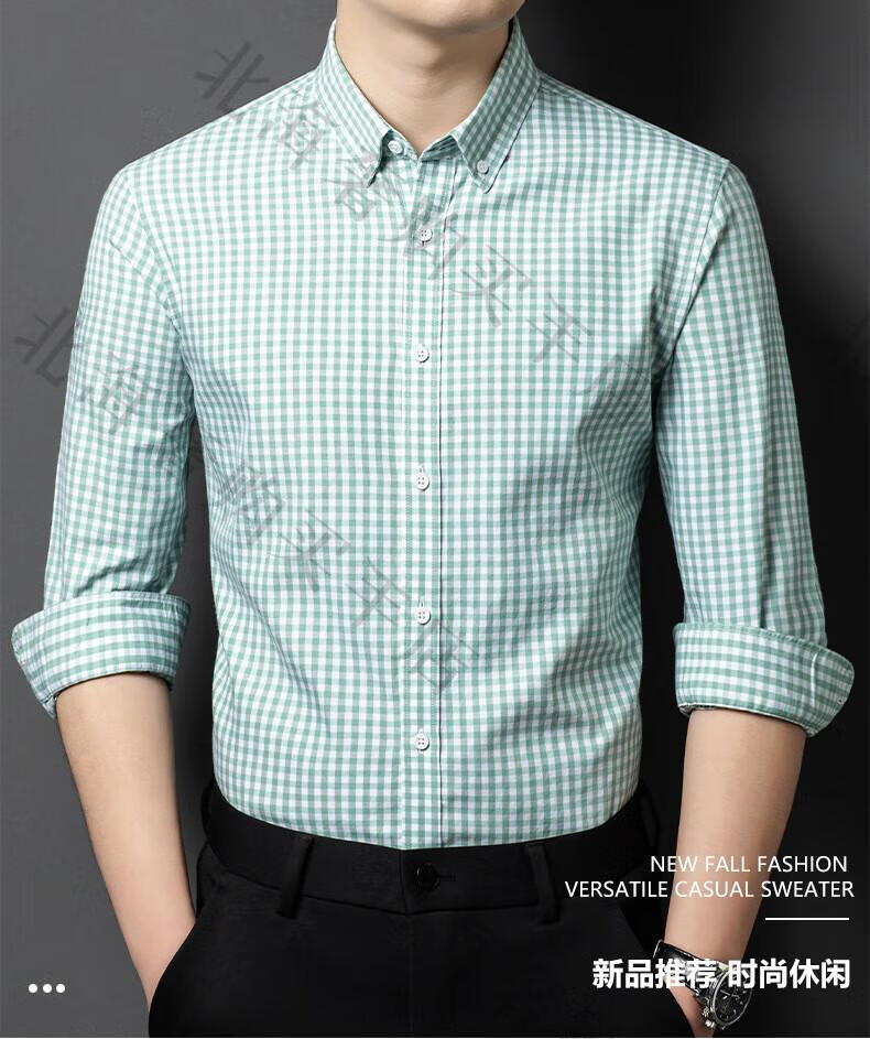 MAGIOPY luxury high-end brand men's spring and autumn new men's shirt long-sleeved plaid fashion casual thin versatile shirt green L 50