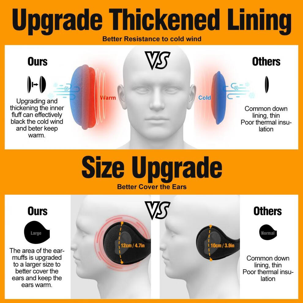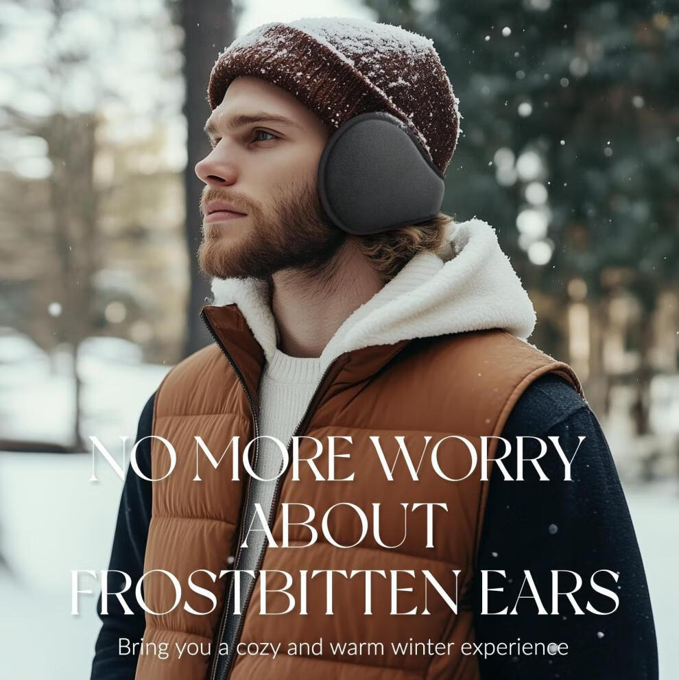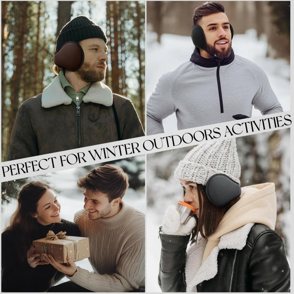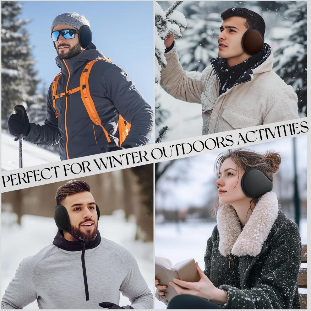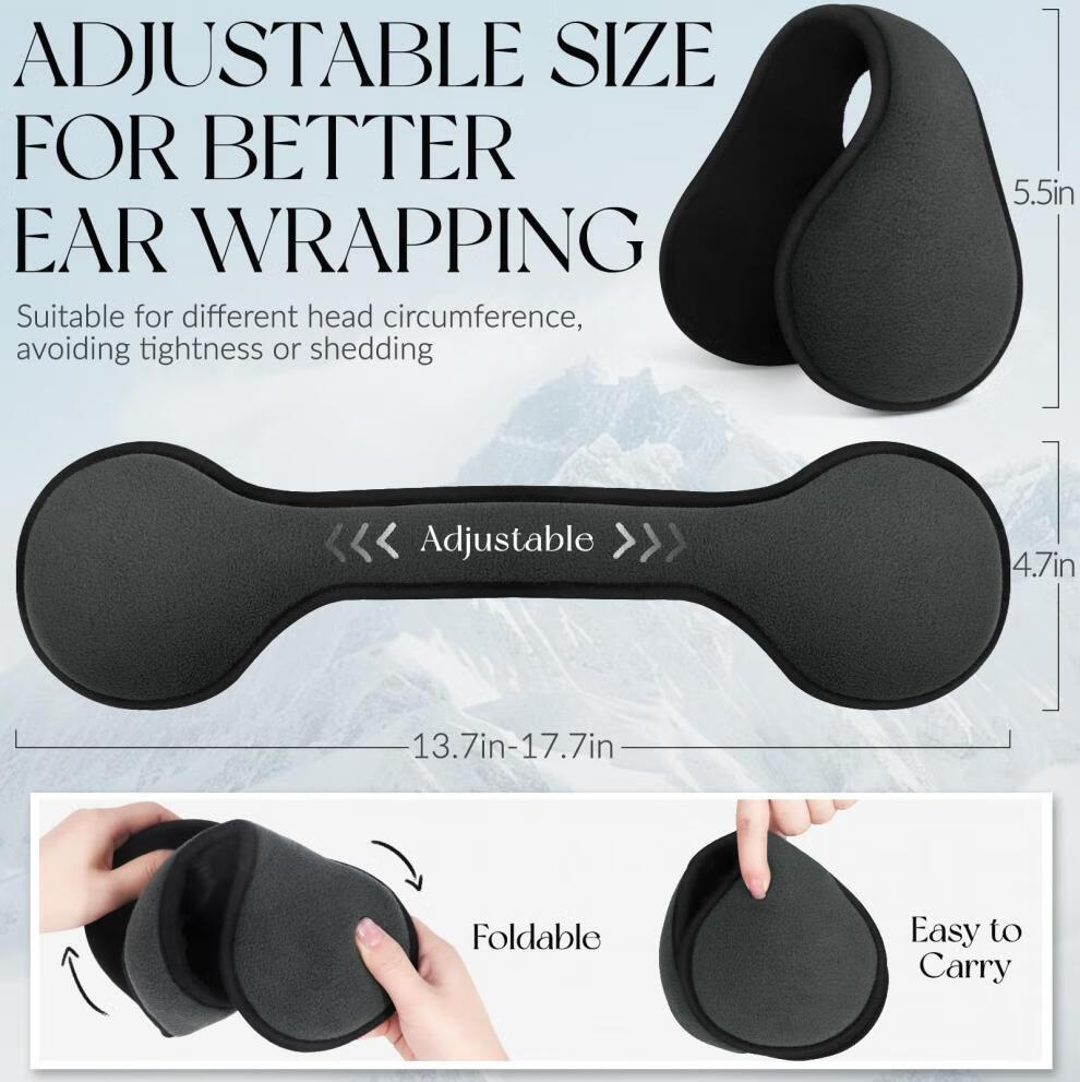 KINGXIAOJING German winter warm earmuffs, earmuffs, men's back-worn earmuffs, foldable earmuffs, winter women's ear warmer hats, black polar fleece, extended and thickened, foldable, back-worn earmuffs, 1 piece
